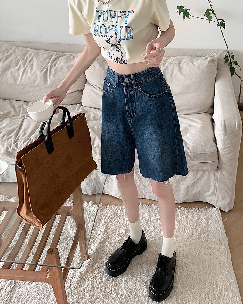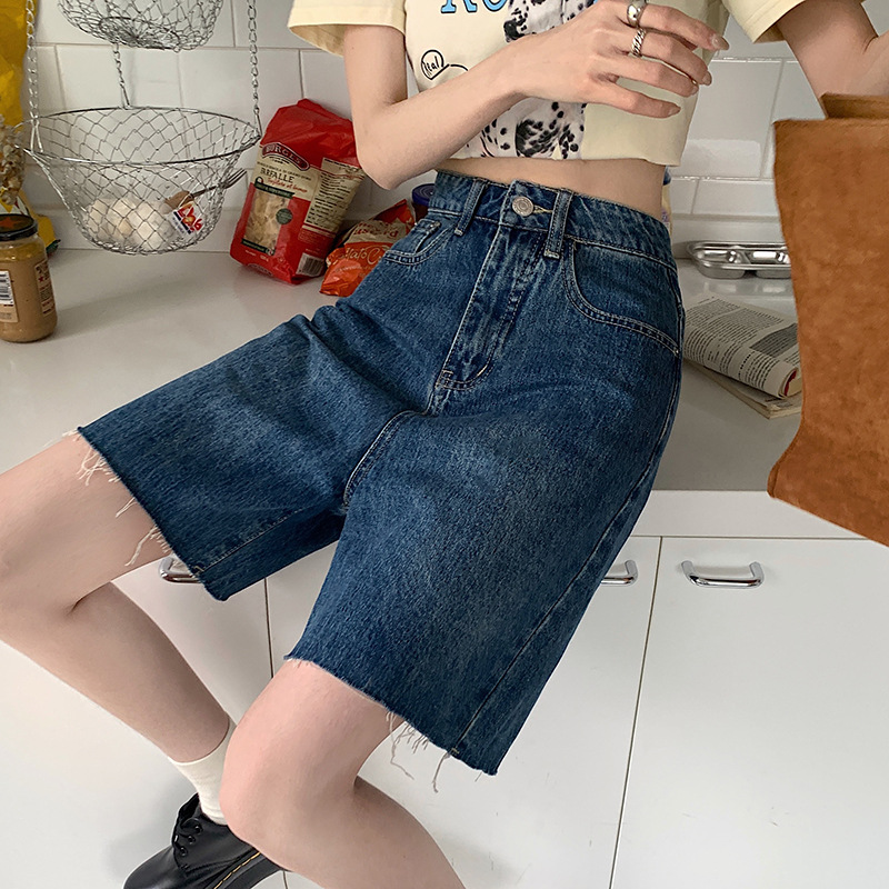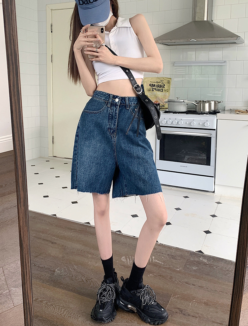 刚刚好的五分裤长,显瘦显腿长的款~裤脚毛须边设计休闲慵懒感非常强