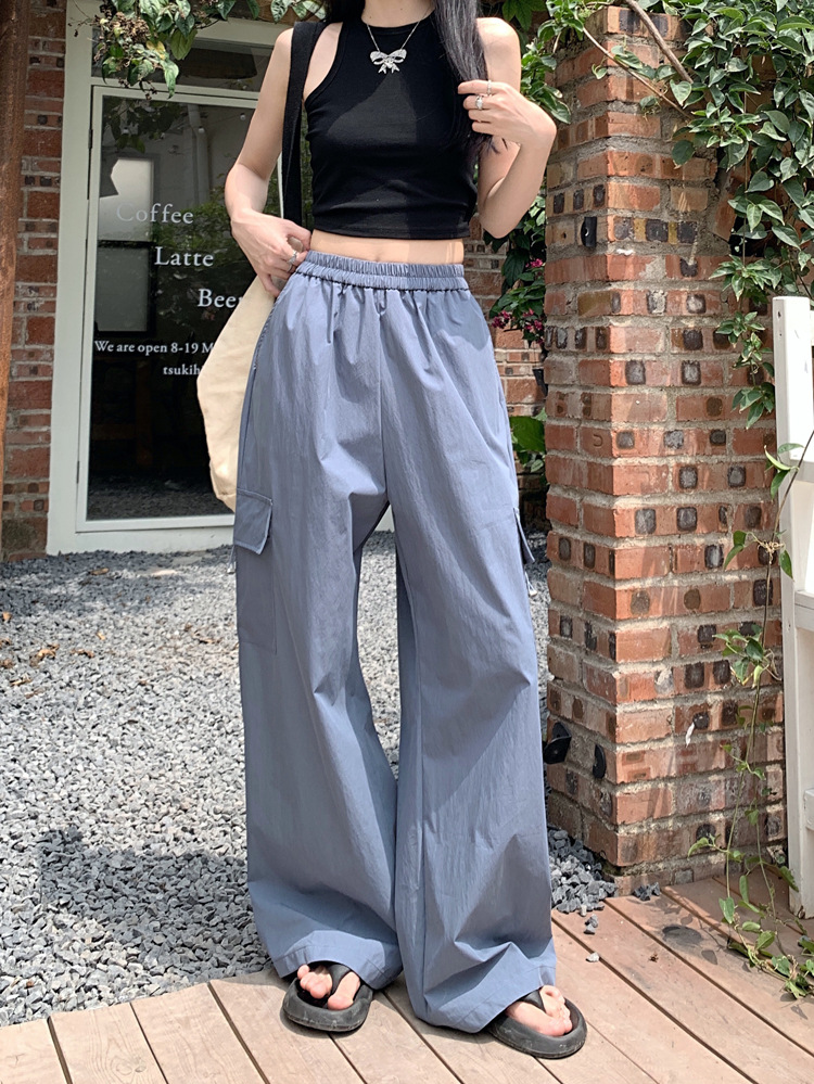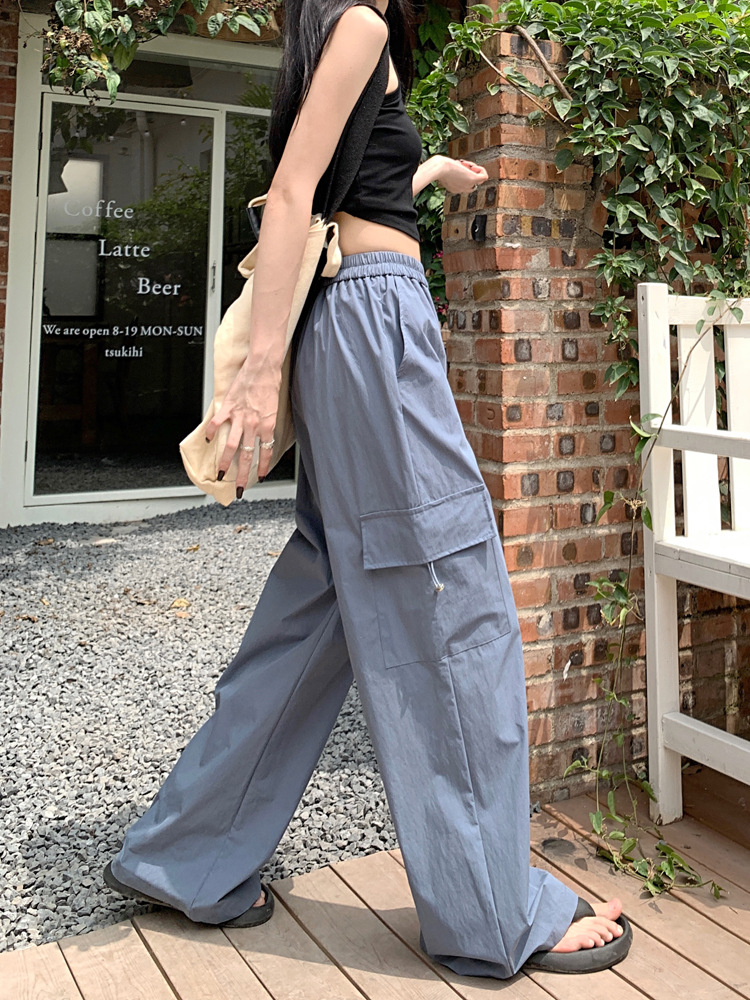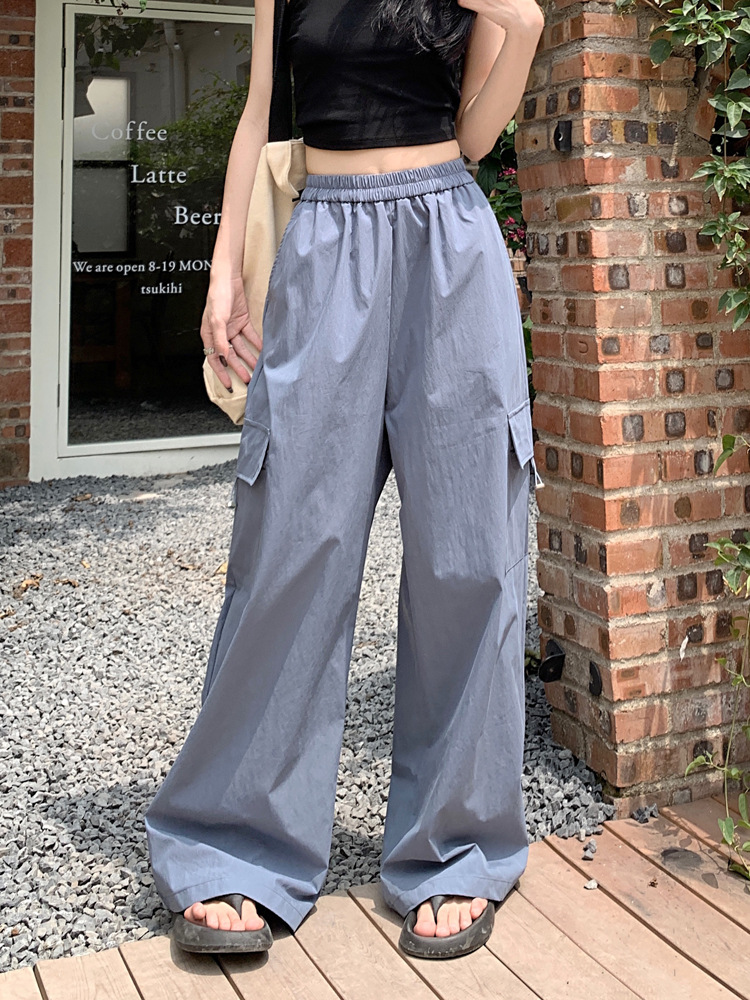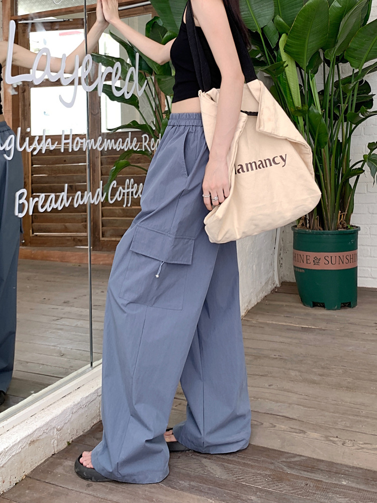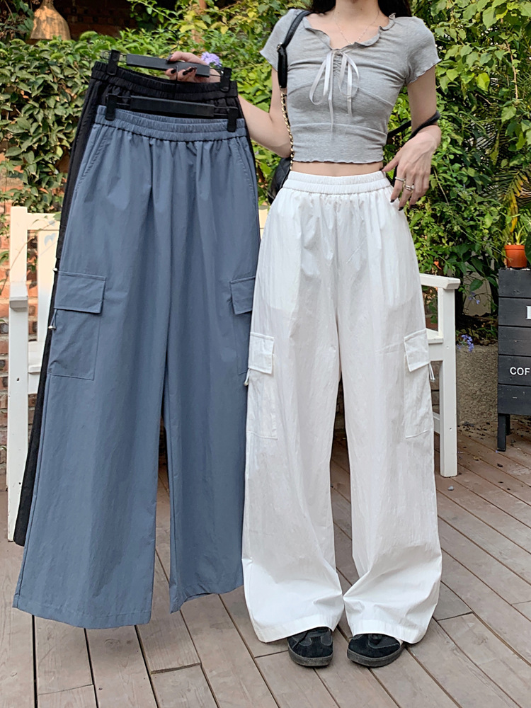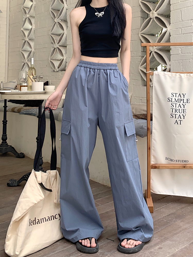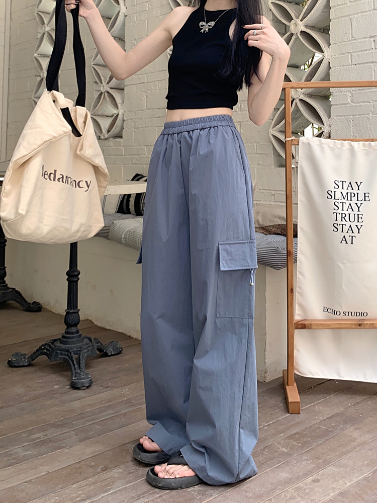 JMA-867 实拍美式宽松直筒裤工装裤休闲裤女 夏季高腰阔腿裤拖地长裤子