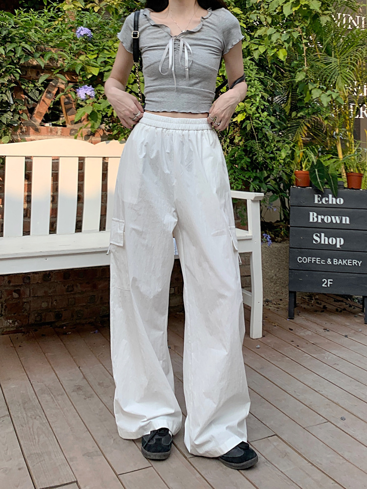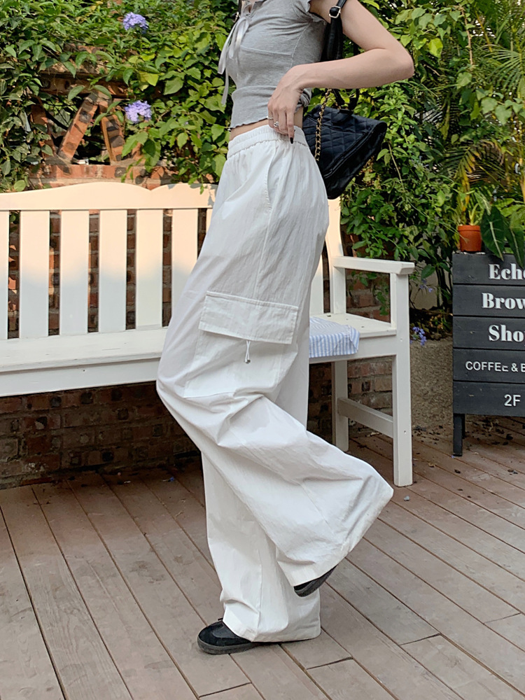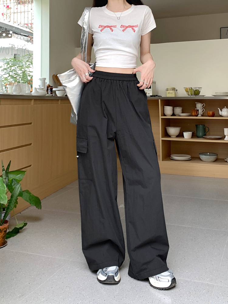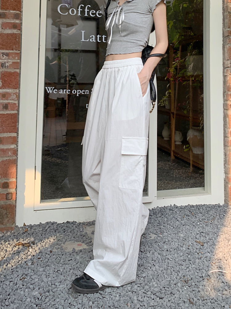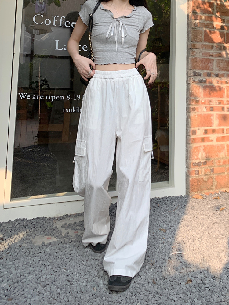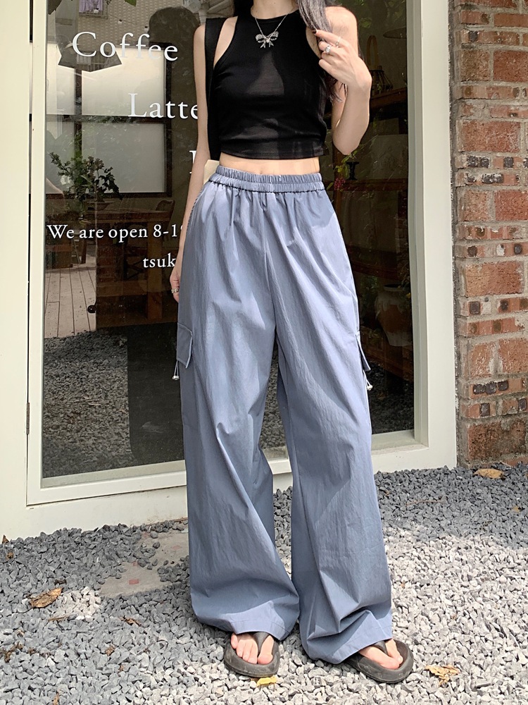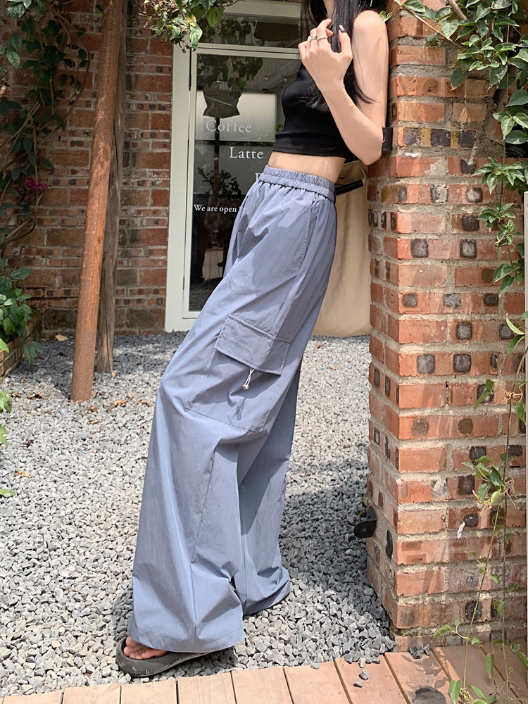 JMA-867 实拍美式宽松直筒裤工装裤休闲裤女 夏季高腰阔腿裤拖地长裤子