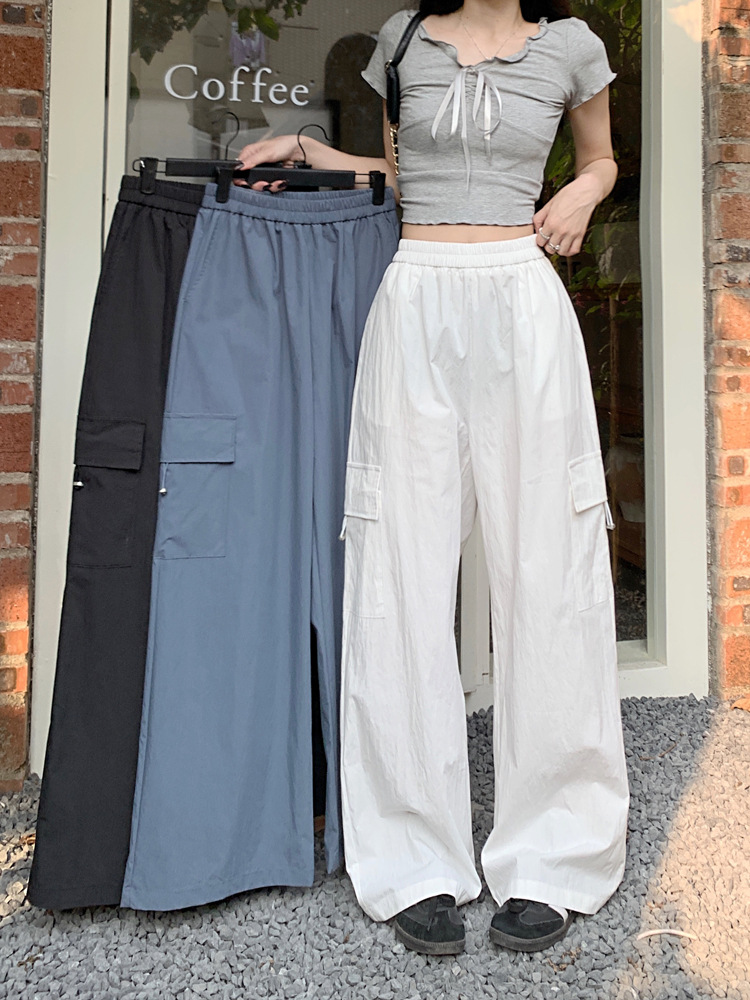 • 將圖片載入圖庫檢視器 JMA-867 实拍美式宽松直筒裤工装裤休闲裤女 夏季高腰阔腿裤拖地长裤子