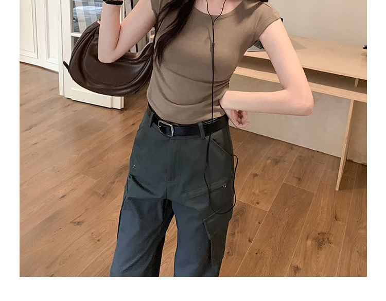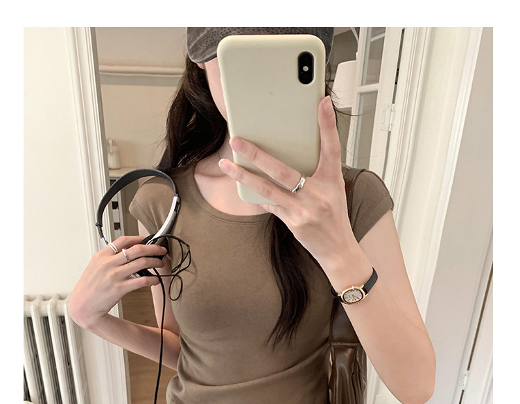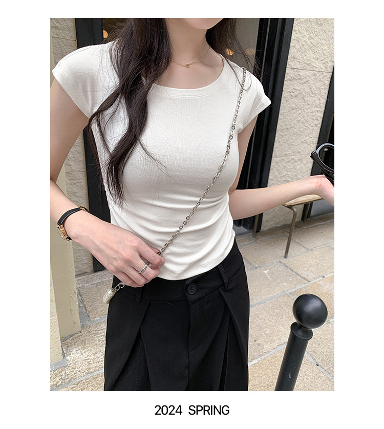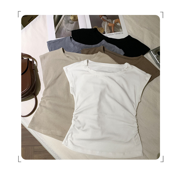 JMA-868 实拍 夏季港味性感辣妹风修身短款短袖修身T恤女ins抽褶显胸上衣