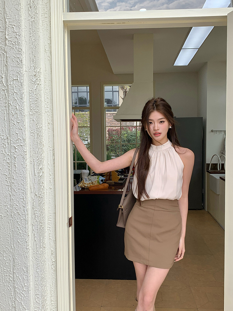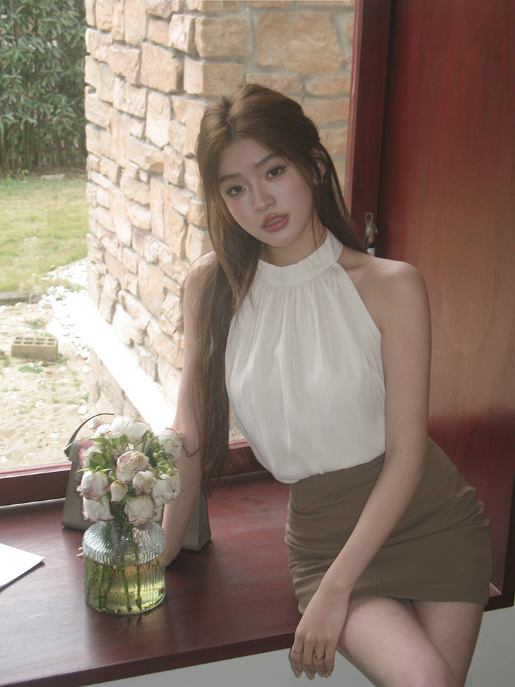 JMA-864 实拍 夏装新款挂脖无袖背心女法式气质性感温柔露肩吊带上衣