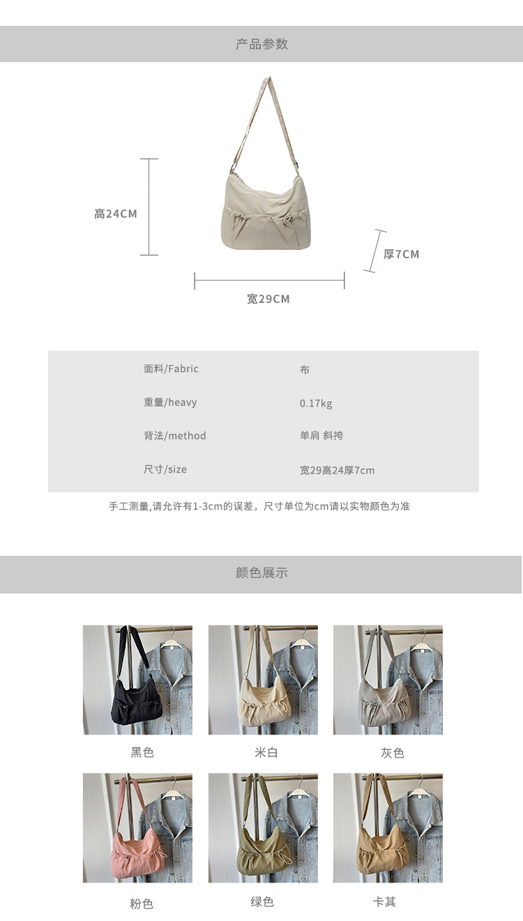 JM-1279 休闲大容量帆布包包2024新款女包流行百搭斜挎包大学生单肩饺子包