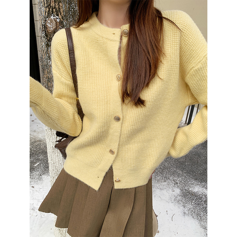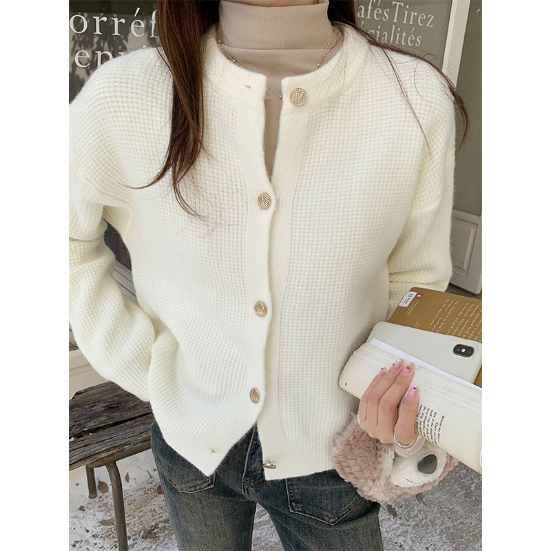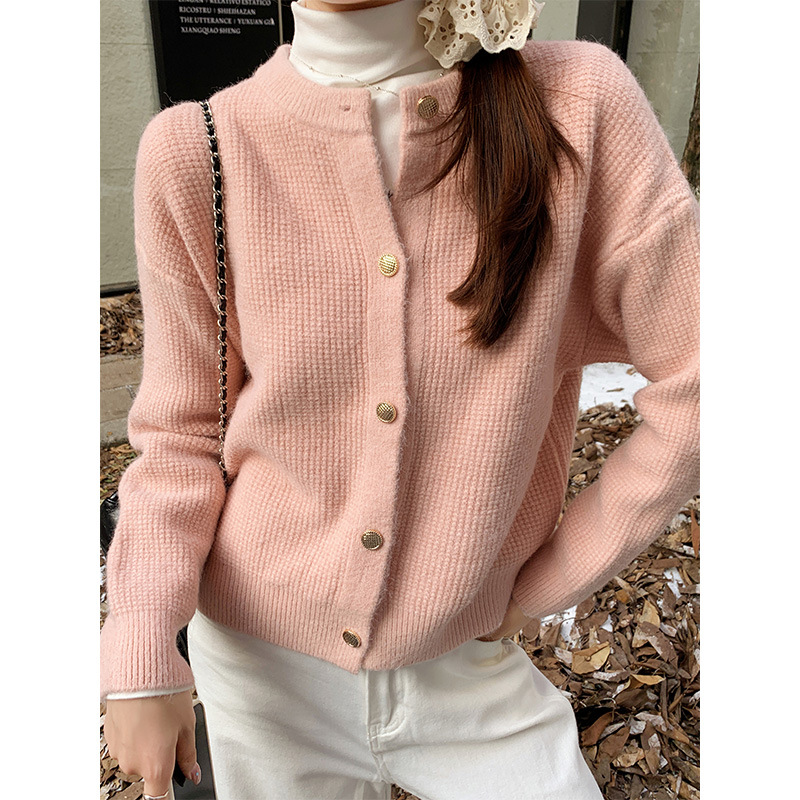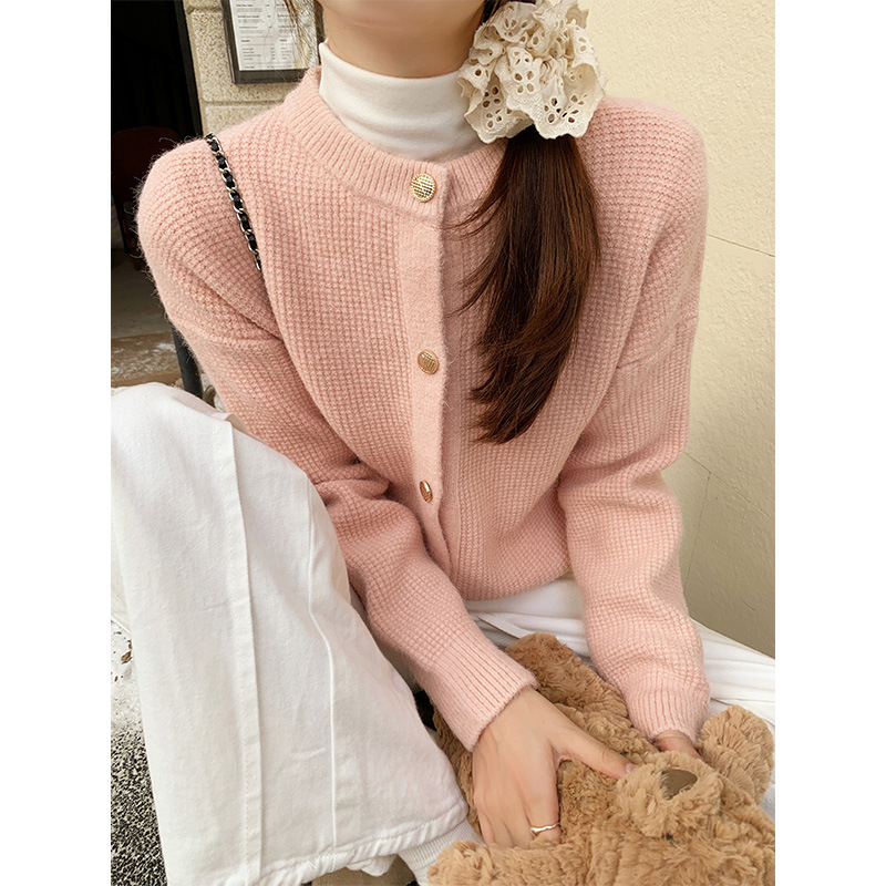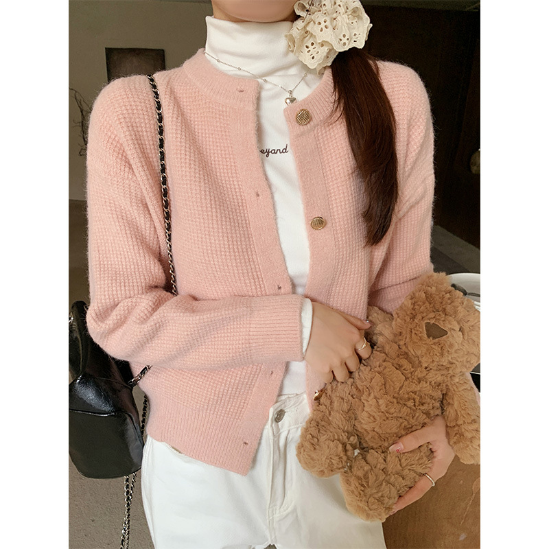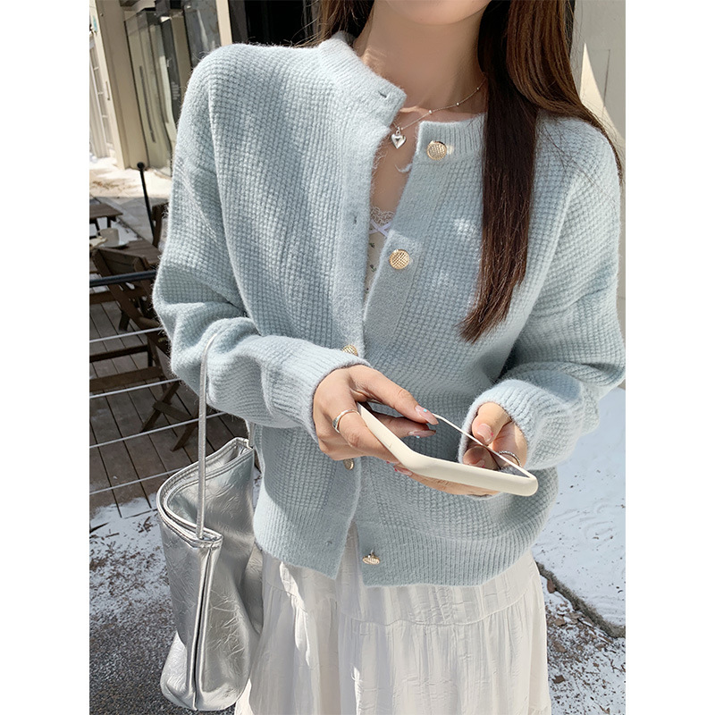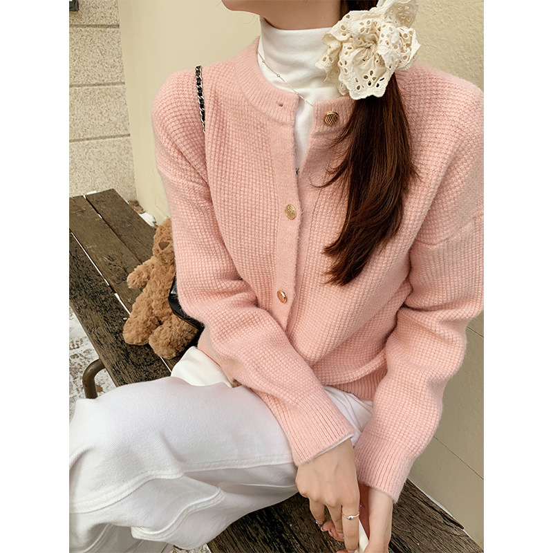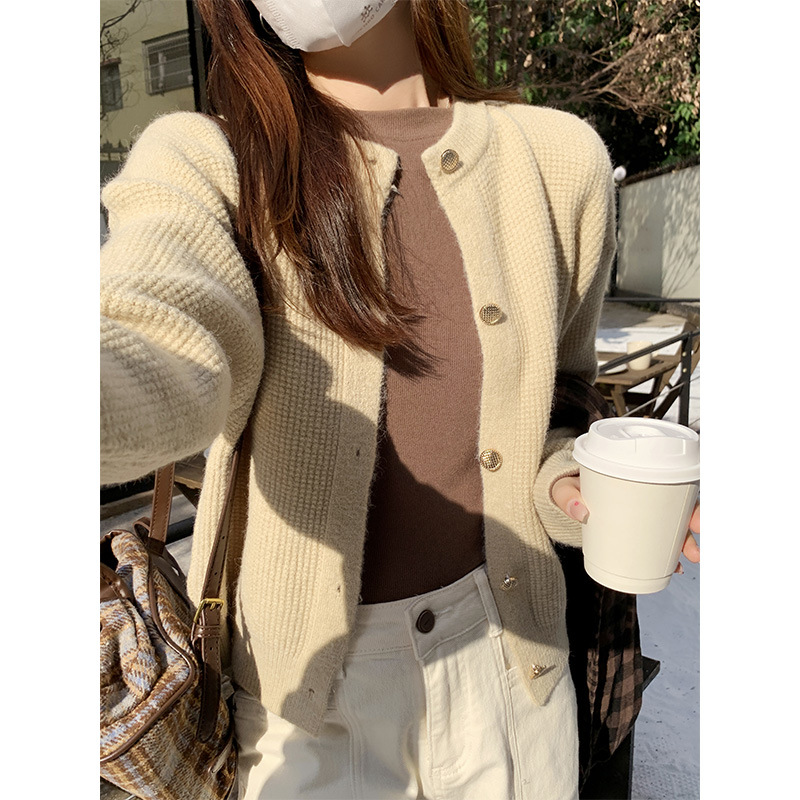 JMA-889 实拍 小香风针织纽扣开衫毛衣女秋冬季小个子宽松短款外套上衣潮