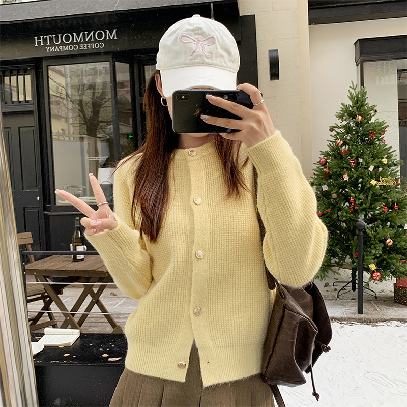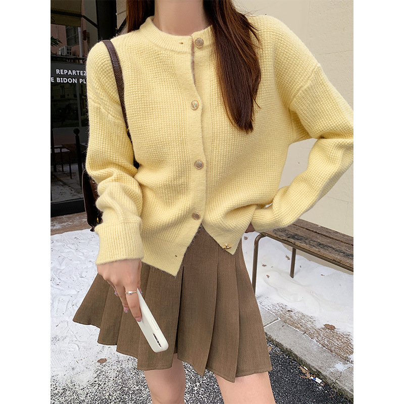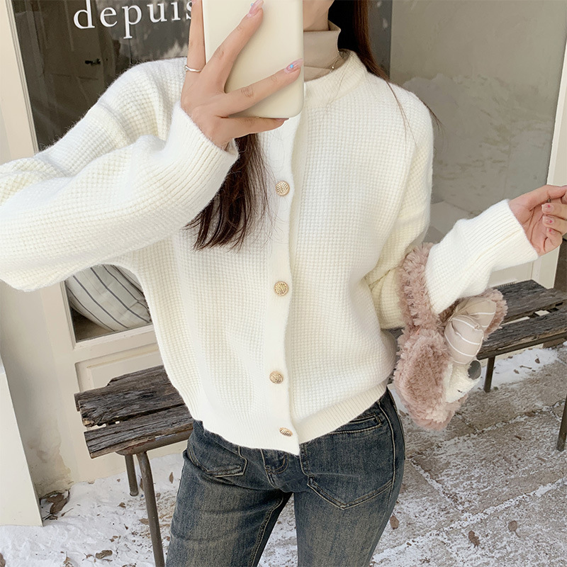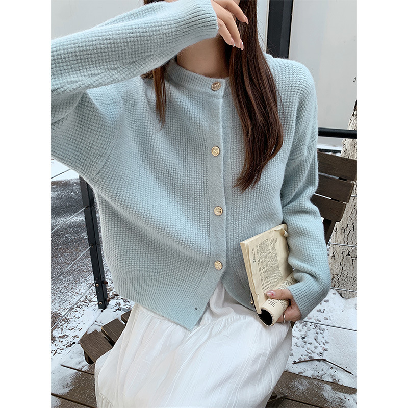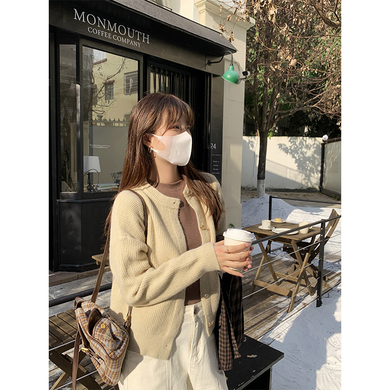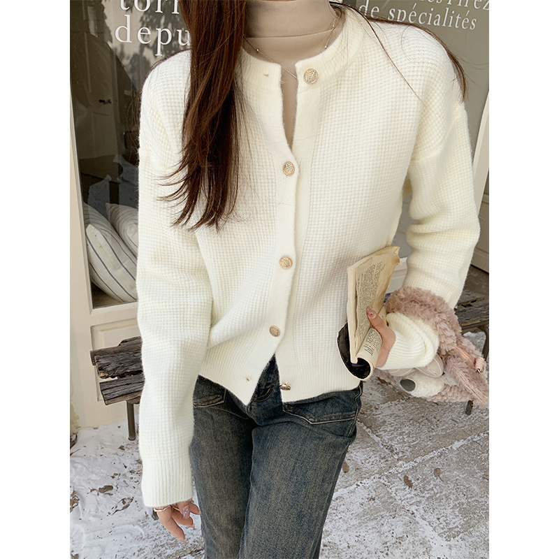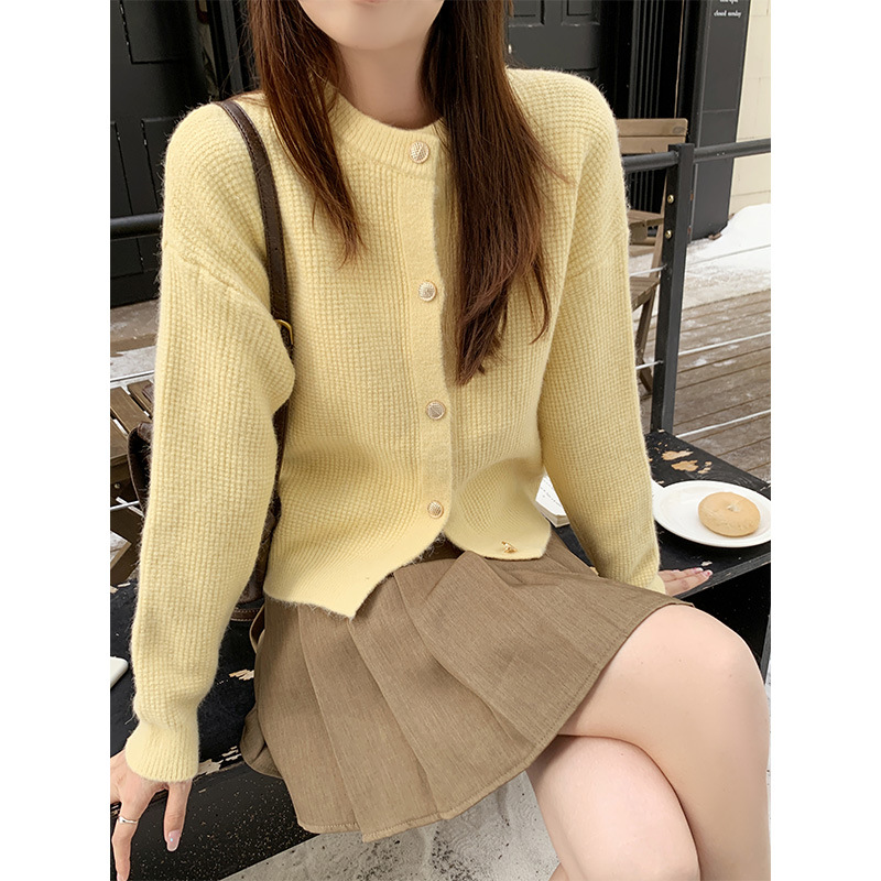 JMA-889 实拍 小香风针织纽扣开衫毛衣女秋冬季小个子宽松短款外套上衣潮