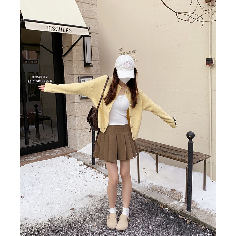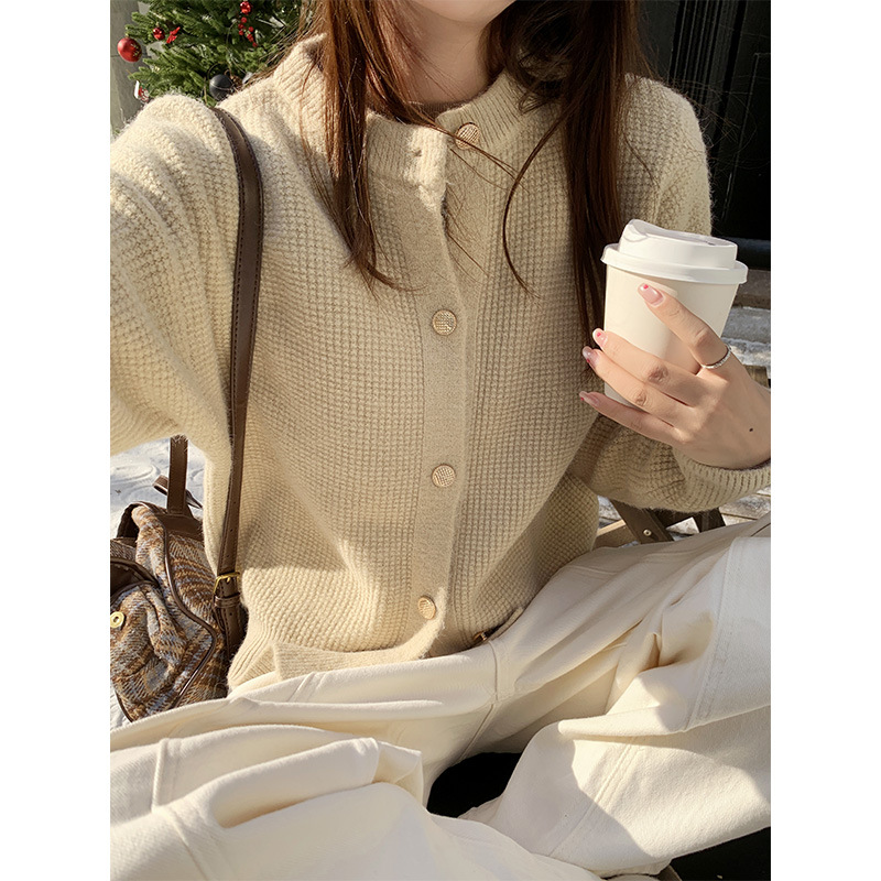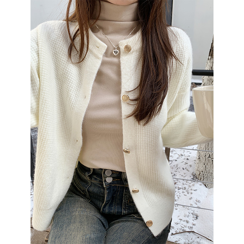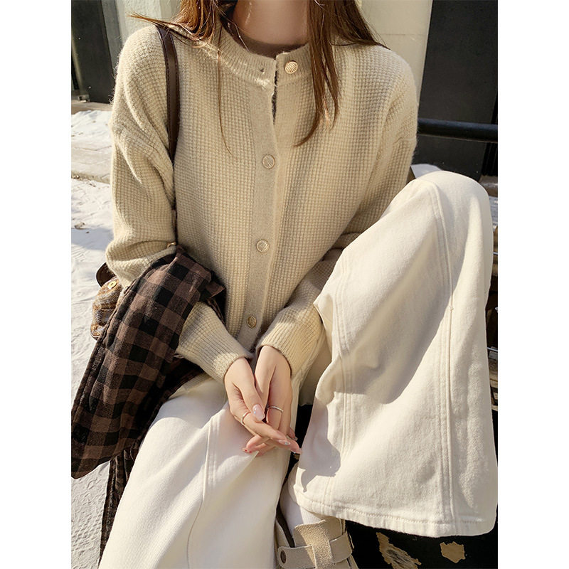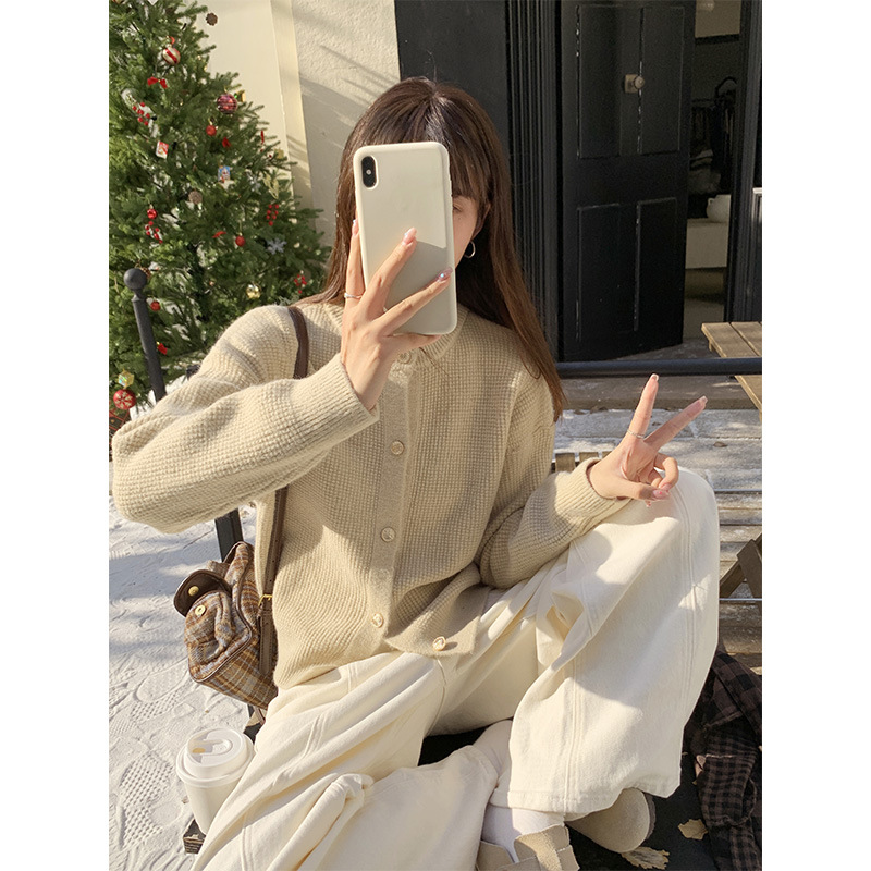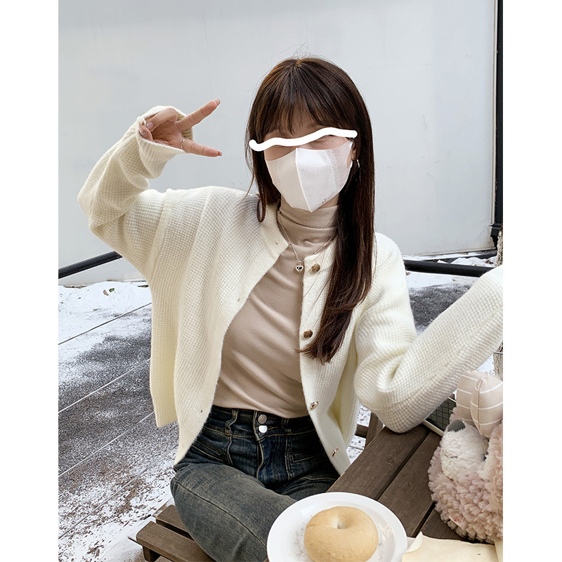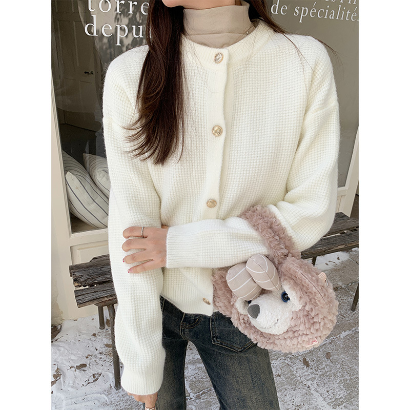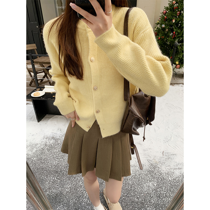 JMA-889 实拍 小香风针织纽扣开衫毛衣女秋冬季小个子宽松短款外套上衣潮