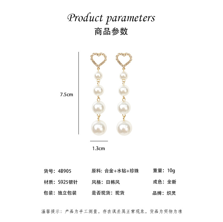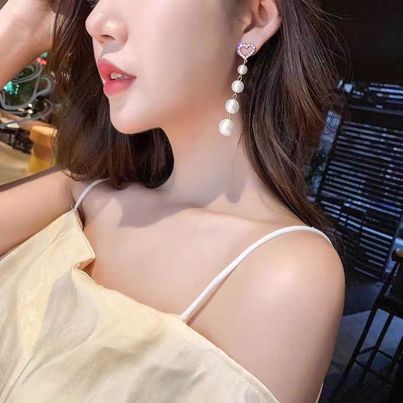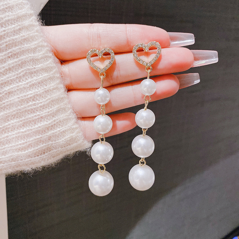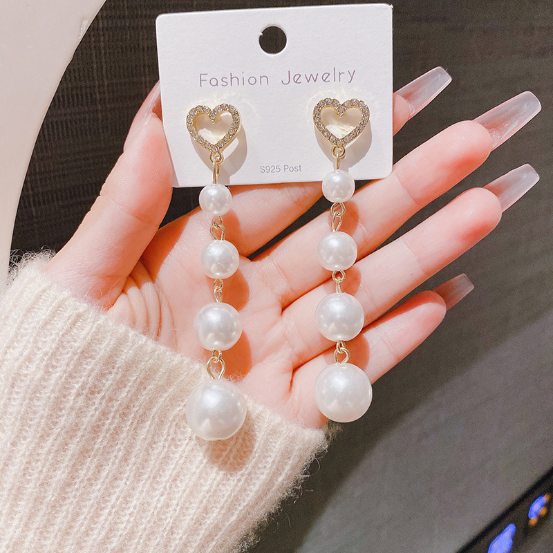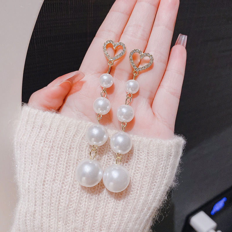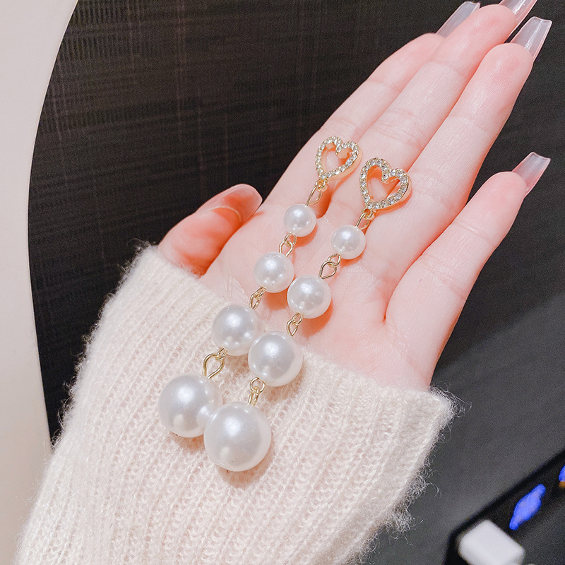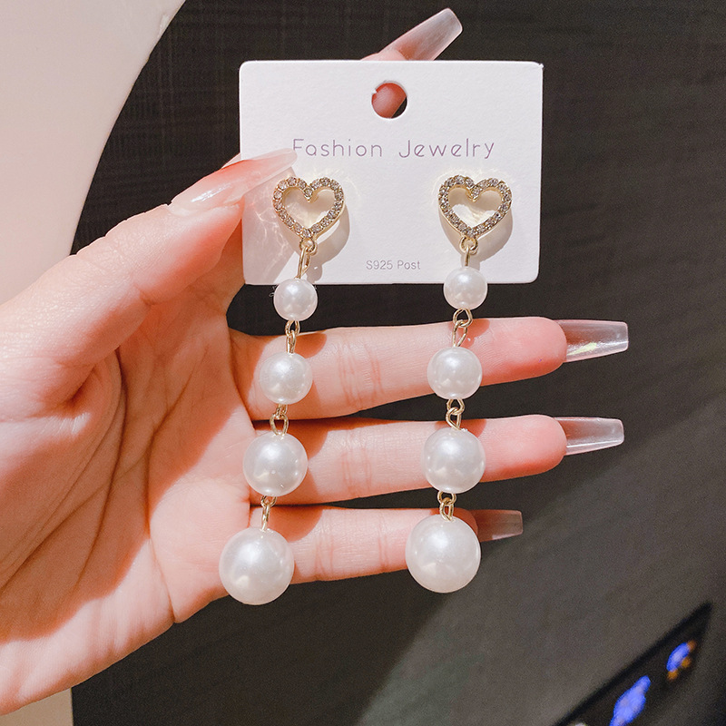 JME-863 2024新款潮爱心珍珠显脸瘦韩国气质耳坠长款感网红流苏耳饰女耳环