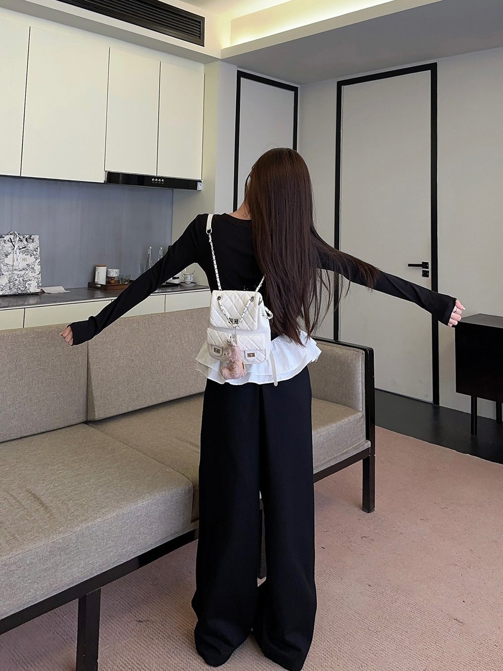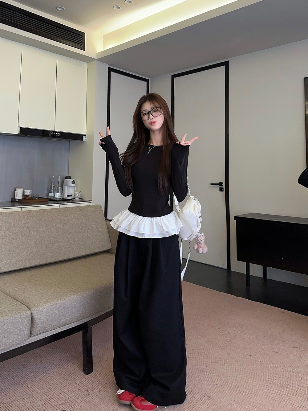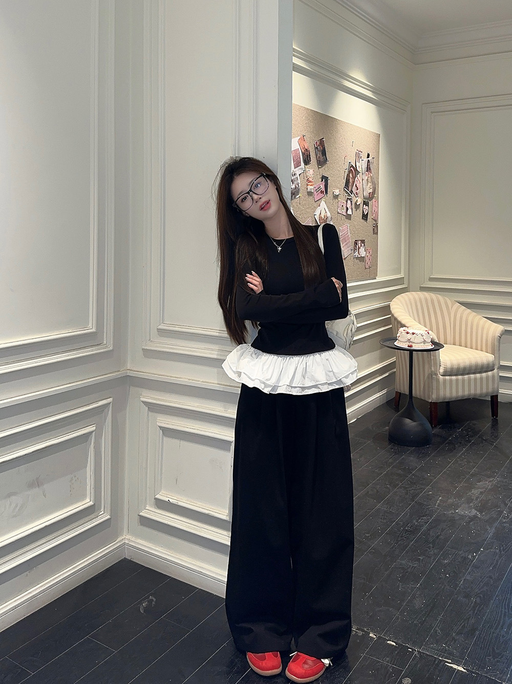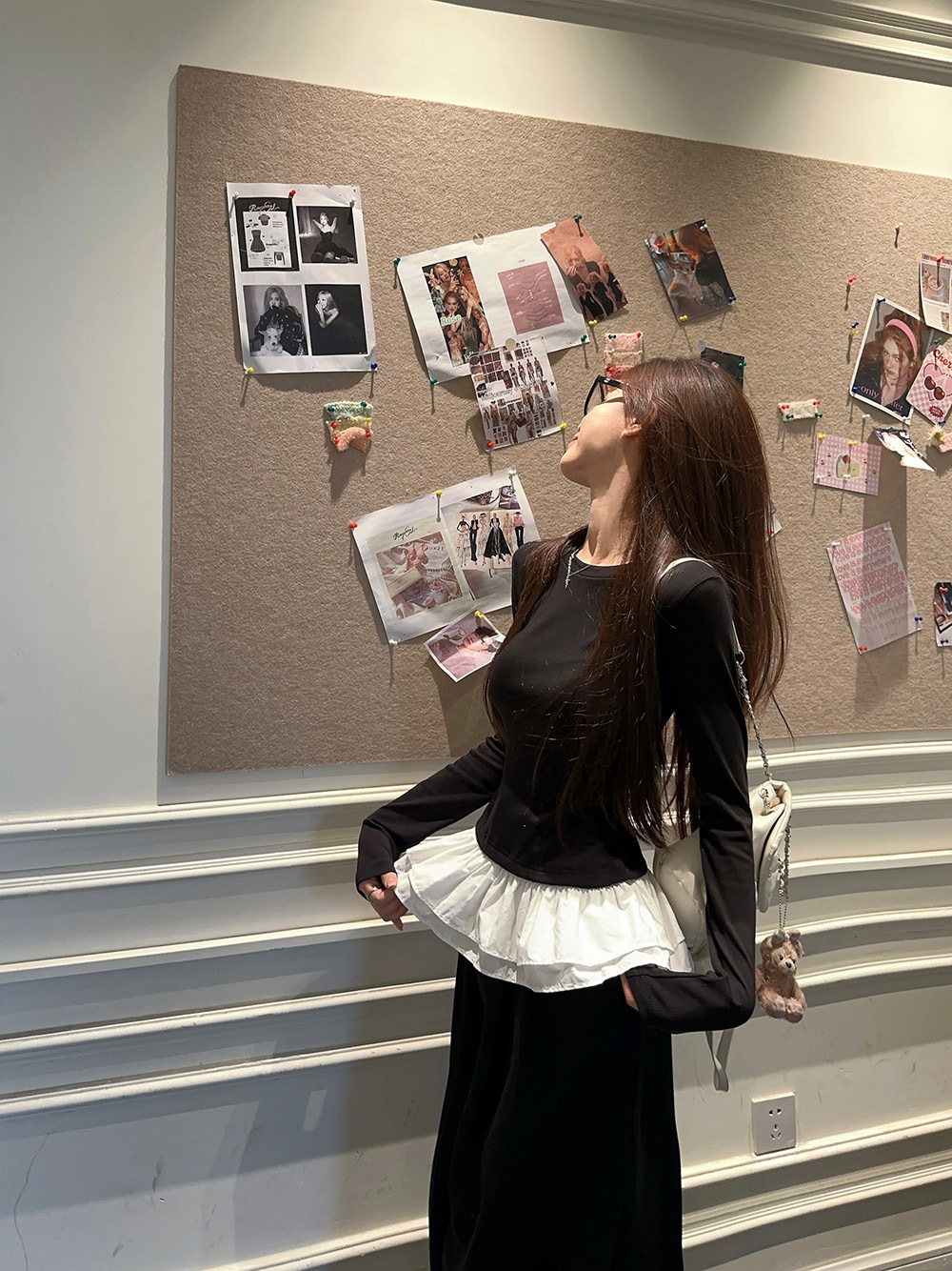 JMA-892 实拍 芭蕾风花边拼接长袖t恤秋季新款修身内搭打底衫上衣潮