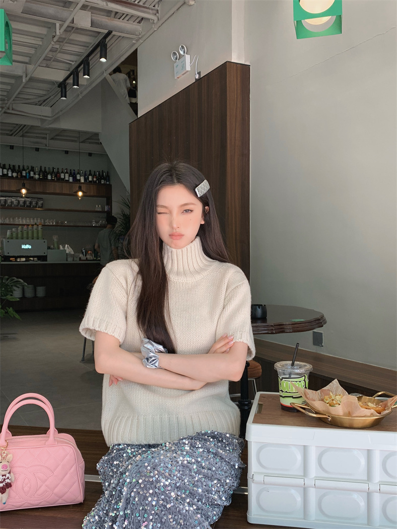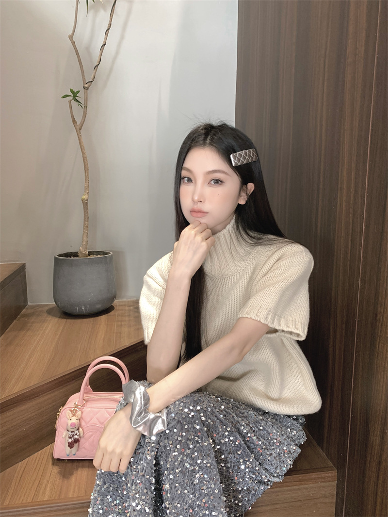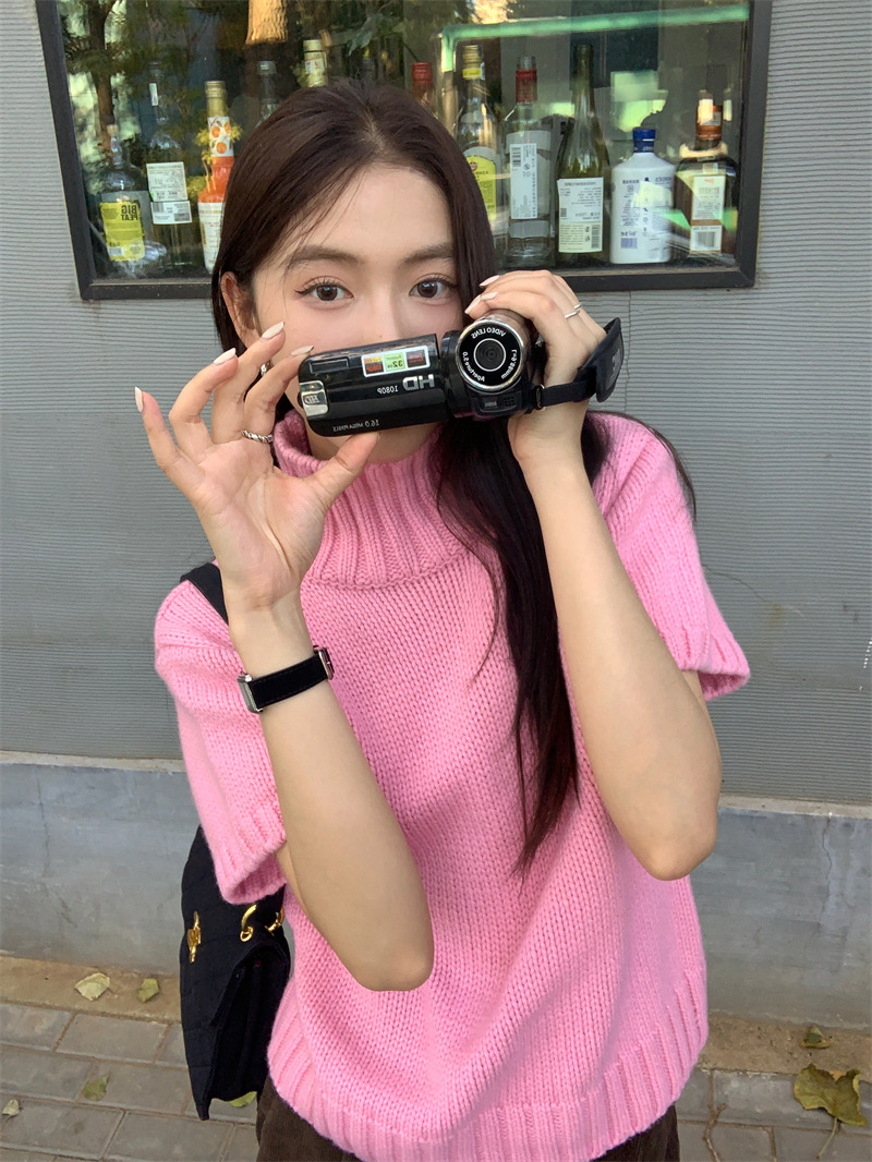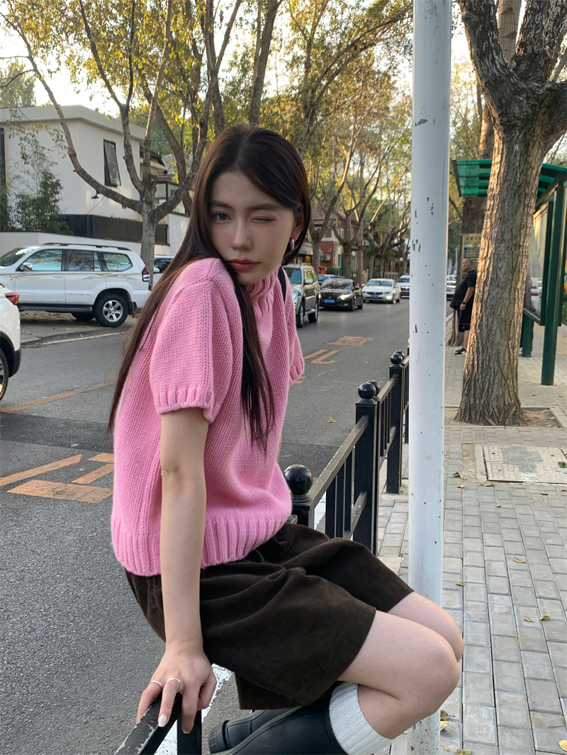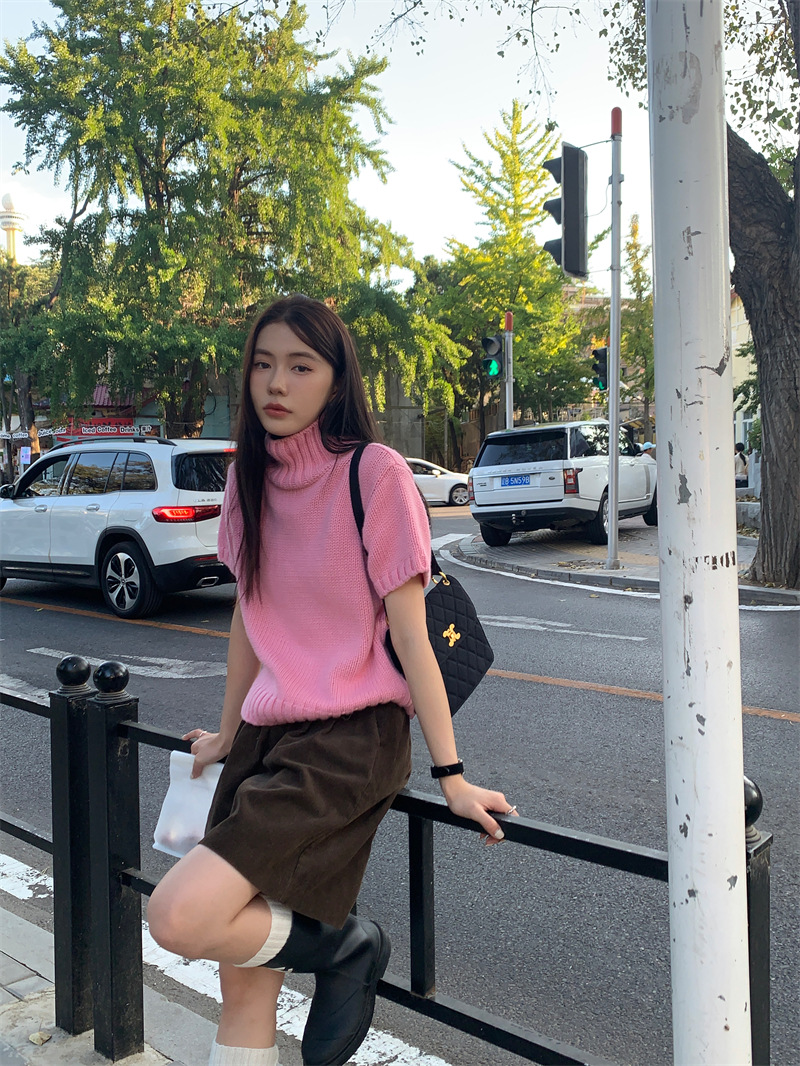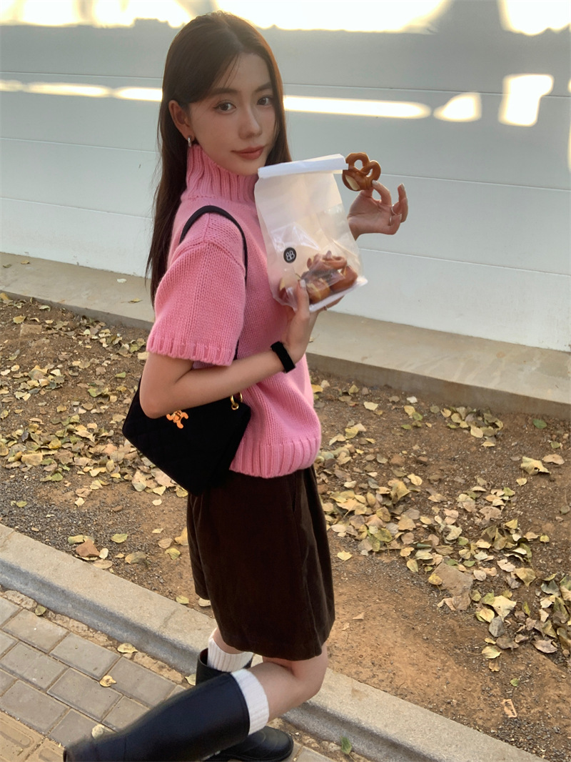 JMA-897 实拍 秋冬新款韩版时髦元气少女软糯针织半高领半袖毛衣上衣