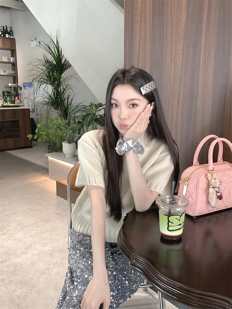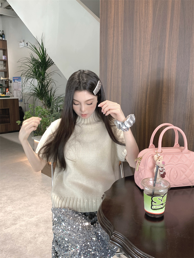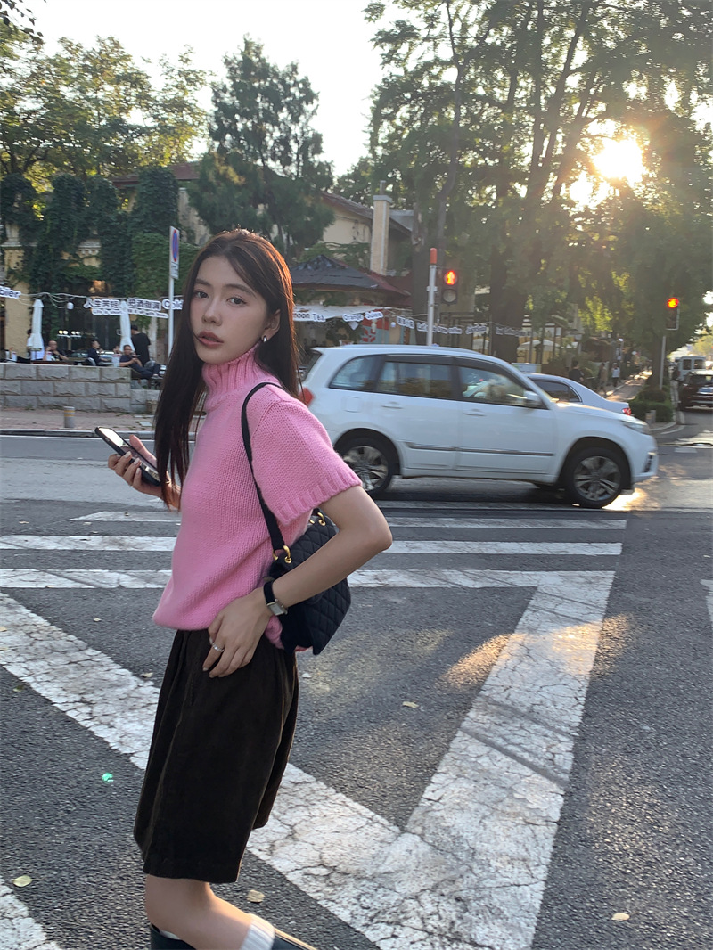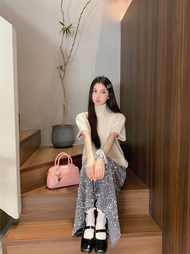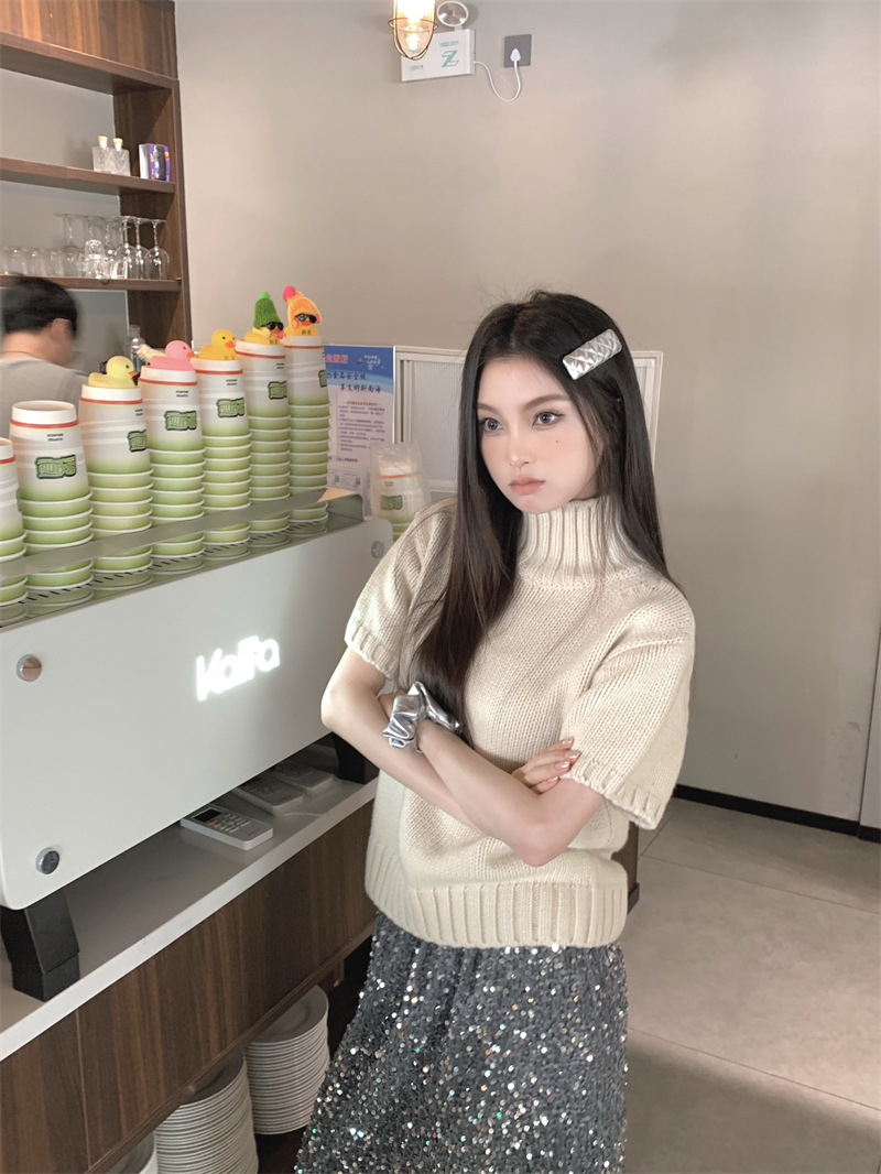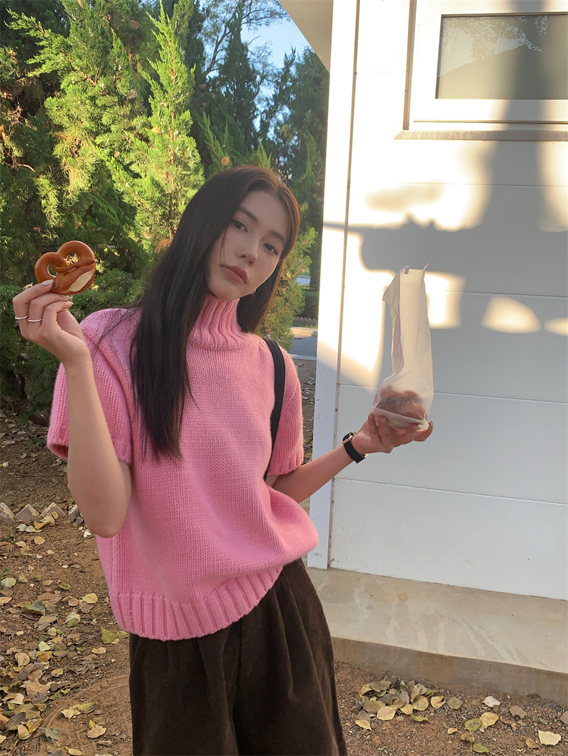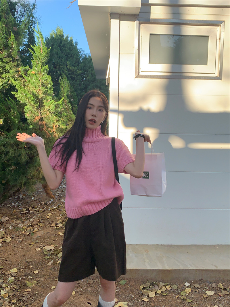 JMA-897 实拍 秋冬新款韩版时髦元气少女软糯针织半高领半袖毛衣上衣