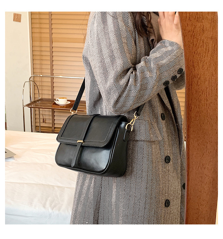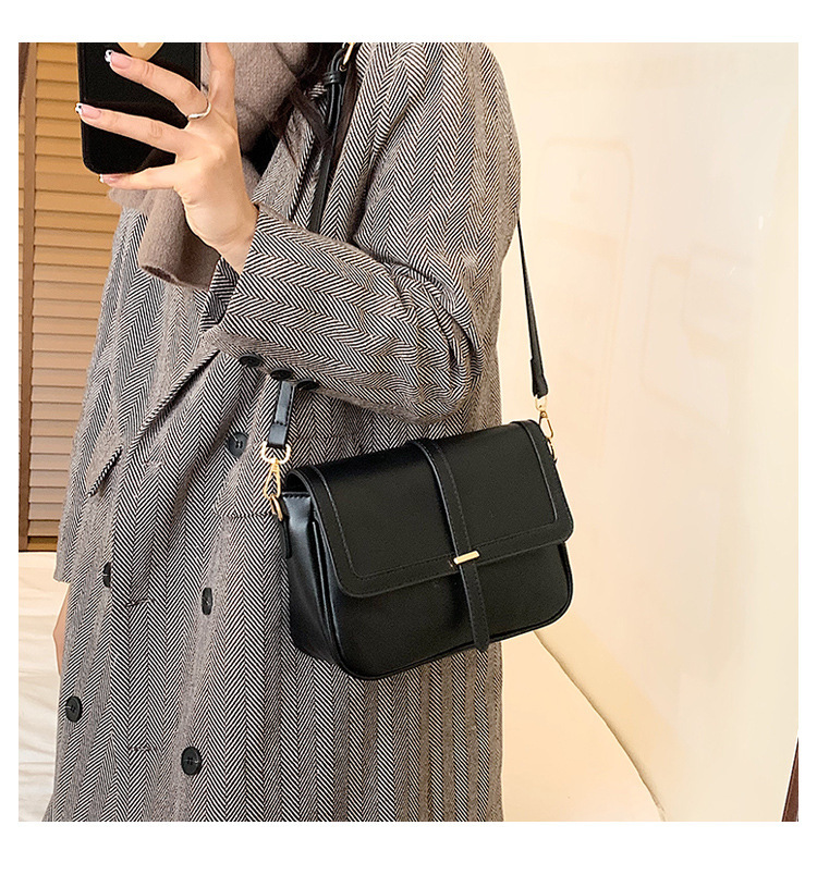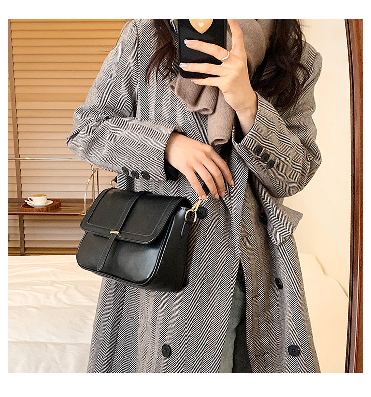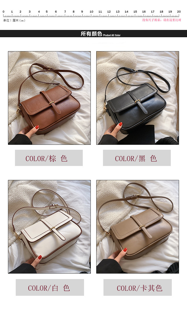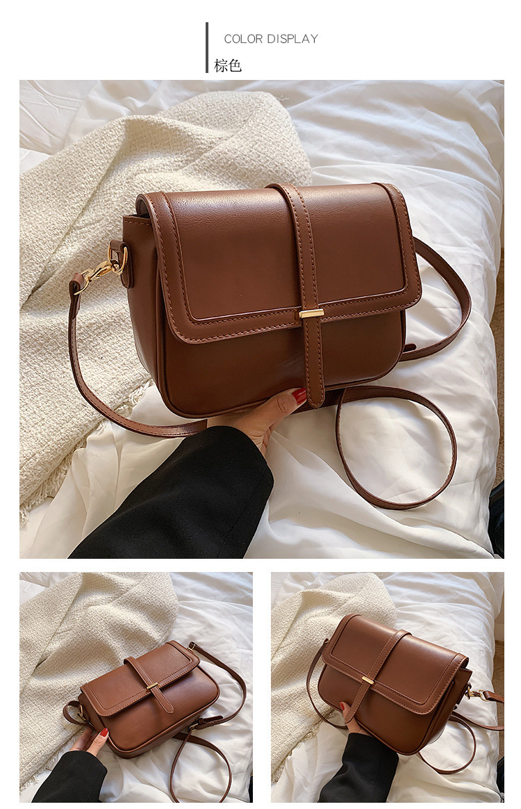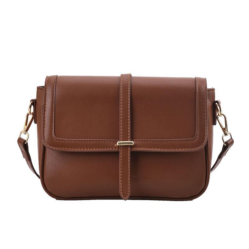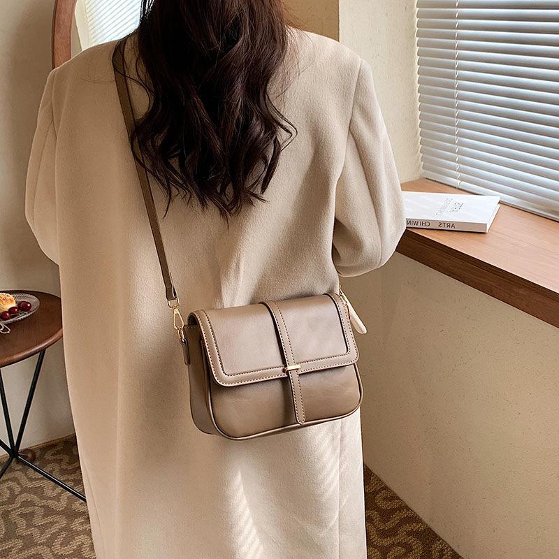 JM-1293 新款女士单肩包拉链抽带邮差包质感通勤包复古简约纯色包包女