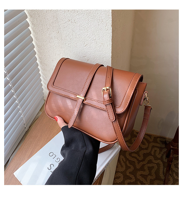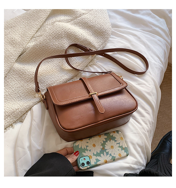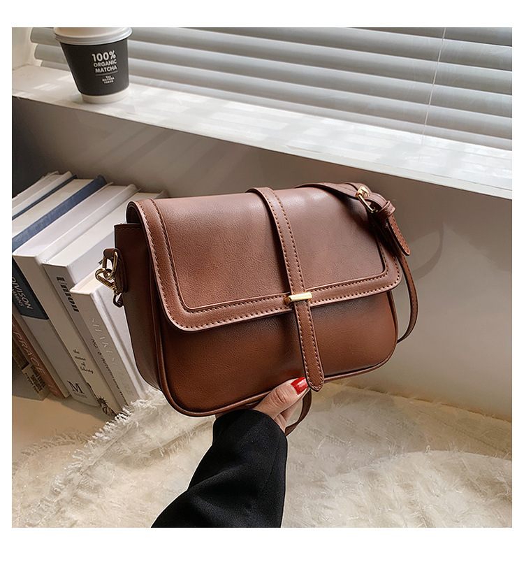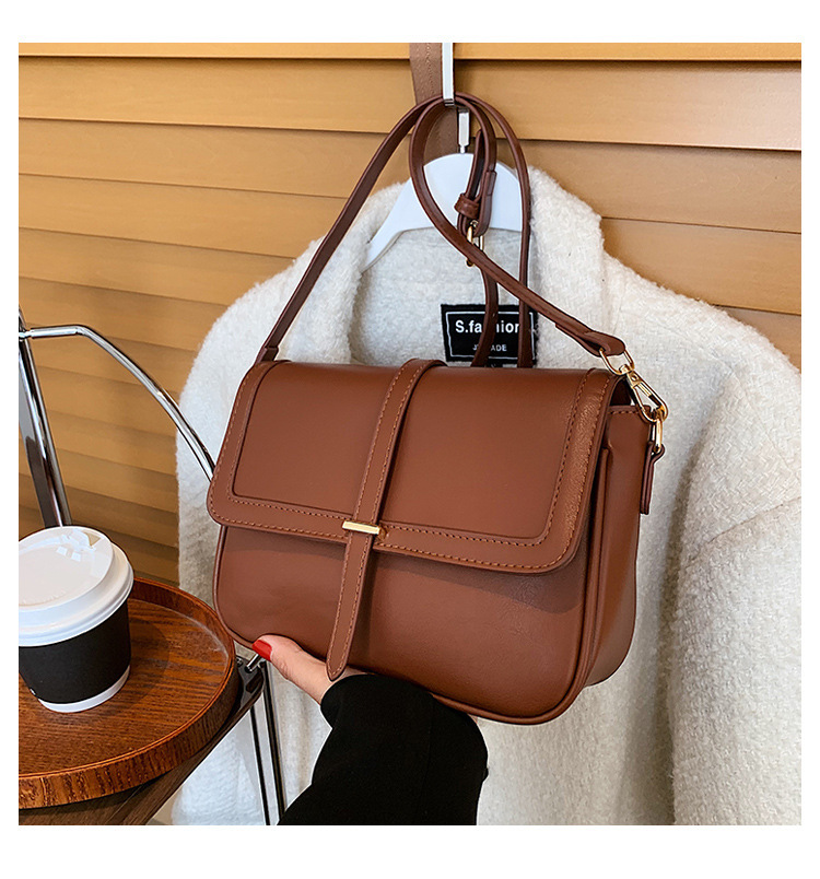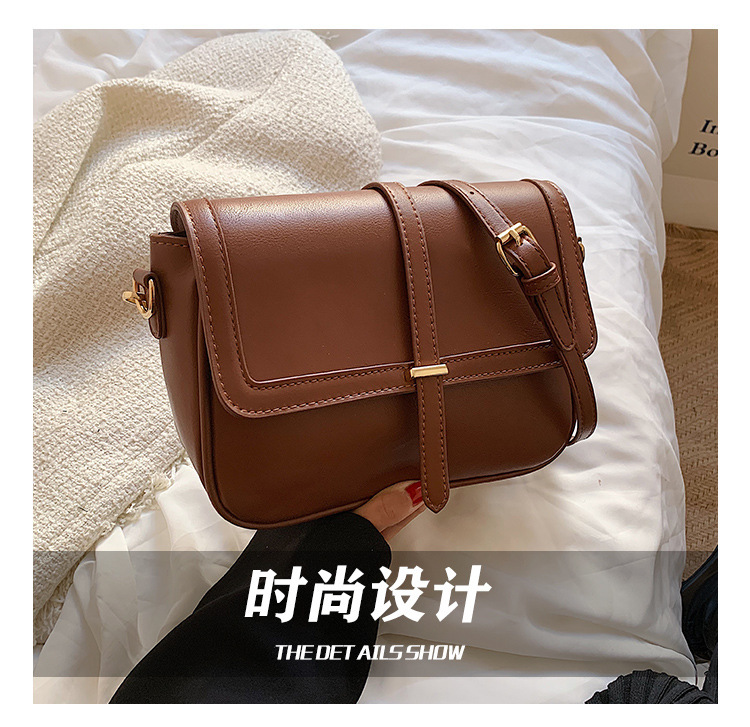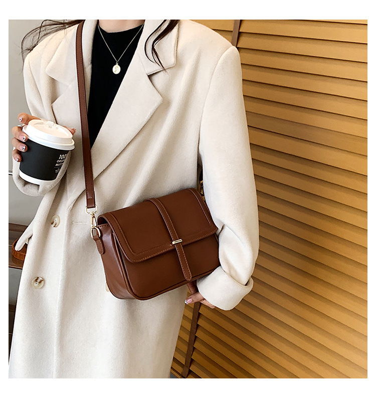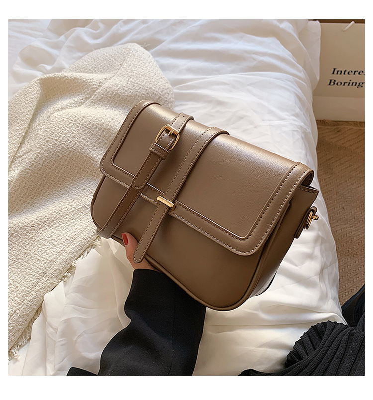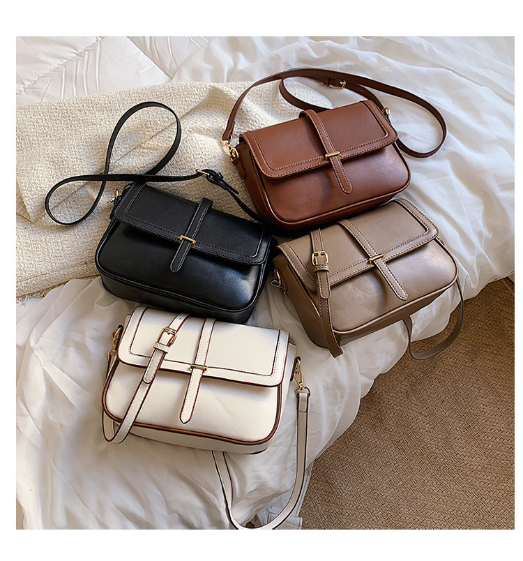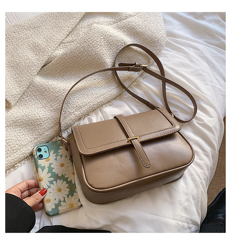 JM-1293 新款女士单肩包拉链抽带邮差包质感通勤包复古简约纯色包包女
