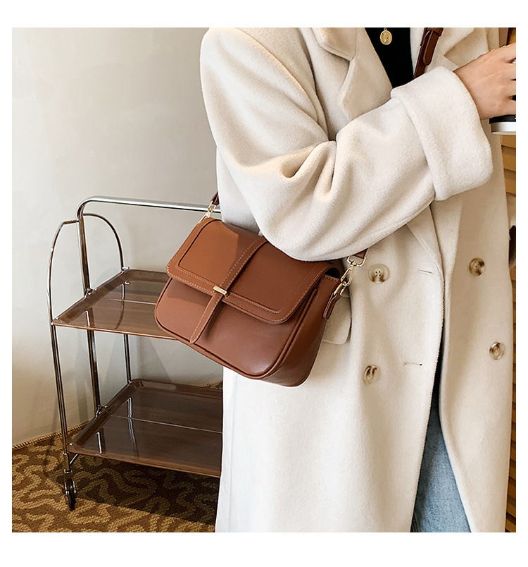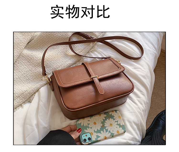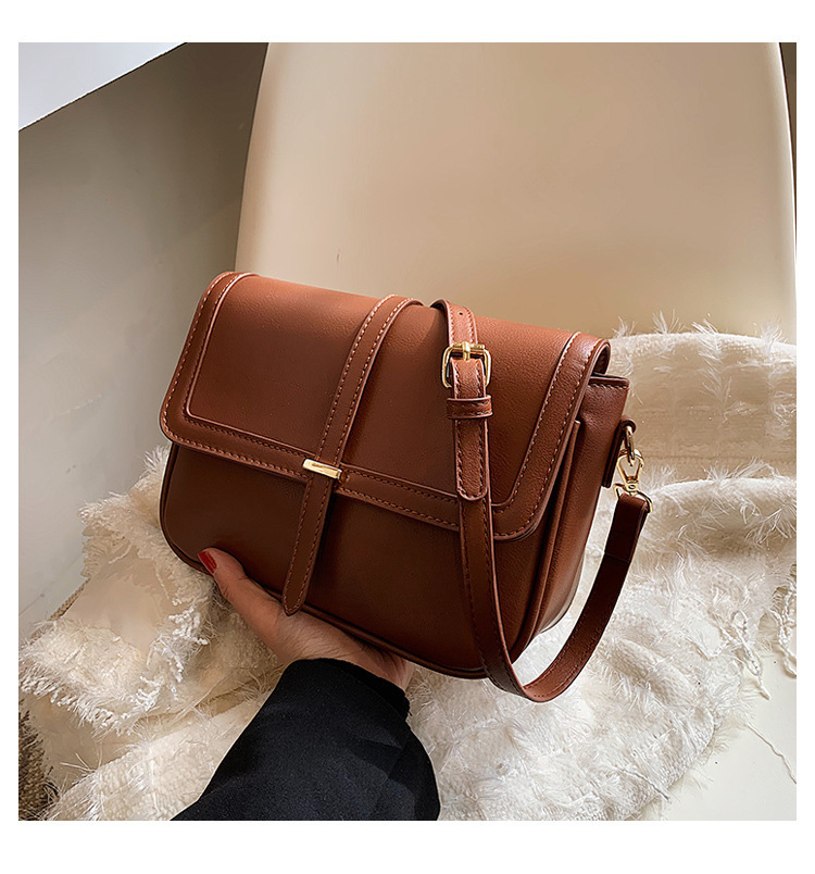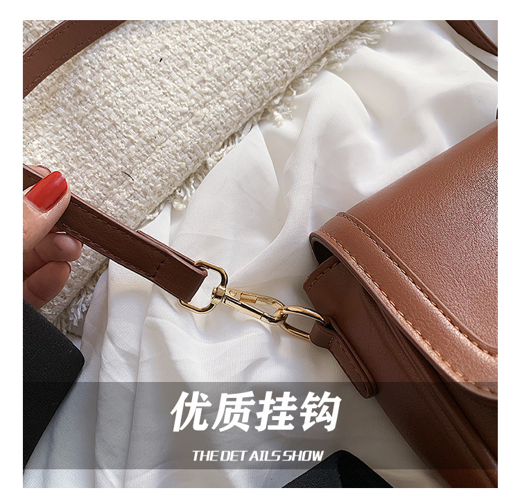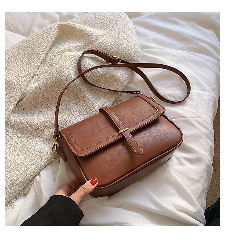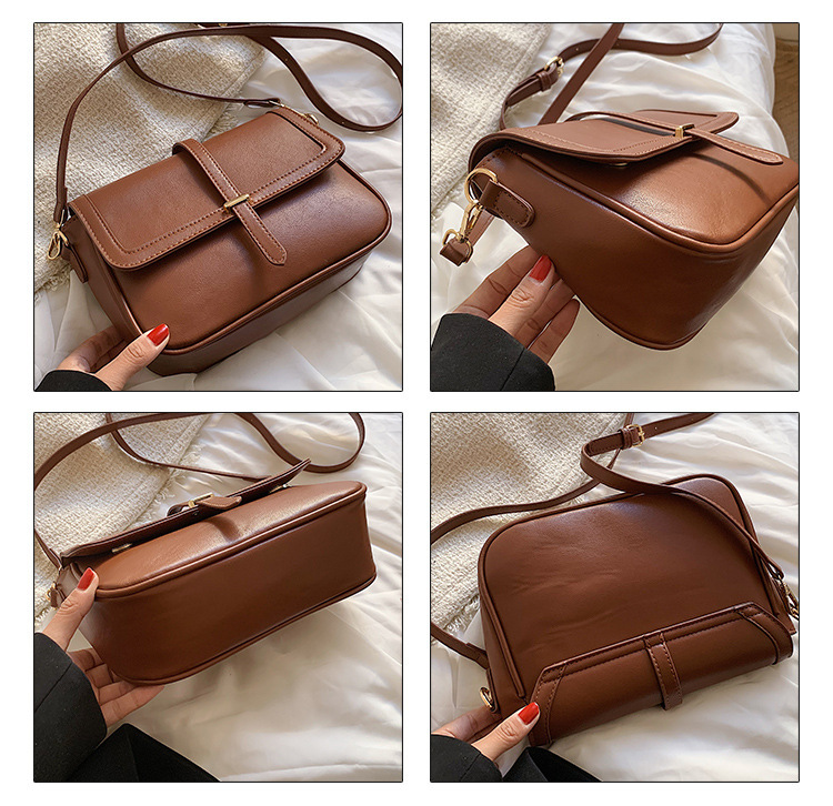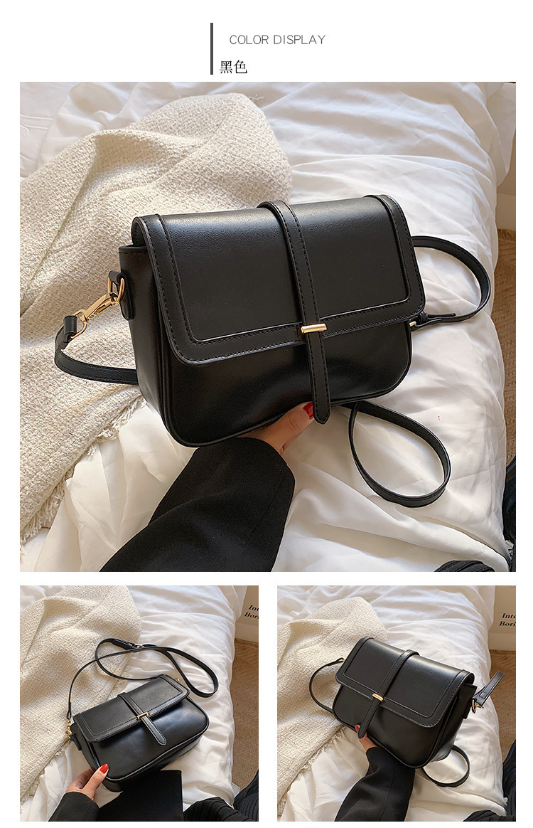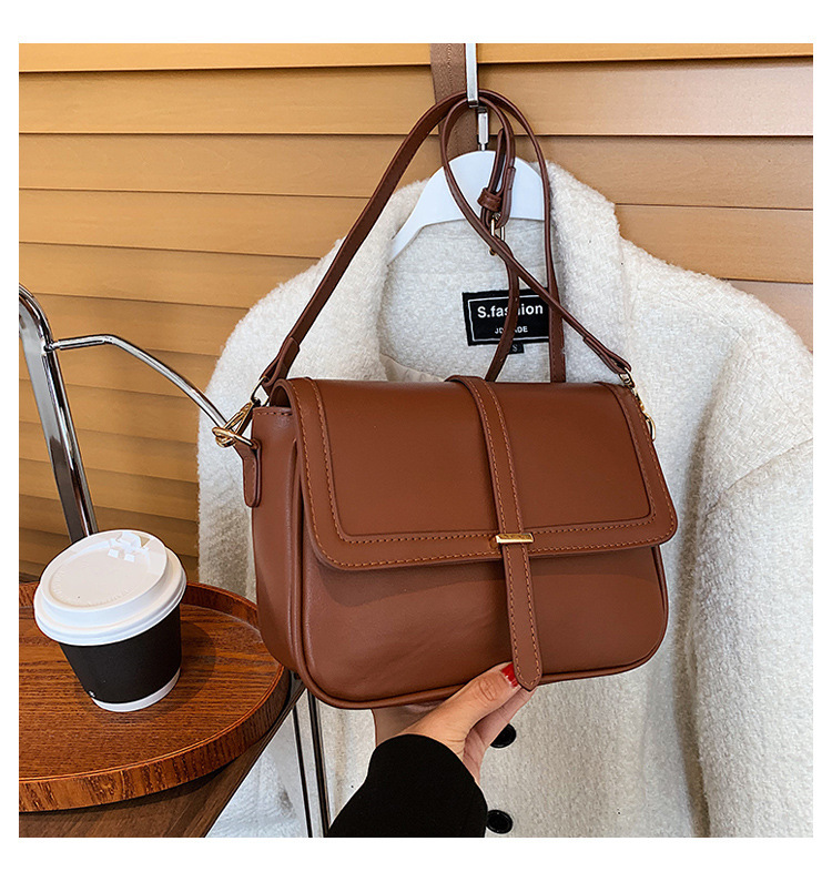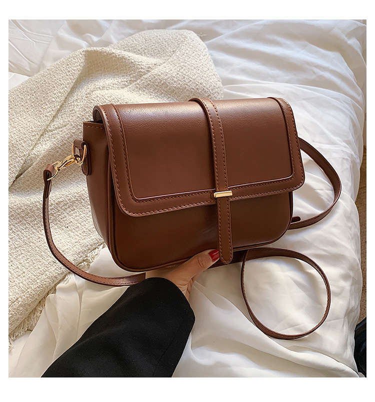 JM-1293 新款女士单肩包拉链抽带邮差包质感通勤包复古简约纯色包包女