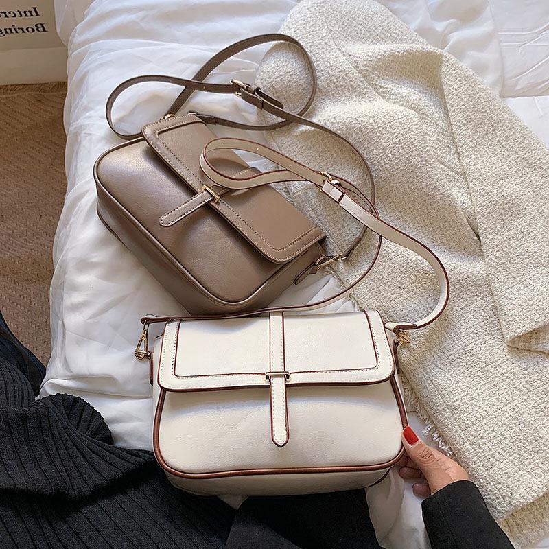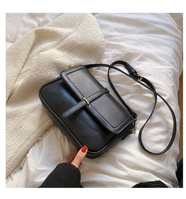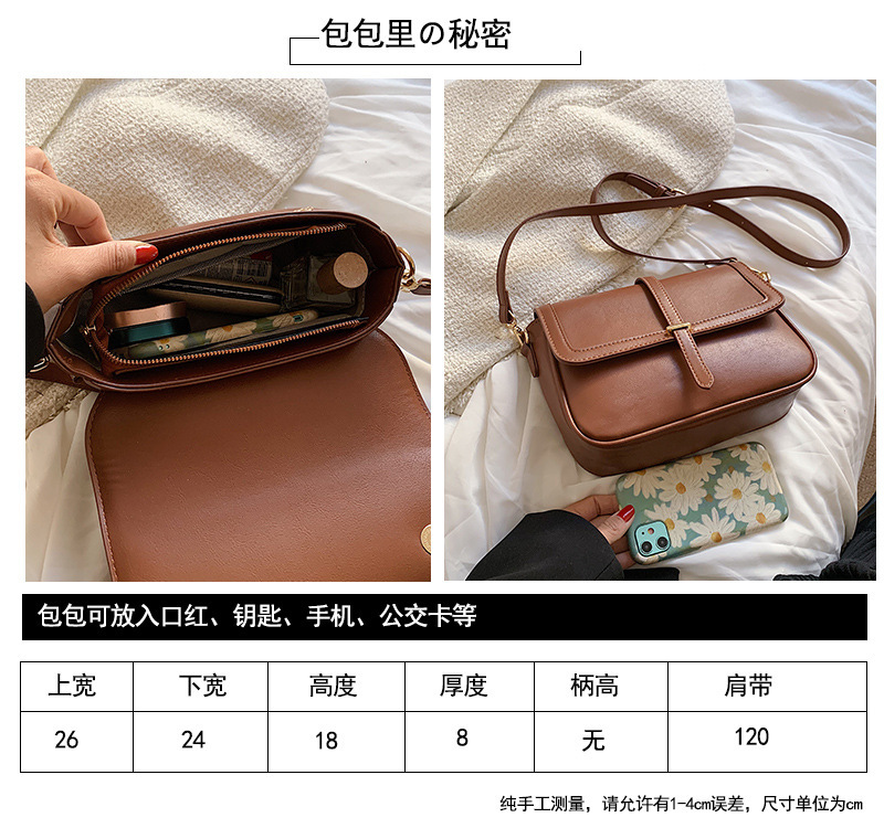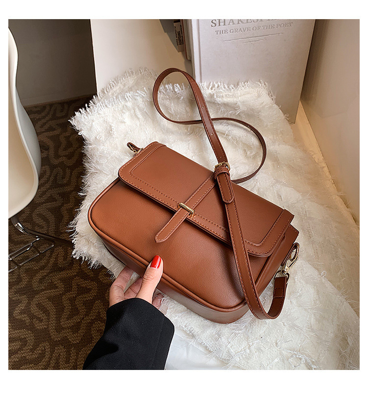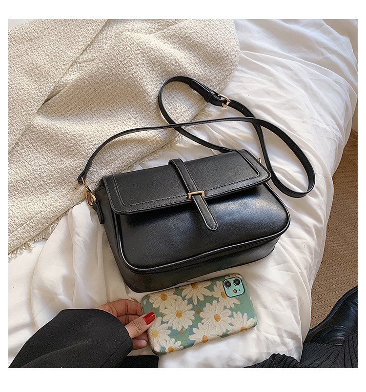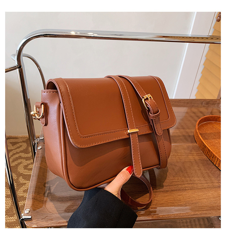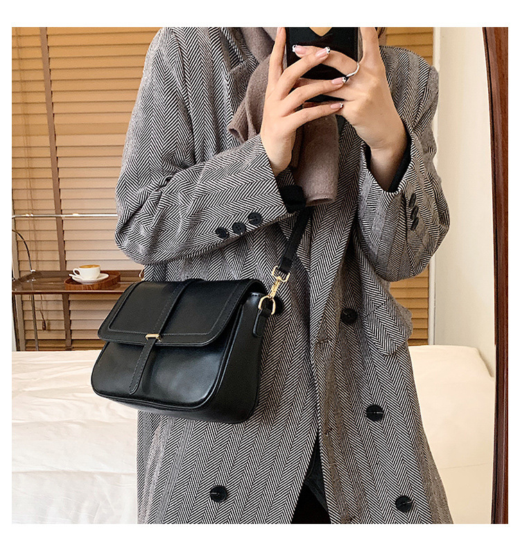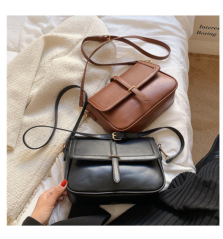 JM-1293 新款女士单肩包拉链抽带邮差包质感通勤包复古简约纯色包包女