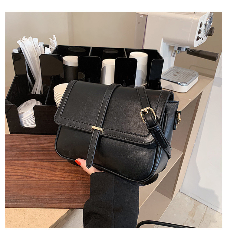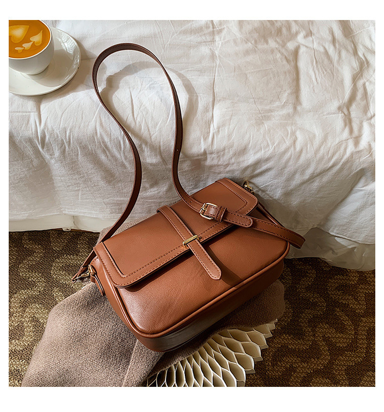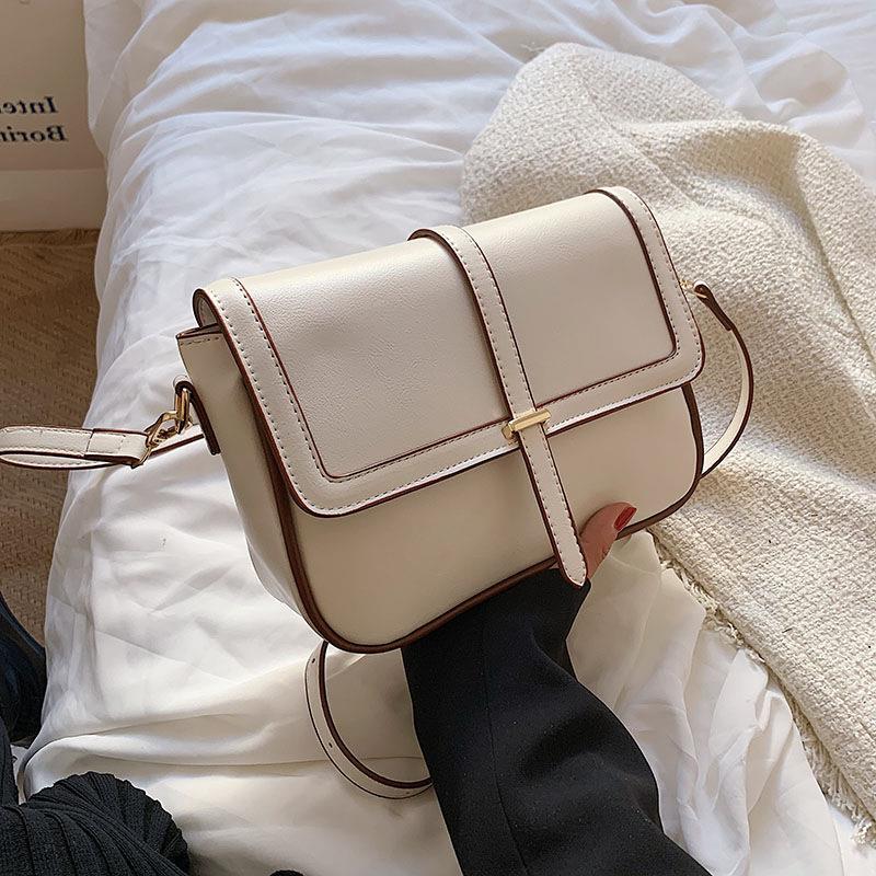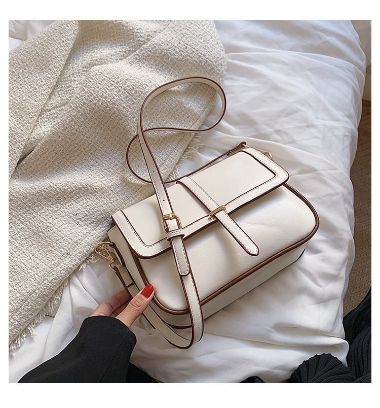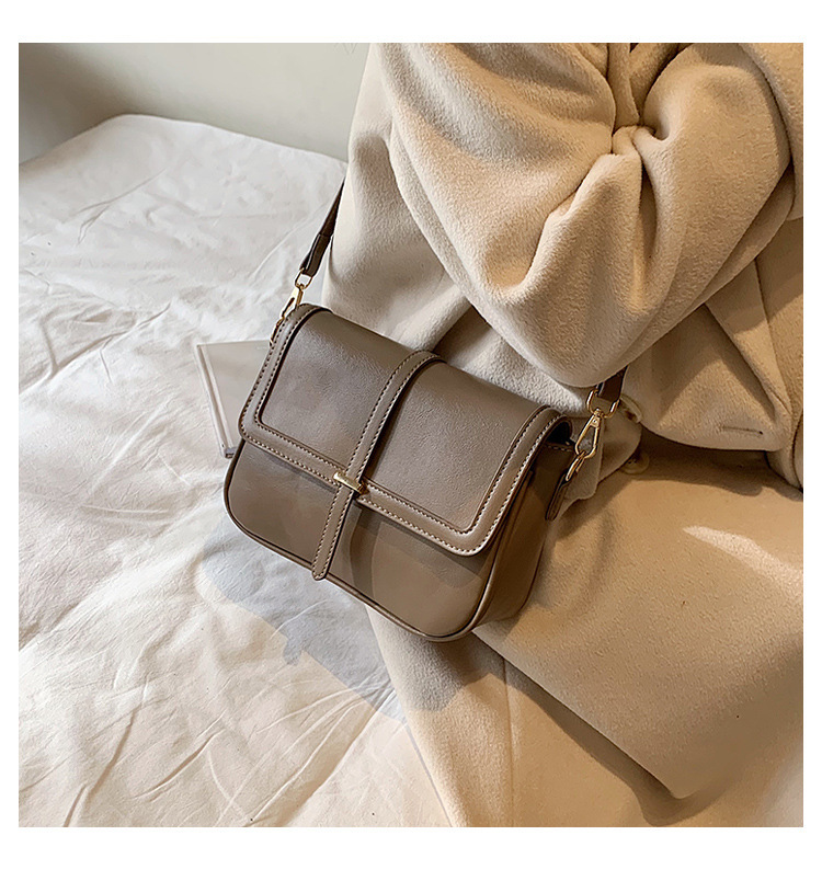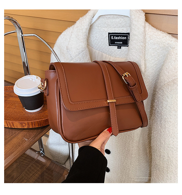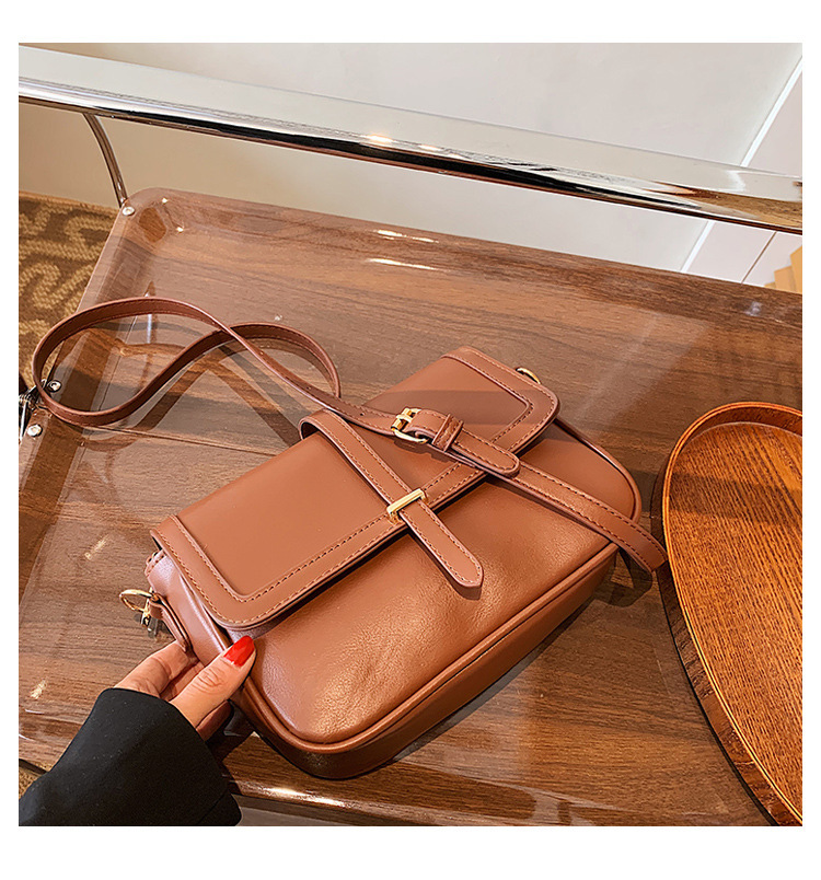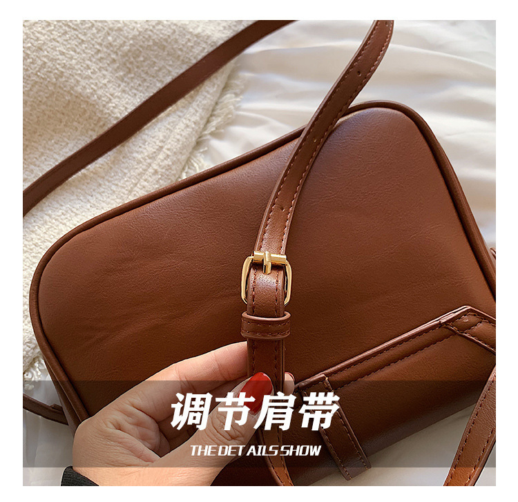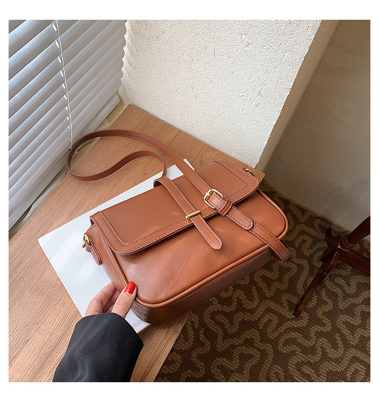 JM-1293 新款女士单肩包拉链抽带邮差包质感通勤包复古简约纯色包包女