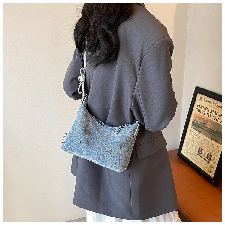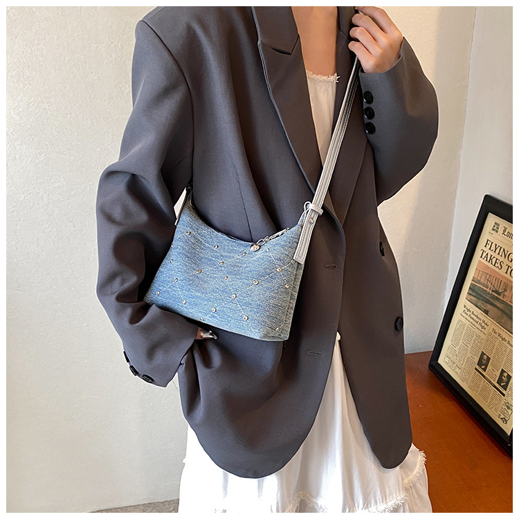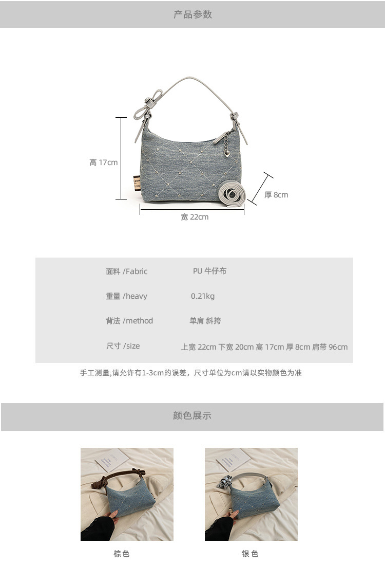 JM-1303 女包牛仔布包夏天 新款时尚小众设计斜挎包女士布包手提饺子包
