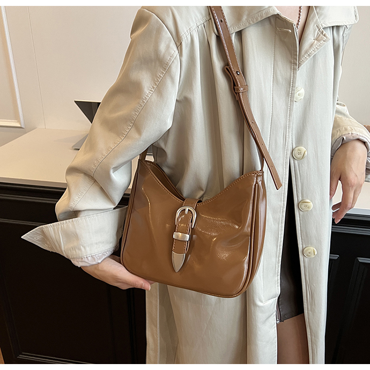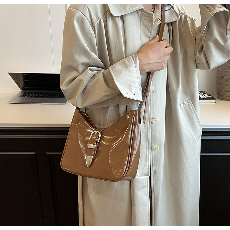 JM-1313 新款初秋油皮亮面复古小包女包流行百搭斜挎包感单肩腋下包