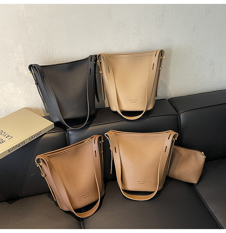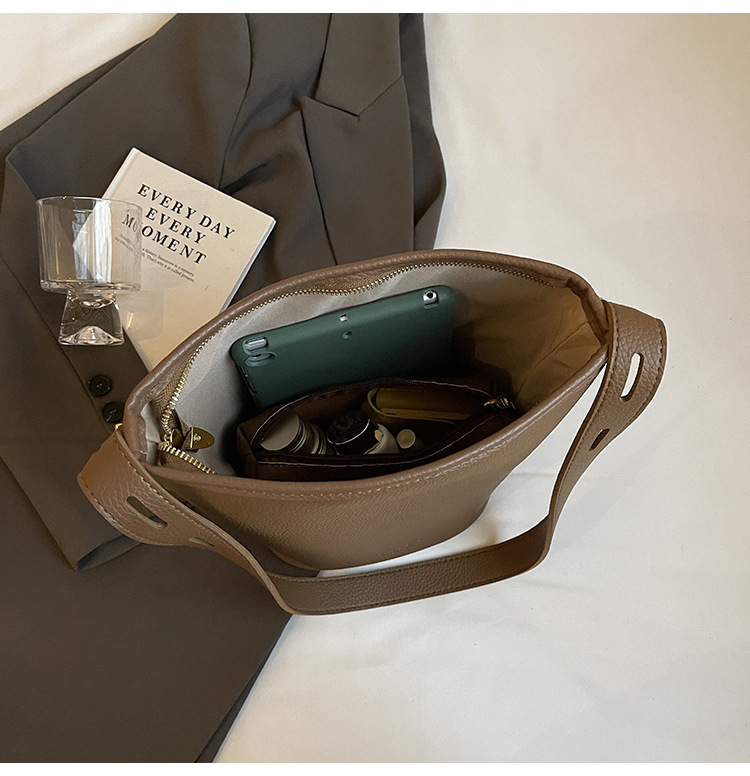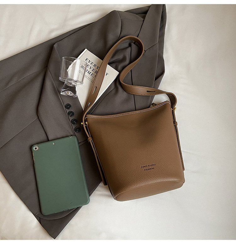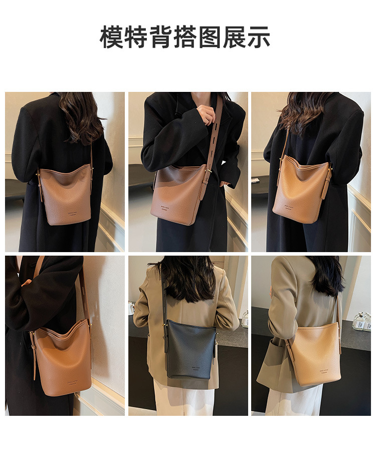 JM-1327 复古简约水桶包包女 新款秋季上班通勤单肩包大容量腋下斜挎包