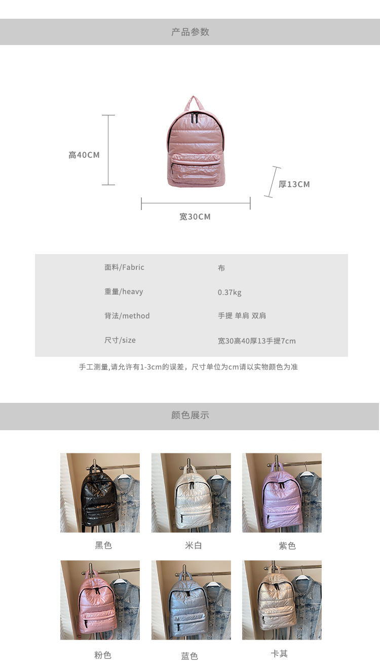 JM-1329 流行棉服双肩包女休闲百搭太空棉背包跨境批发大容量轻便包包