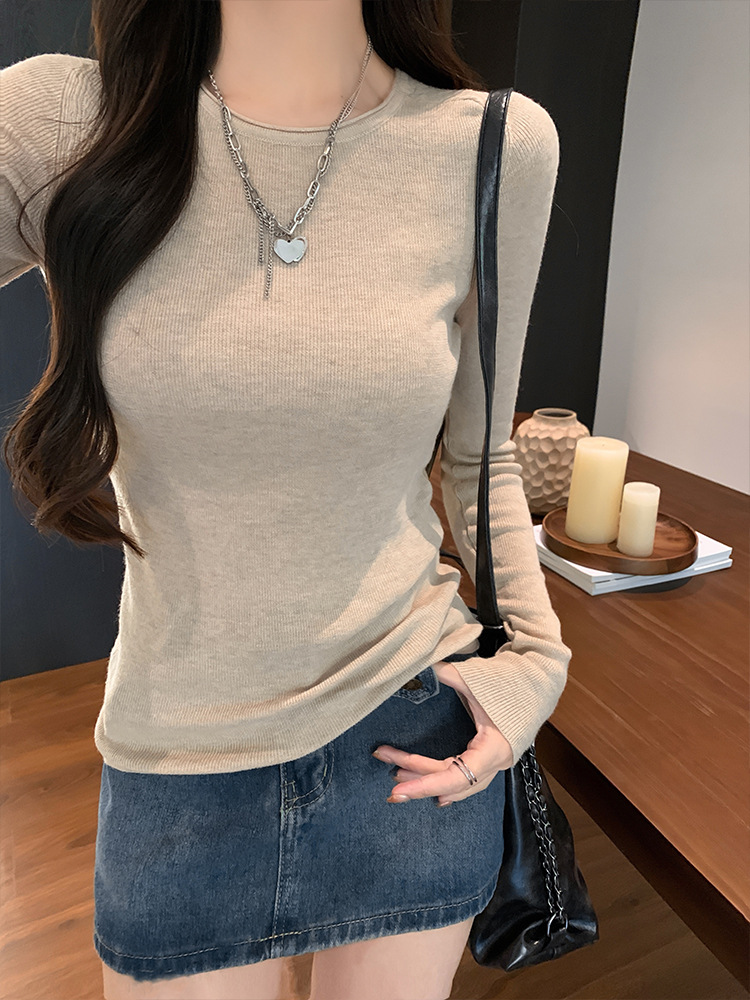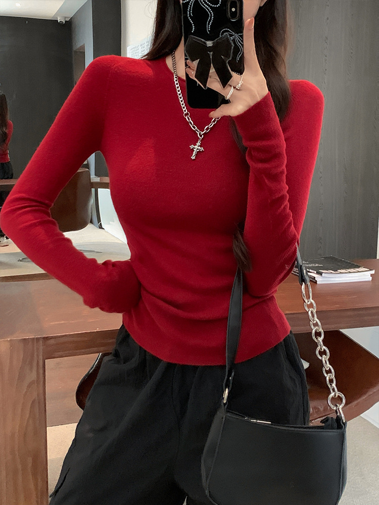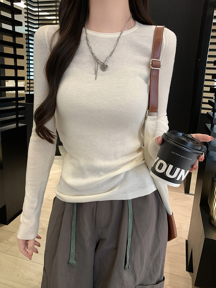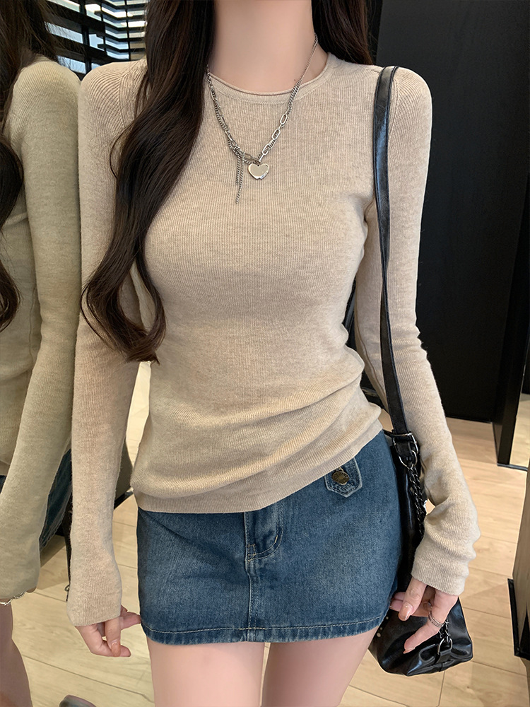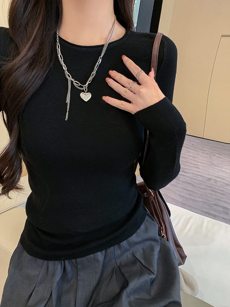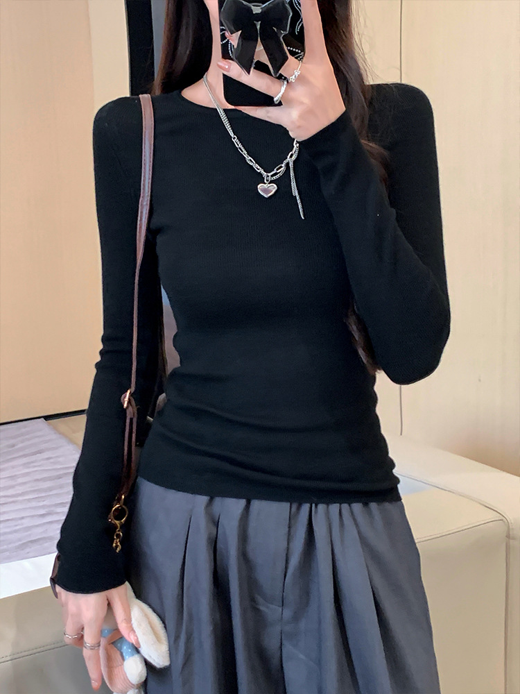 JMA-934 实拍 毛针织简约百搭正肩长袖紧身显瘦打底衫纯色上衣