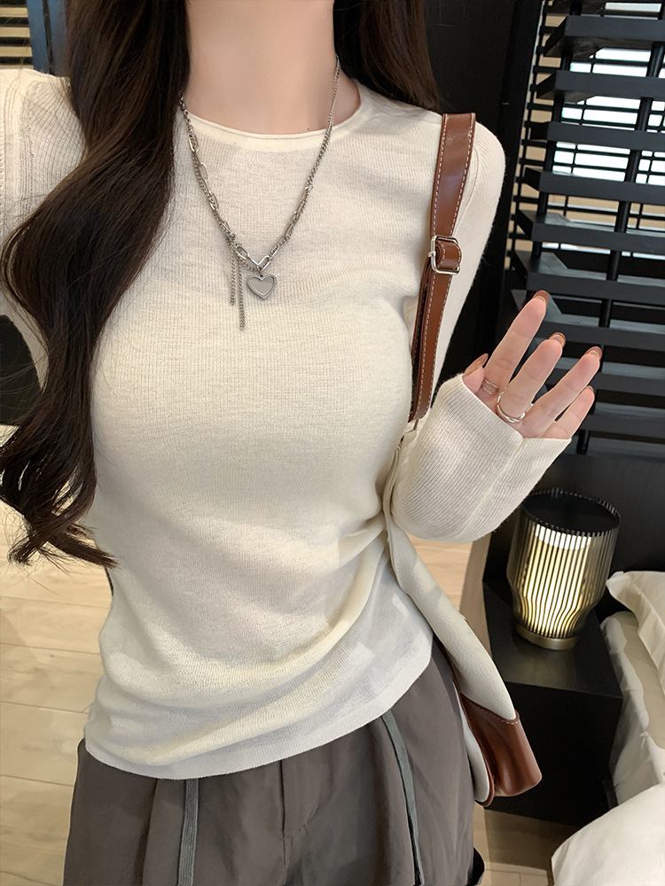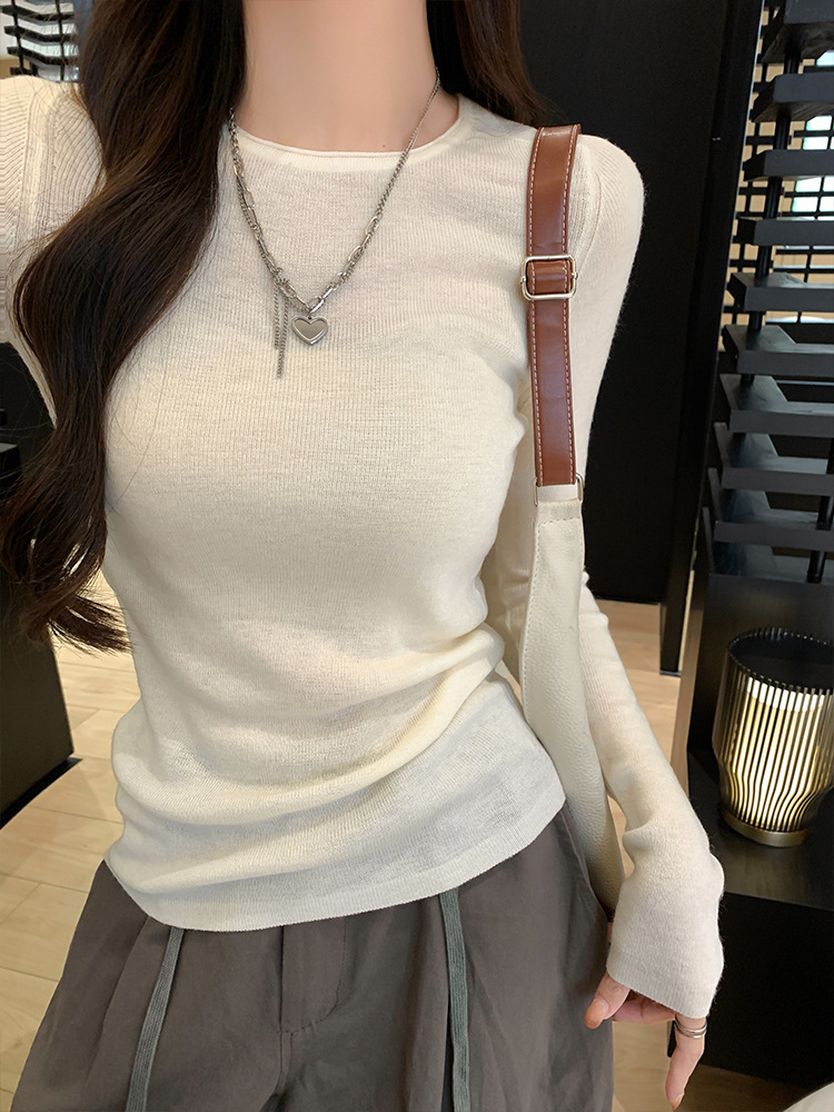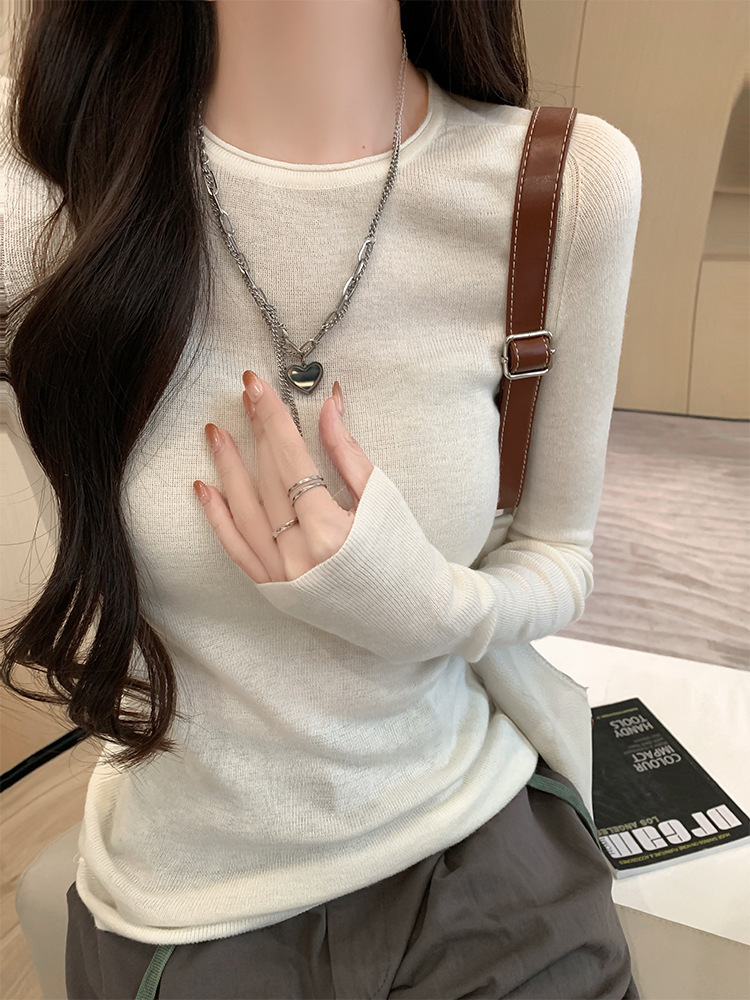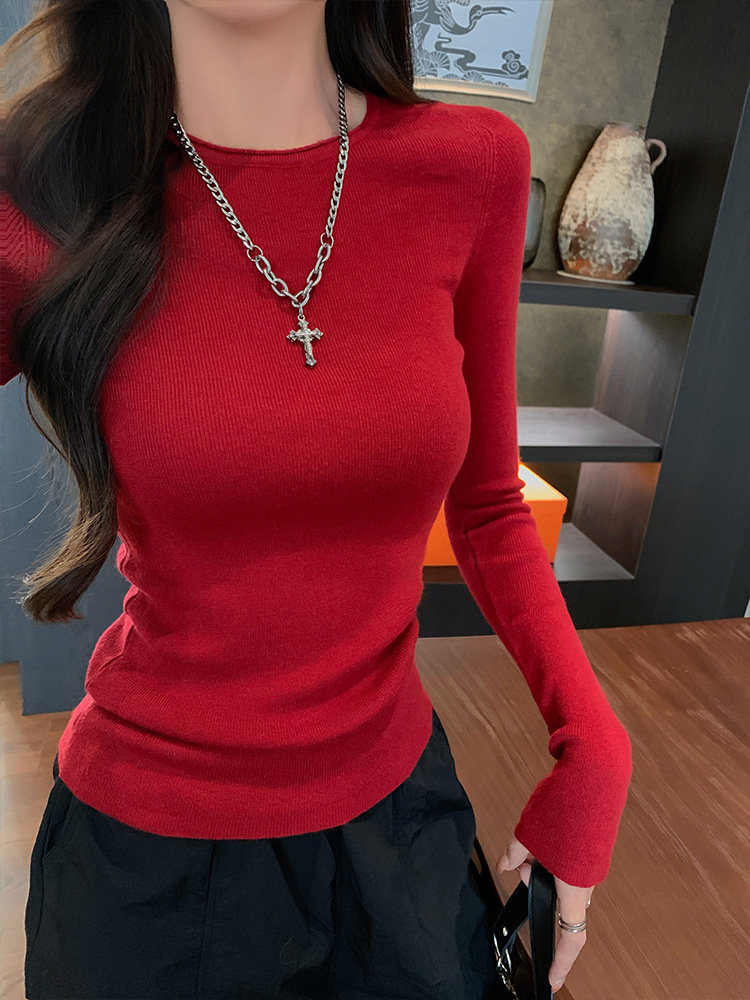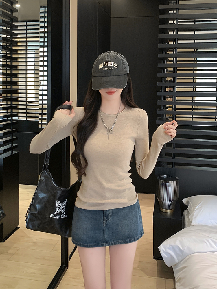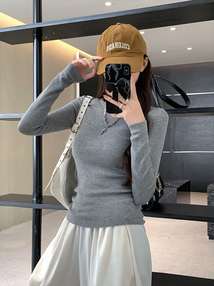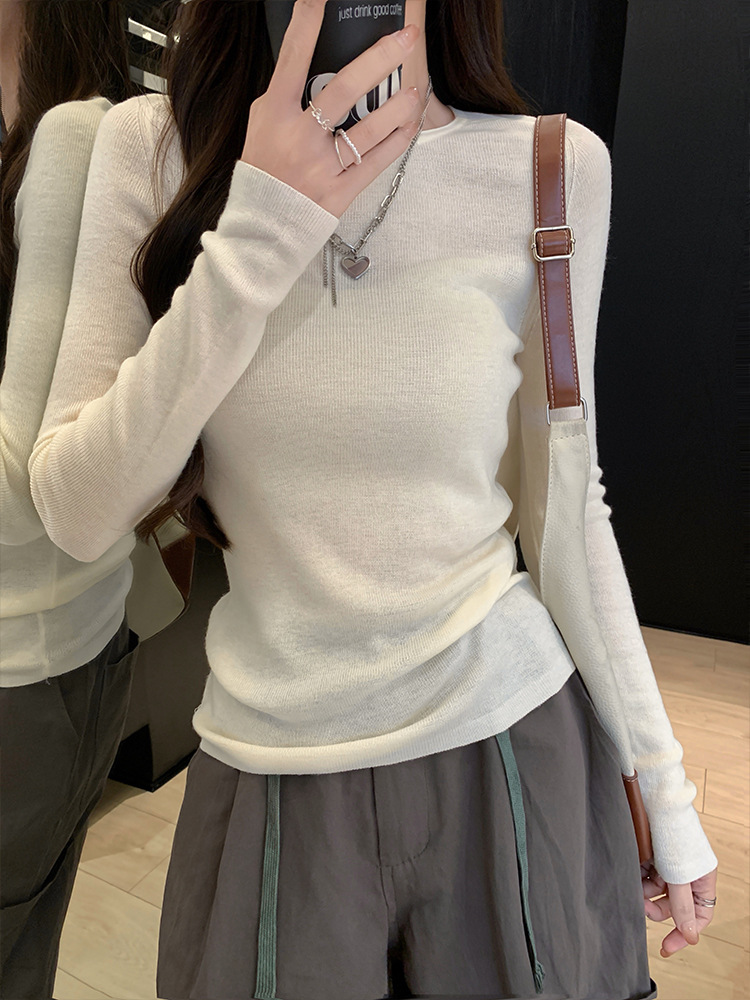 JMA-934 实拍 毛针织简约百搭正肩长袖紧身显瘦打底衫纯色上衣
