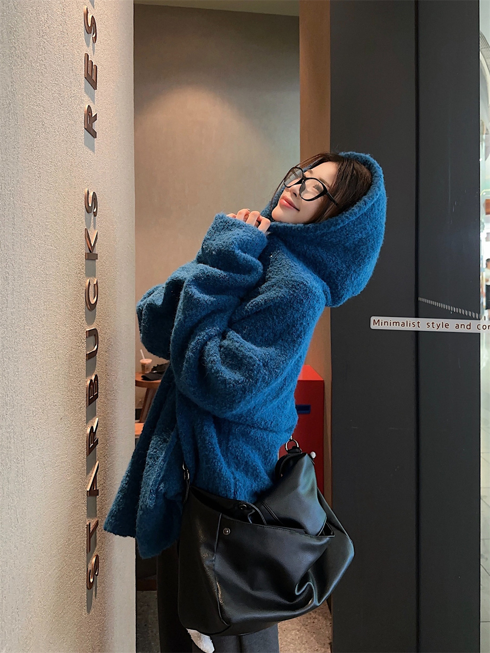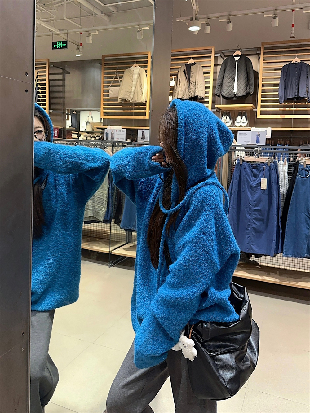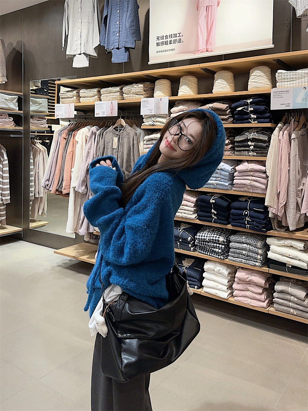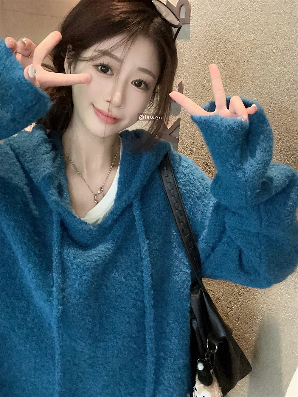 JMA-936 实拍 新款韩版慵懒风宽松简约软糯长袖连帽针织套头毛衣