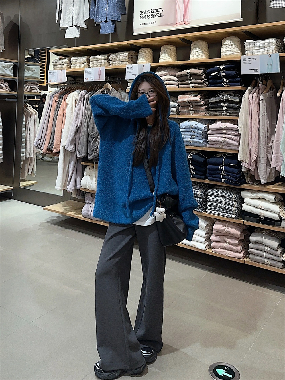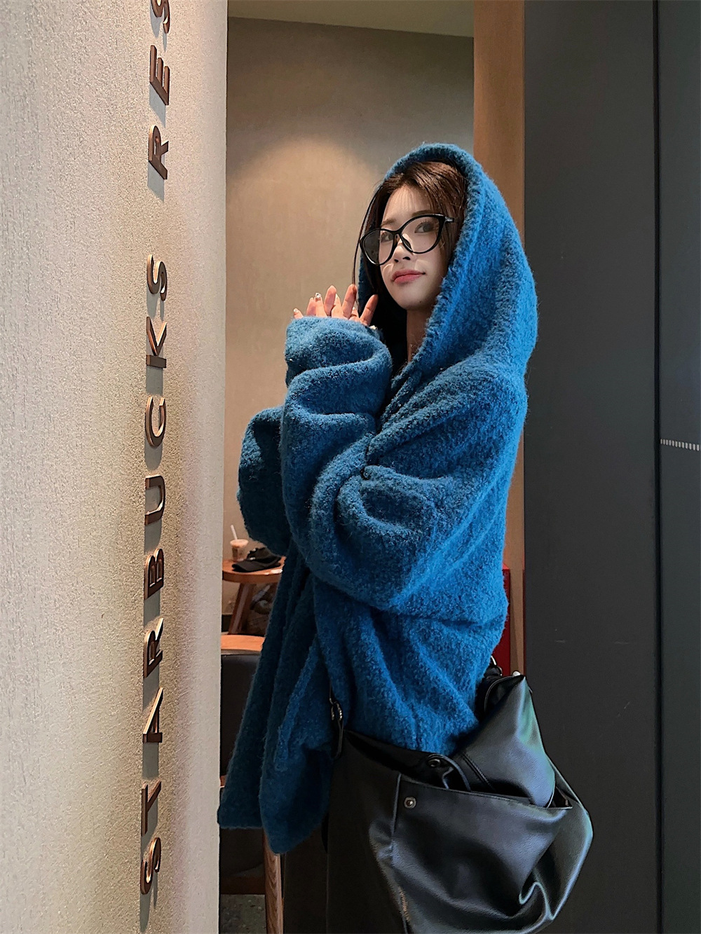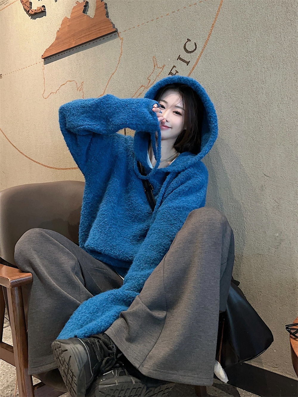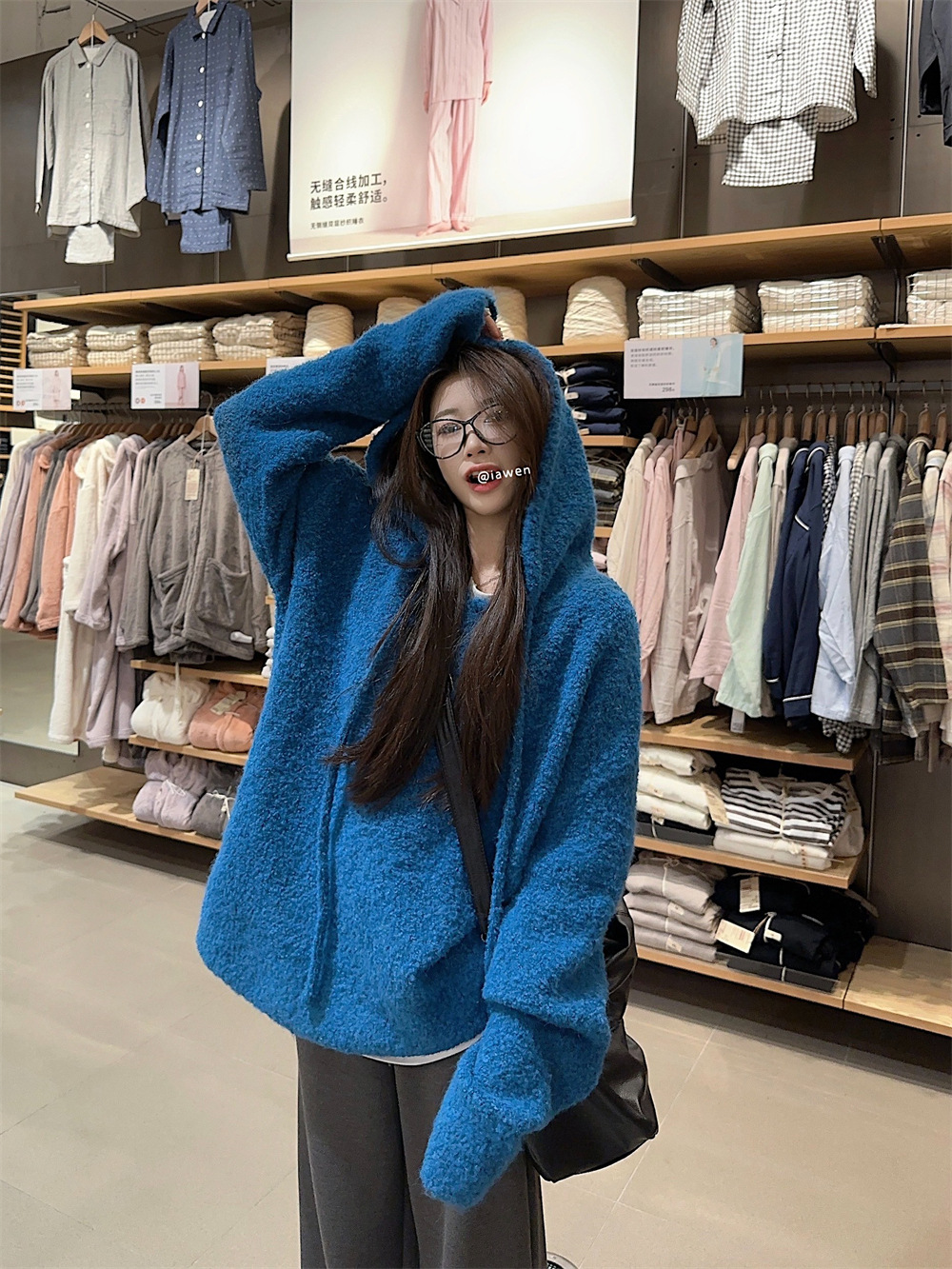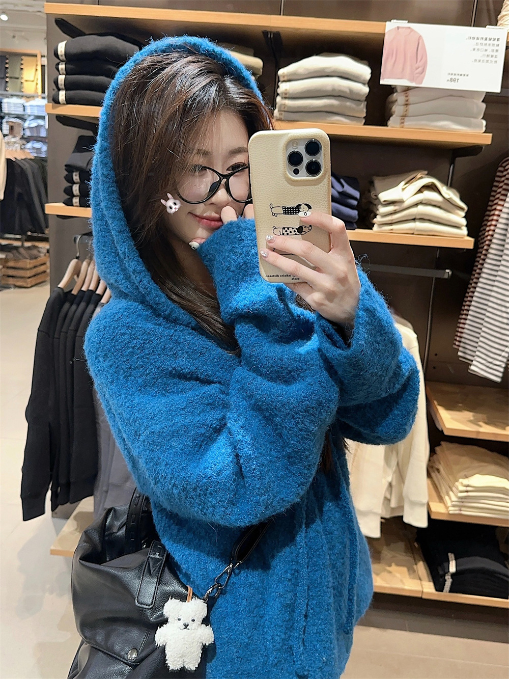 JMA-936 实拍 新款韩版慵懒风宽松简约软糯长袖连帽针织套头毛衣