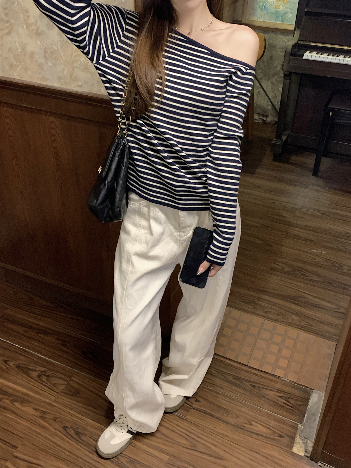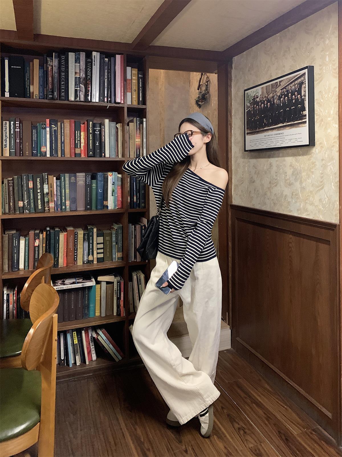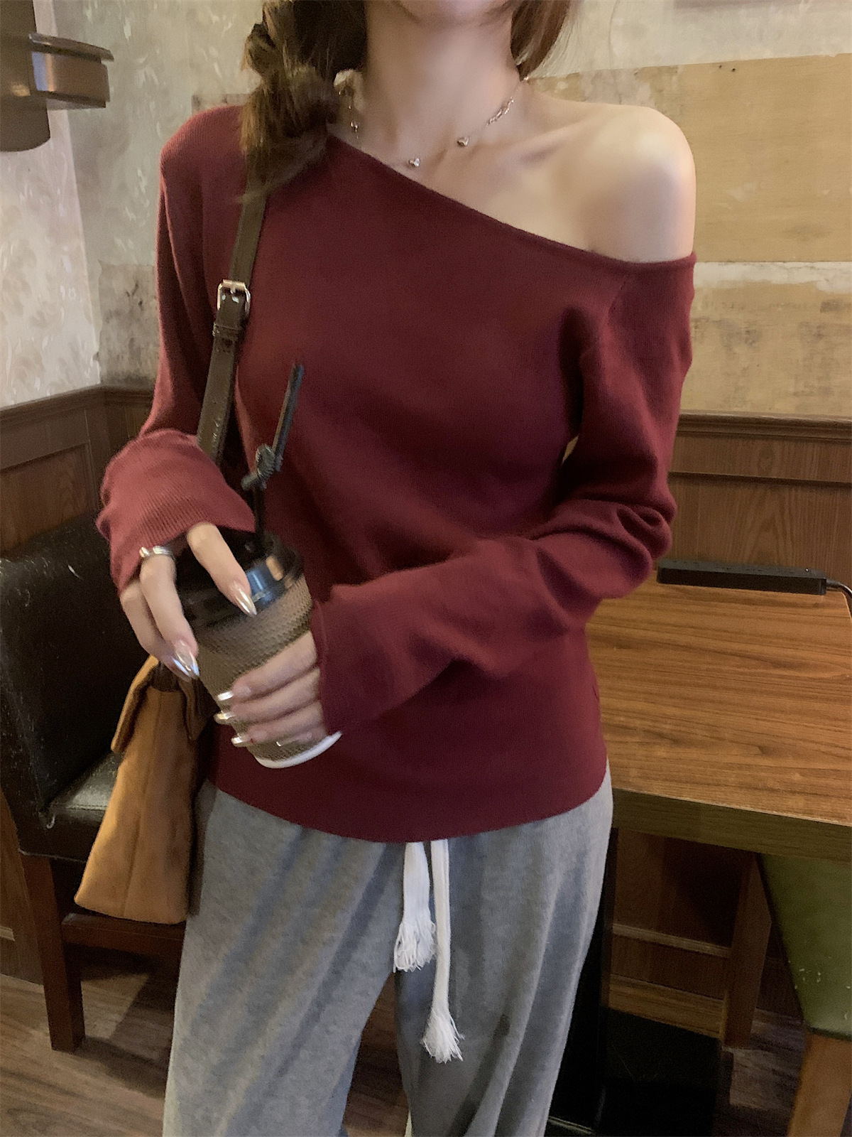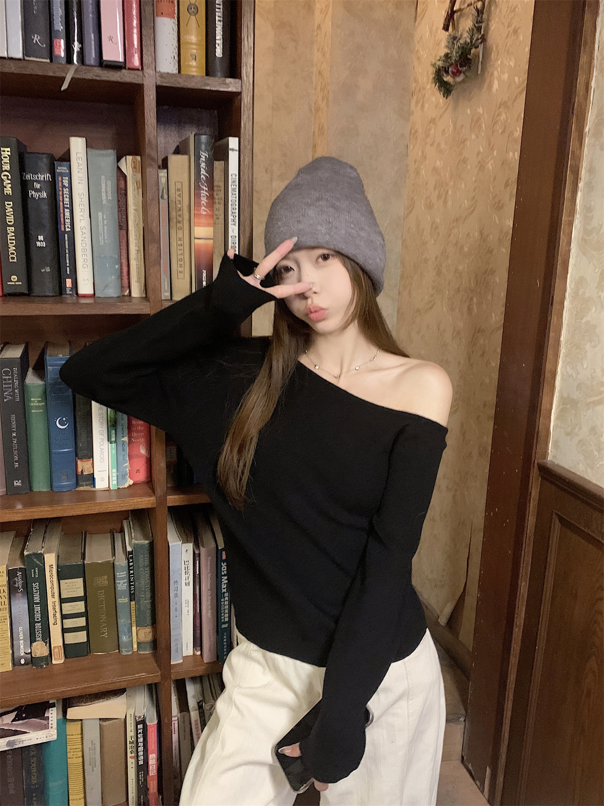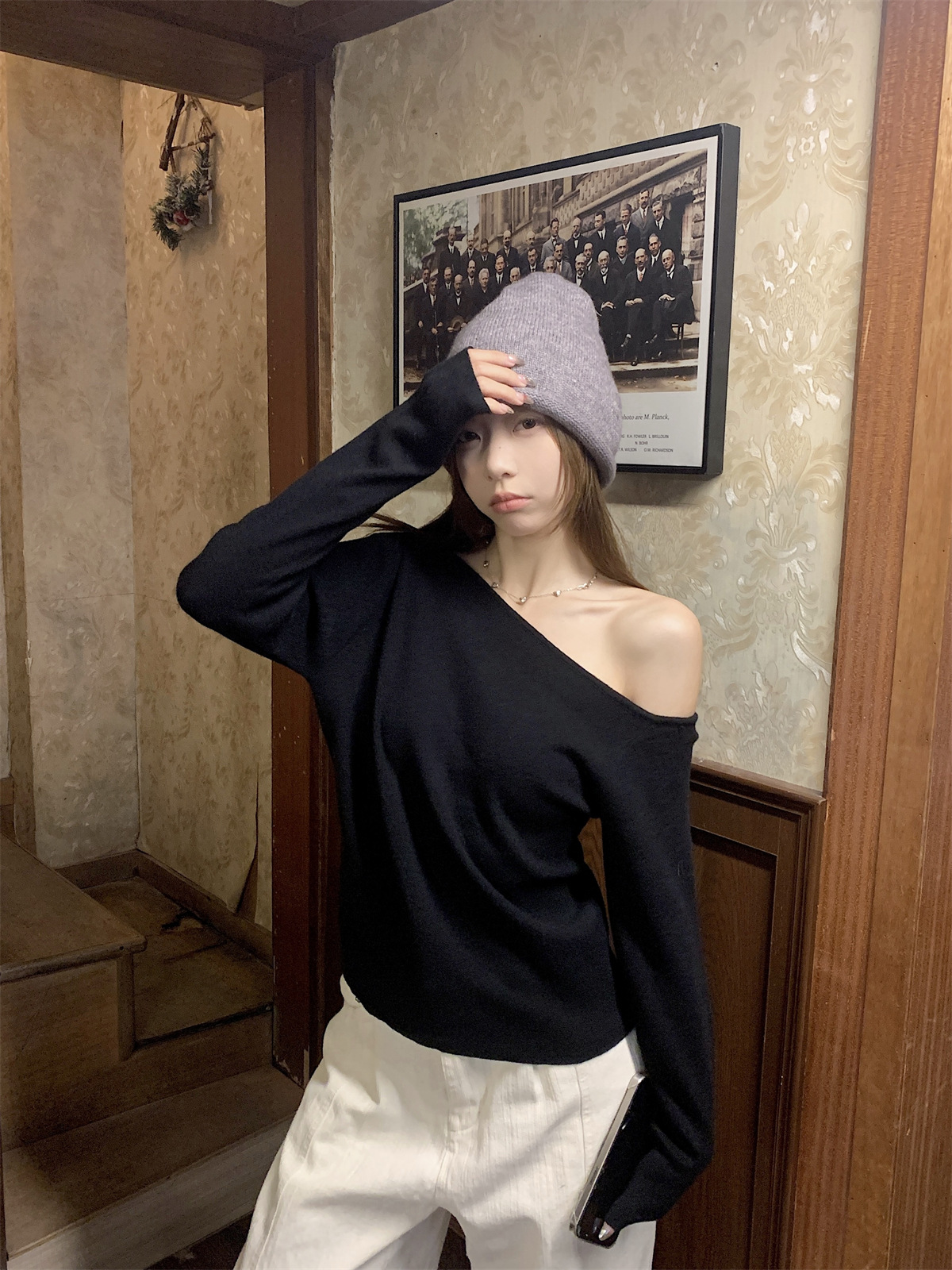 JMA-938 实拍 韩版修身斜领露肩百搭安迪绒针织衫打底长袖簿毛衣