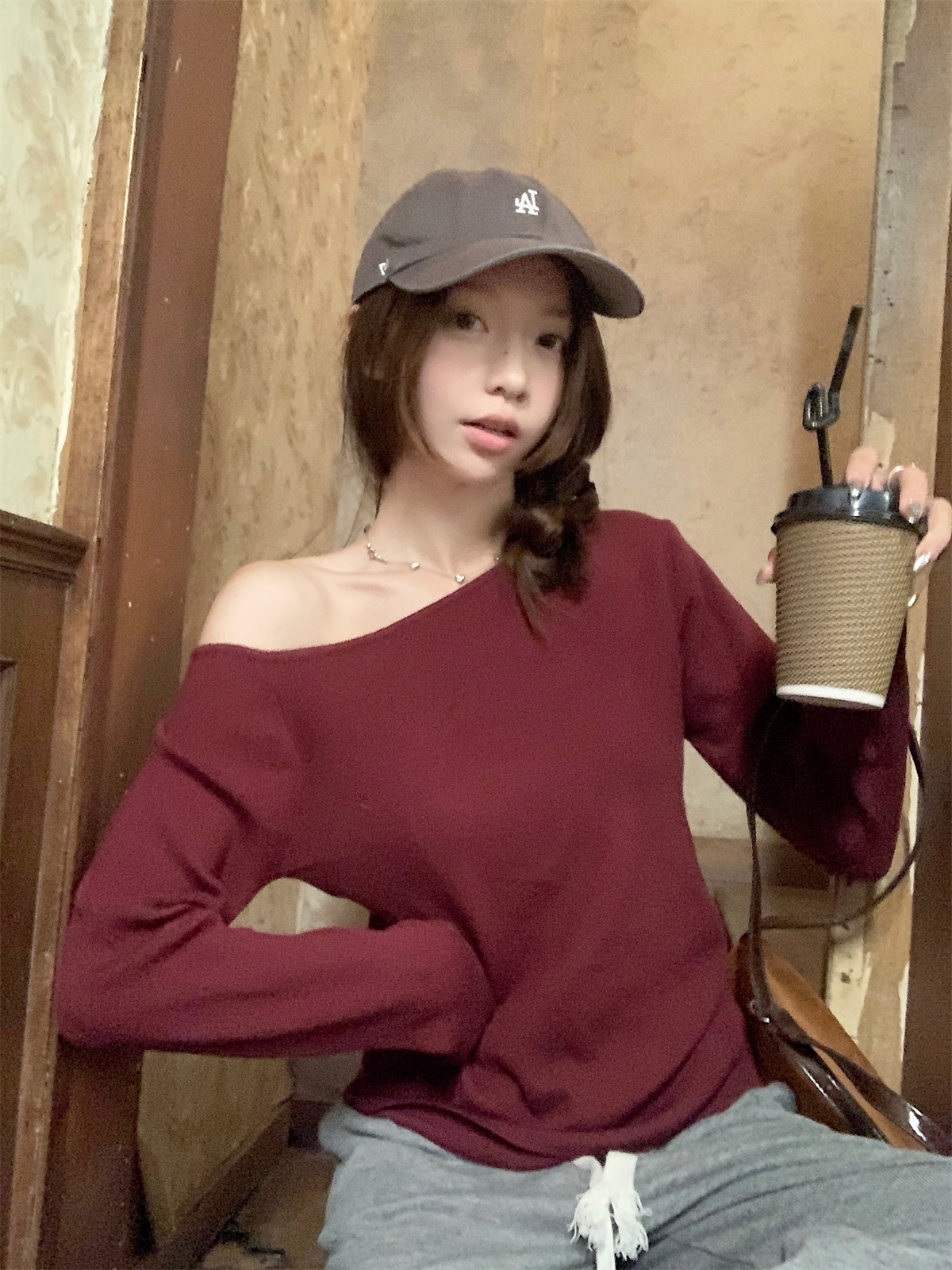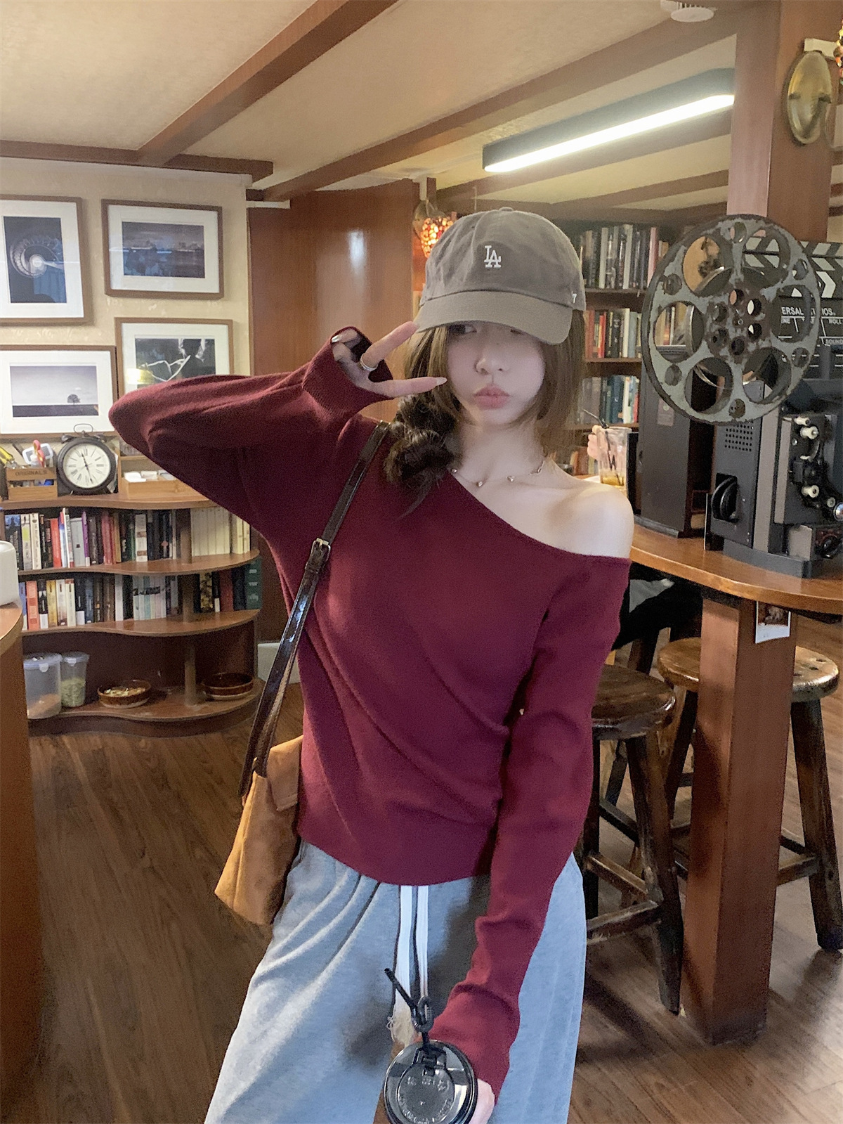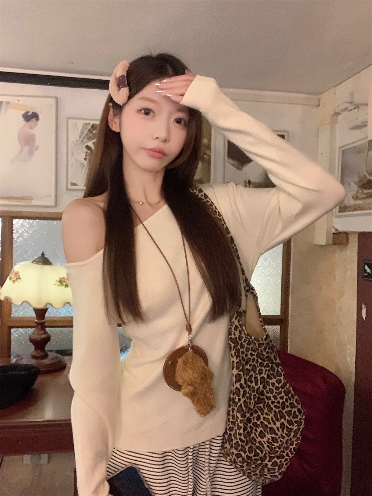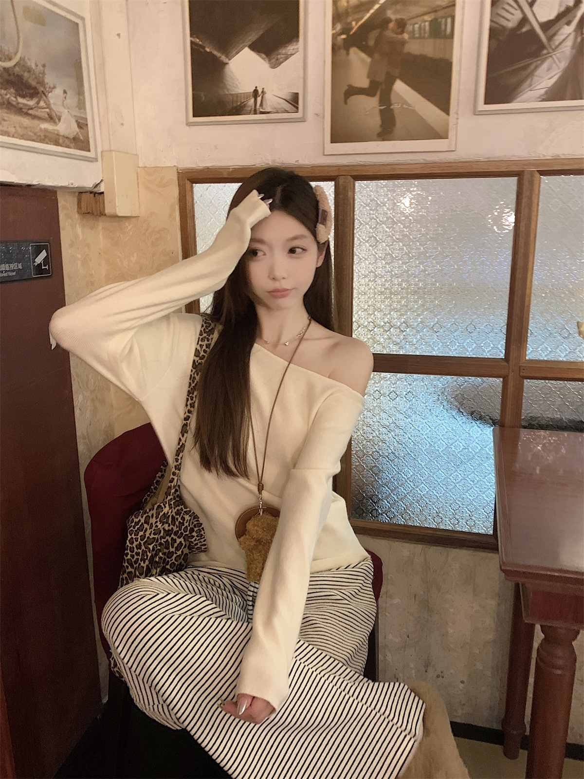JMA-938 实拍 韩版修身斜领露肩百搭安迪绒针织衫打底长袖簿毛衣
