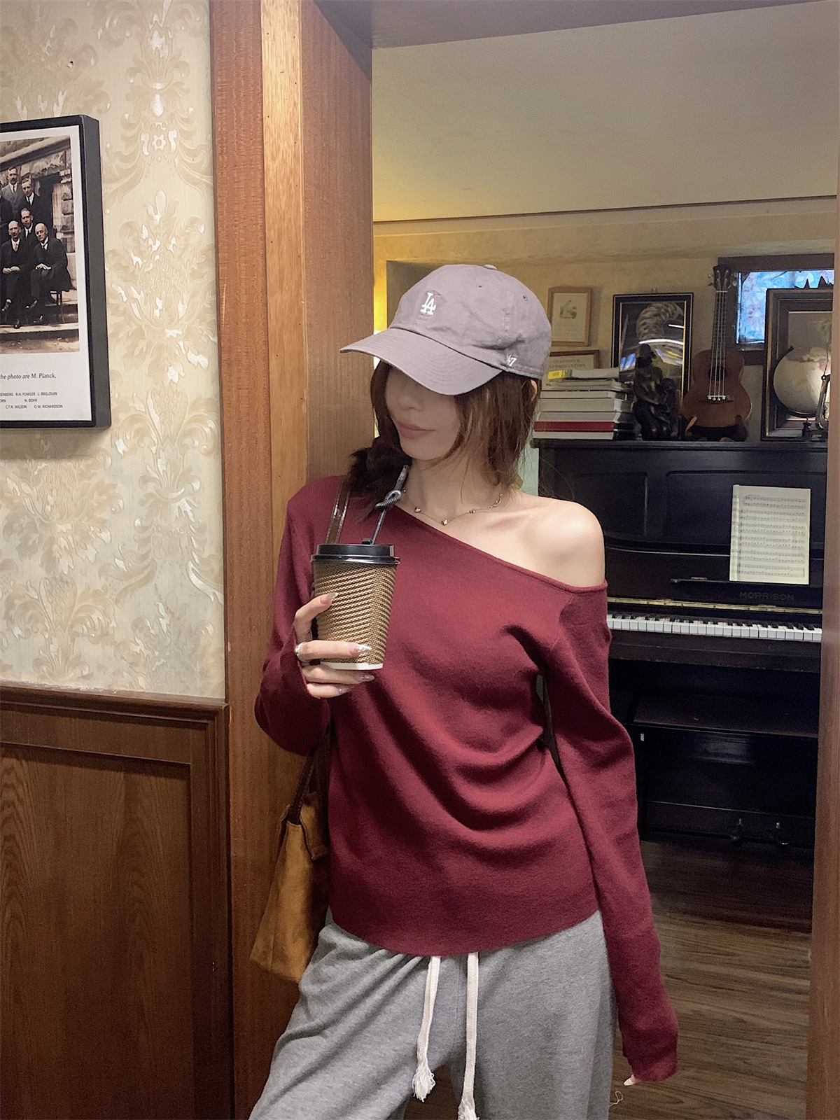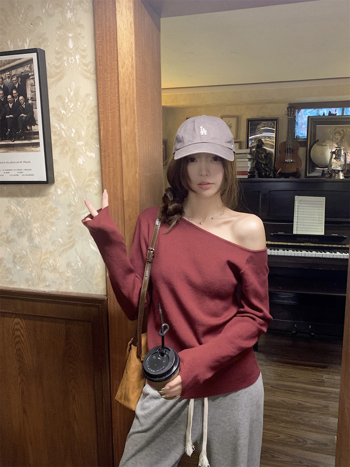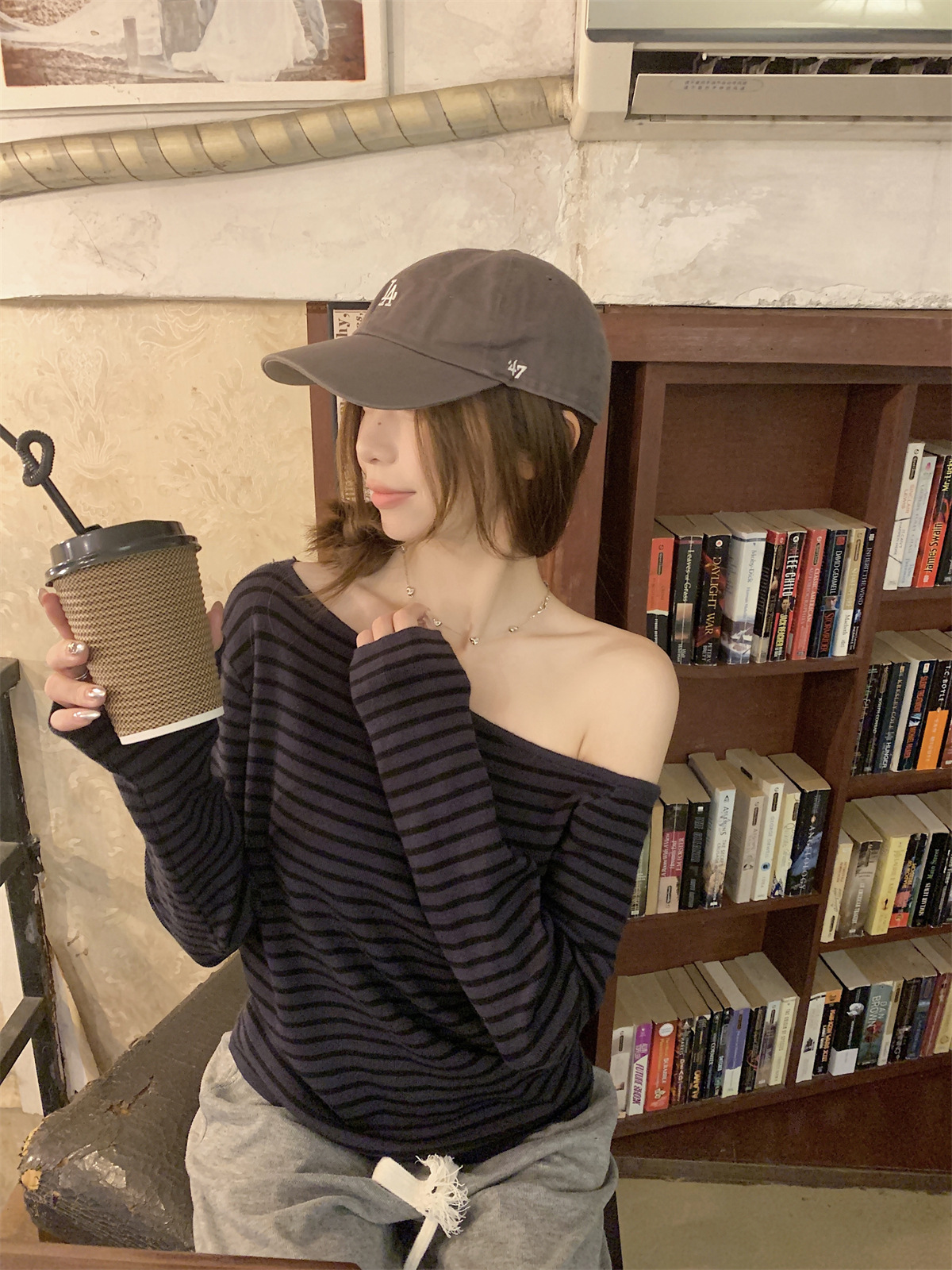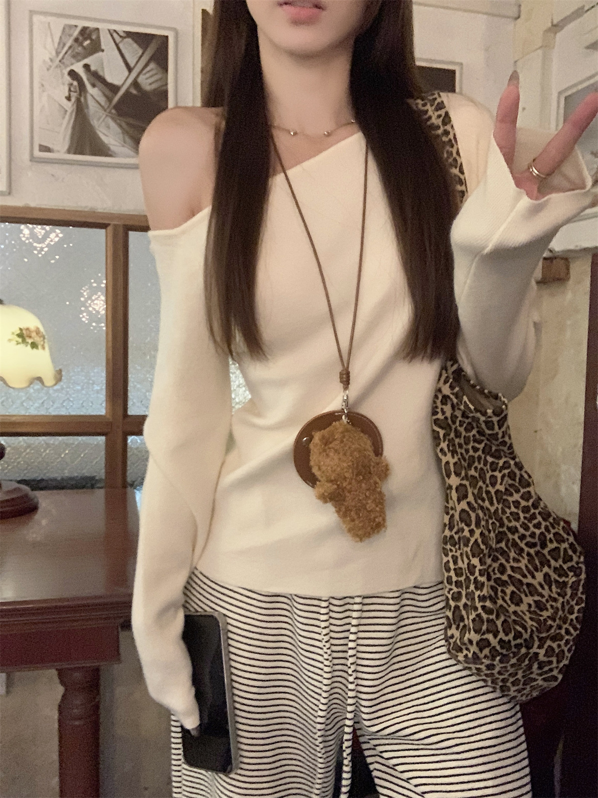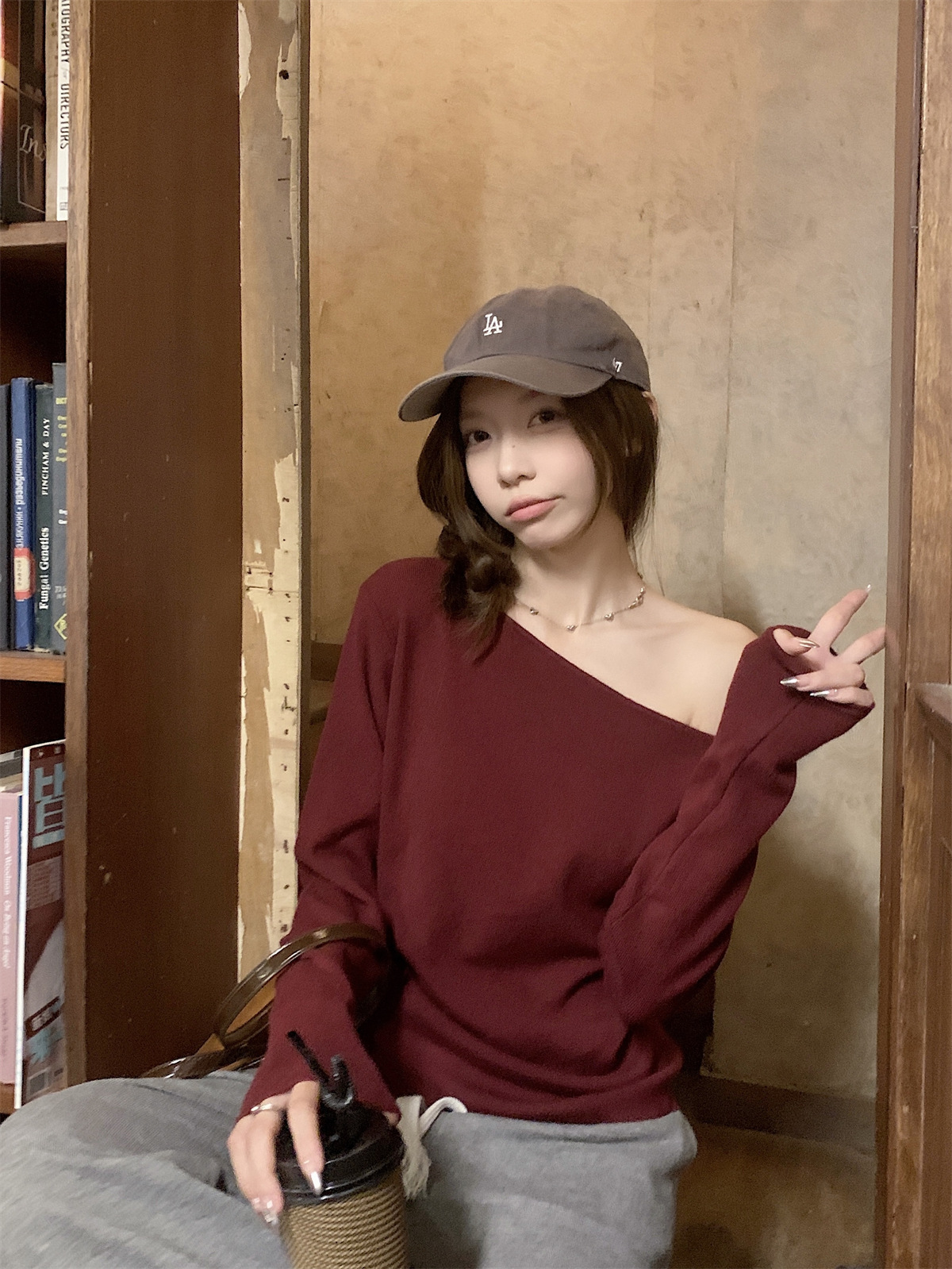 JMA-938 实拍 韩版修身斜领露肩百搭安迪绒针织衫打底长袖簿毛衣