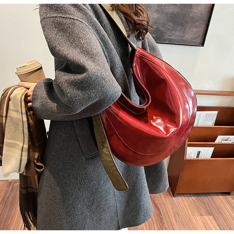 JM-1337 时尚质感大容量半圆托特包 流行新品女式通勤百搭PU软皮斜挎包