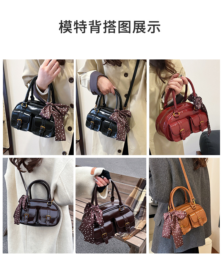 JM-1340 小众设计时尚手提保龄球包包 新款复古单肩波士顿包感斜挎女包
