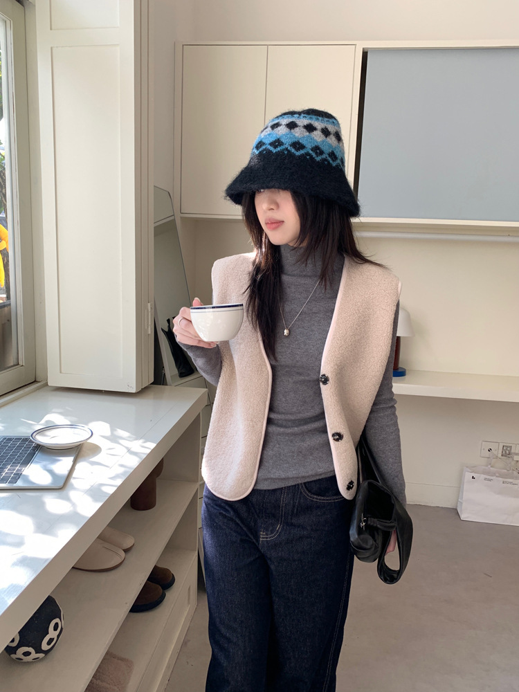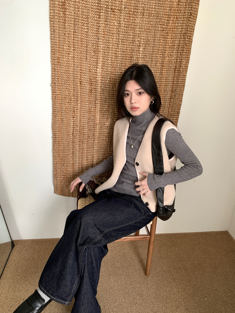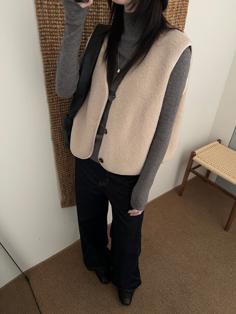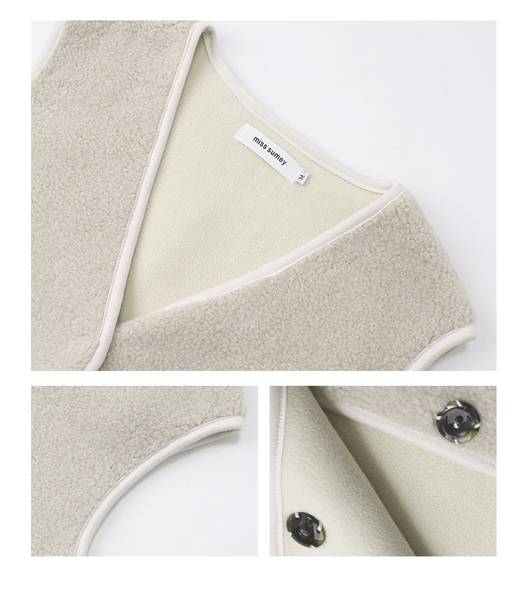 JMA-956 实拍 秋冬新款羊羔绒摇粒绒开衫马夹复古v领坎肩外穿内搭毛毛外套