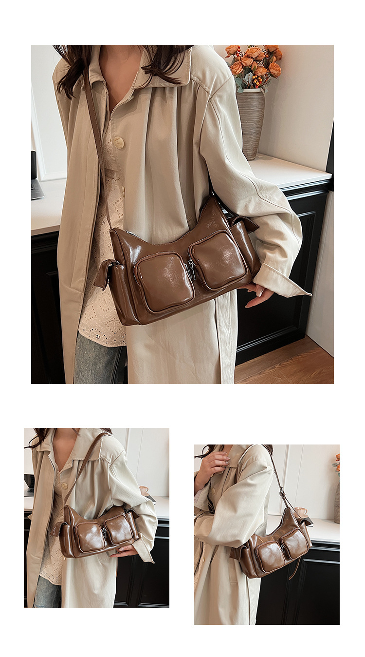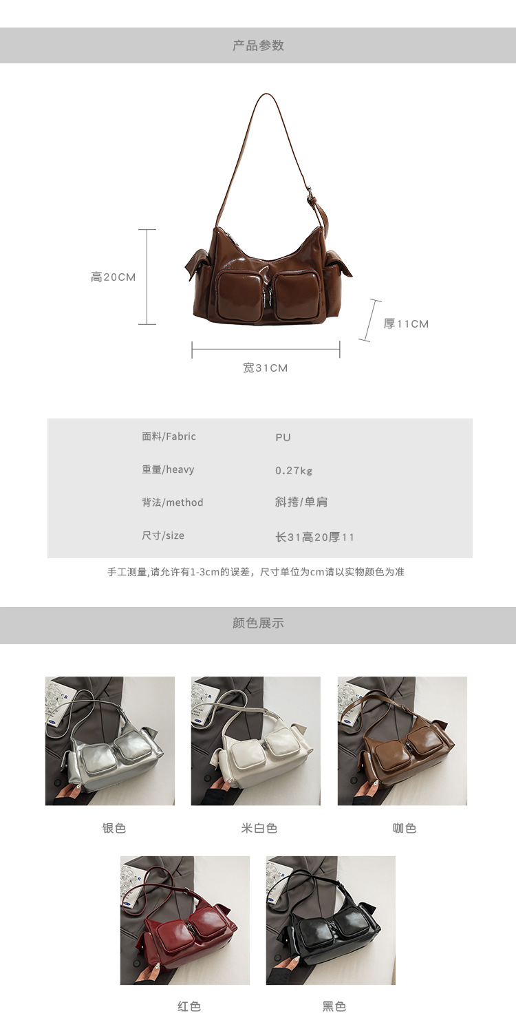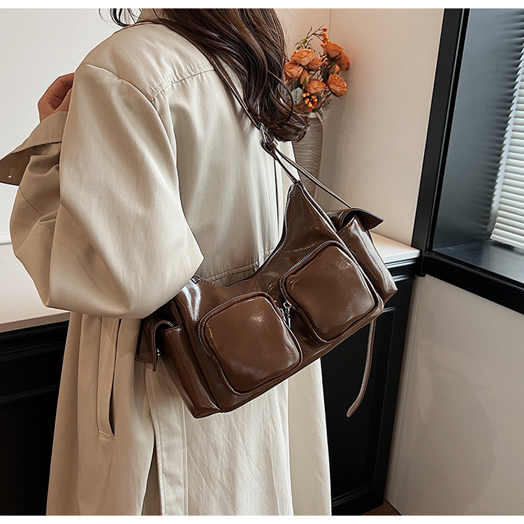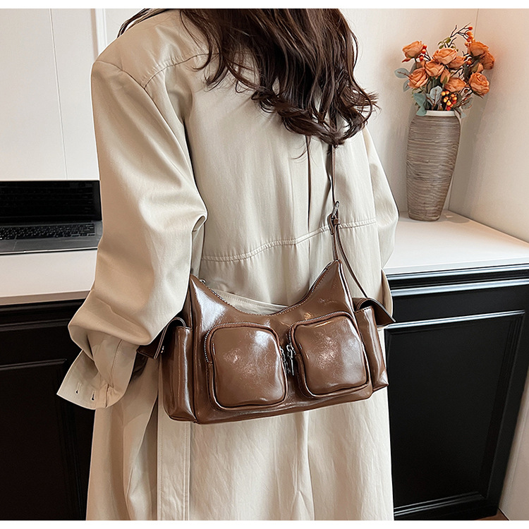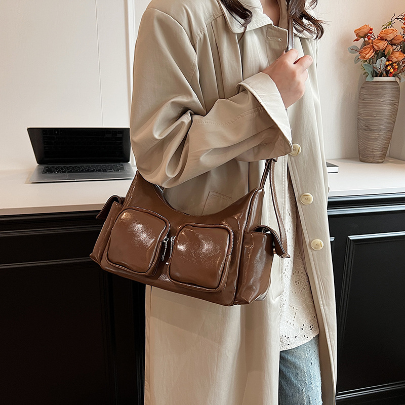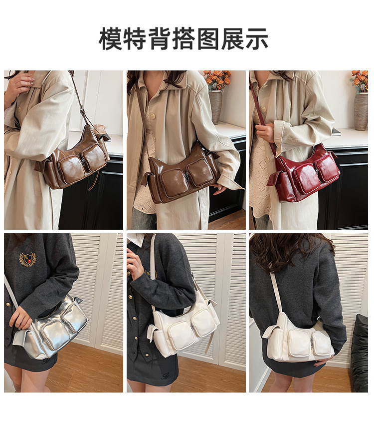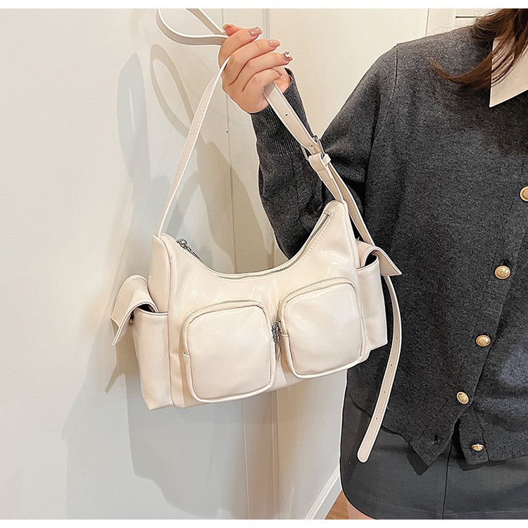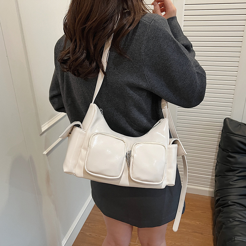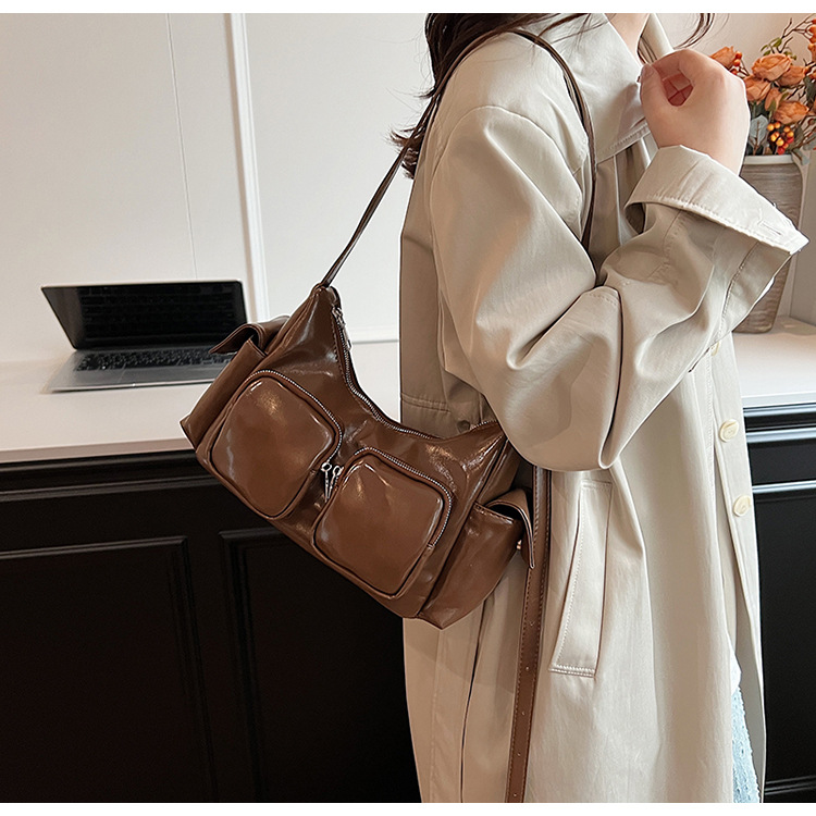 JM-1361 小众设计韩版洋气时尚新款质感休闲多口袋单肩腋下托特包包女