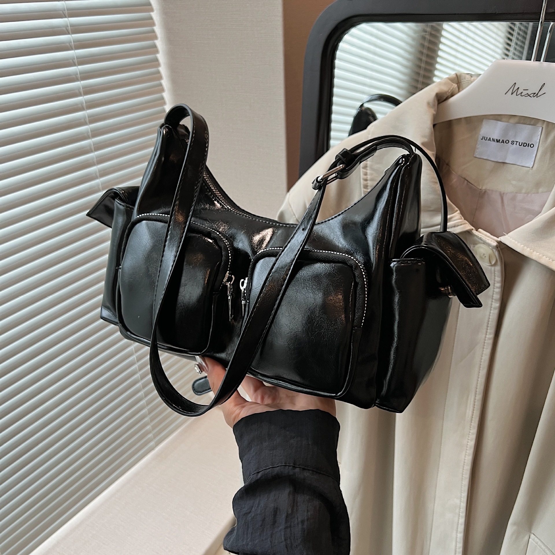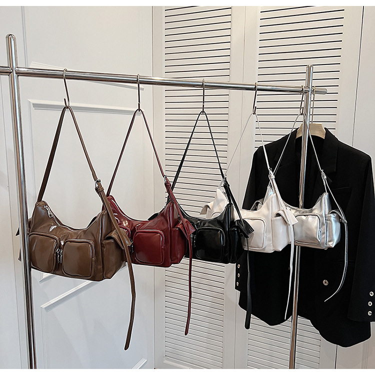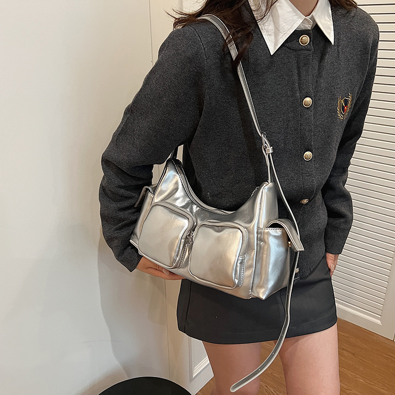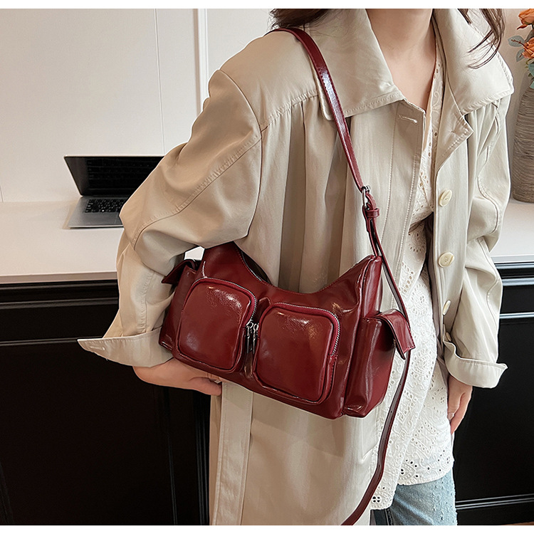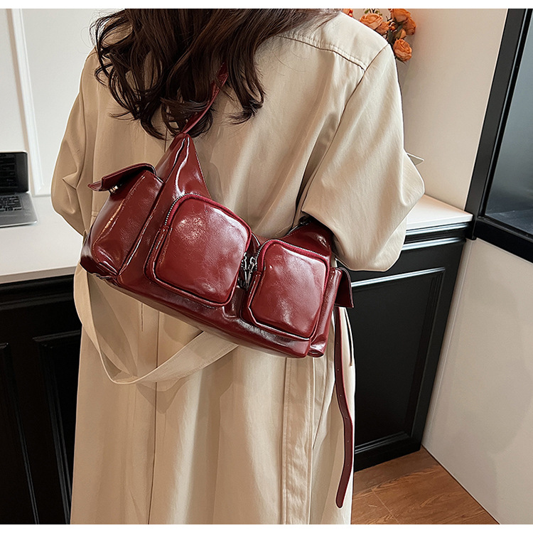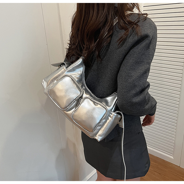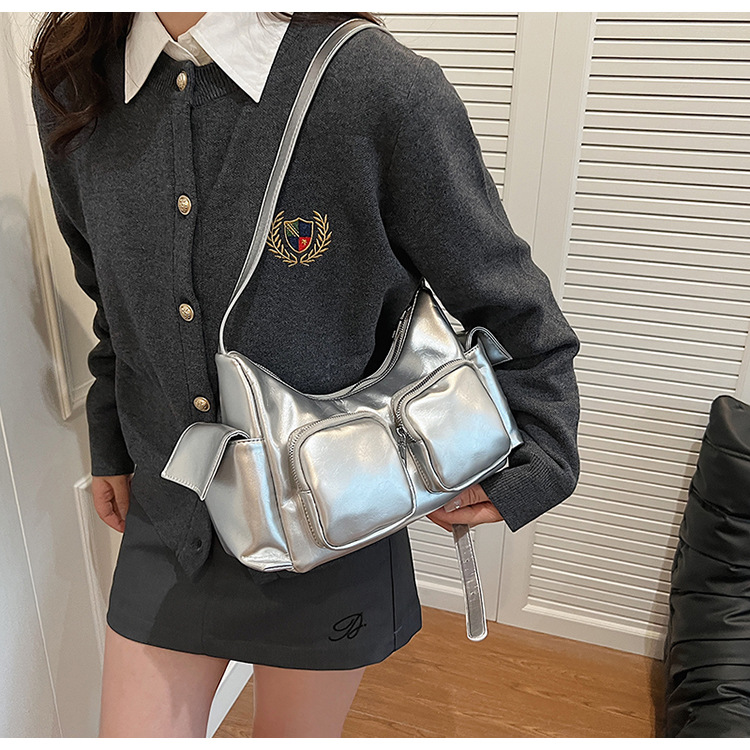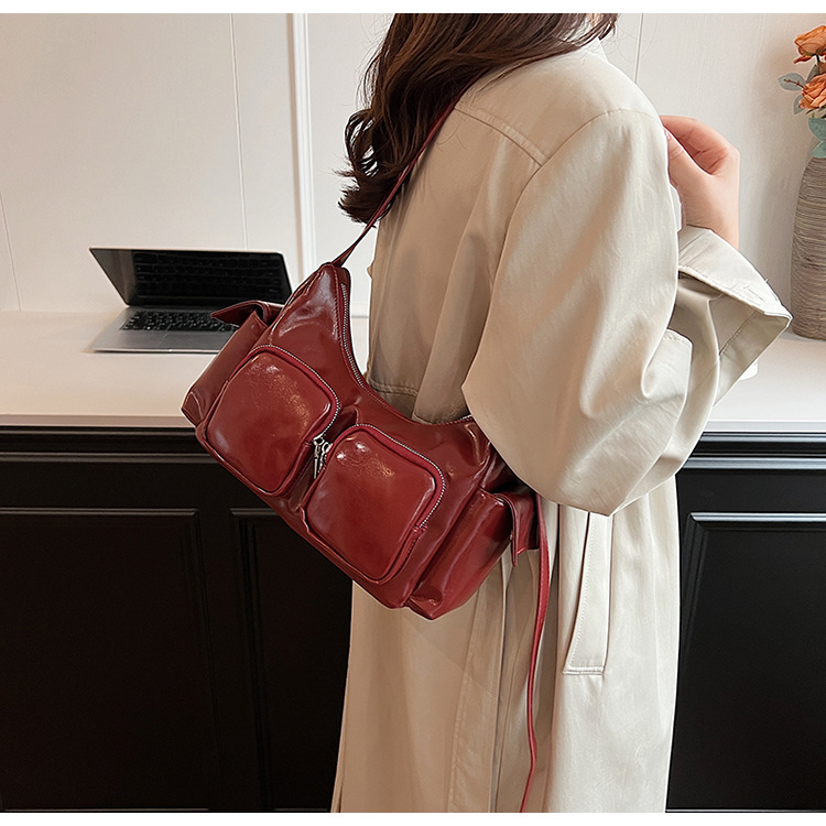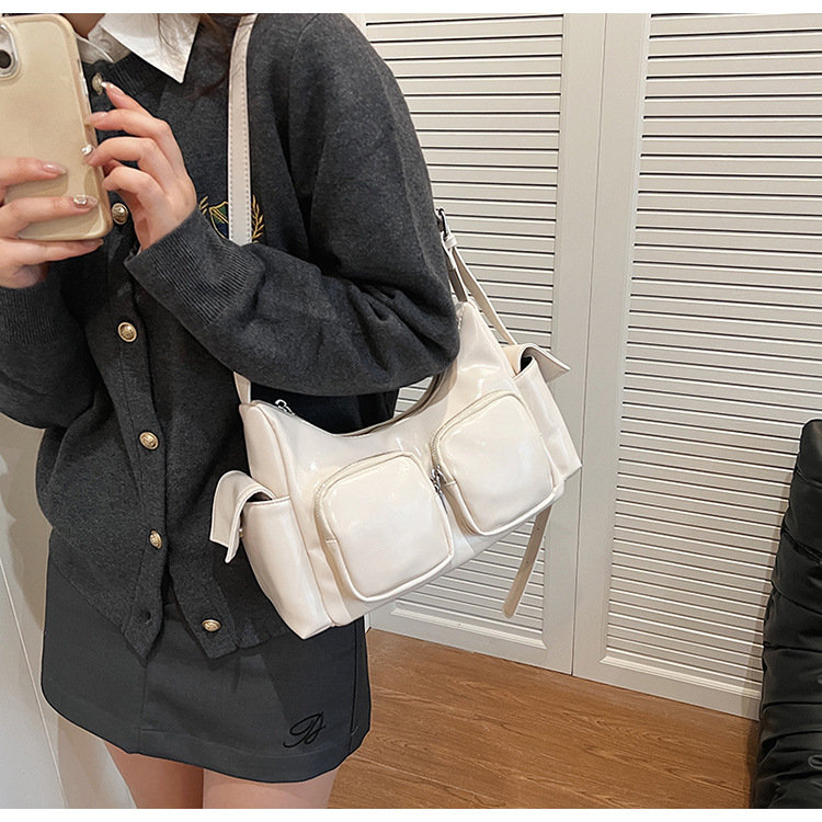 JM-1361 小众设计韩版洋气时尚新款质感休闲多口袋单肩腋下托特包包女