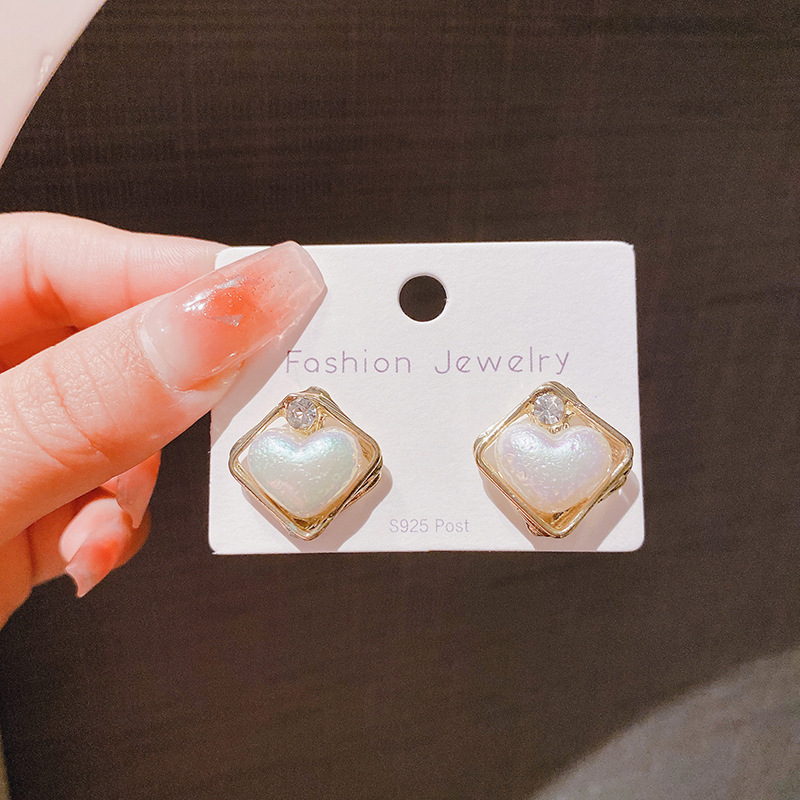 JME-949 时尚爱心珍珠耳环 新款新品方菱形韩版网红耳钉高级感百搭耳饰