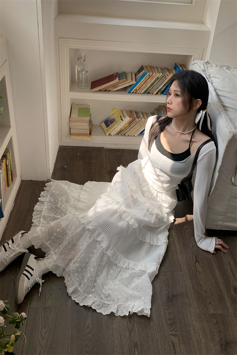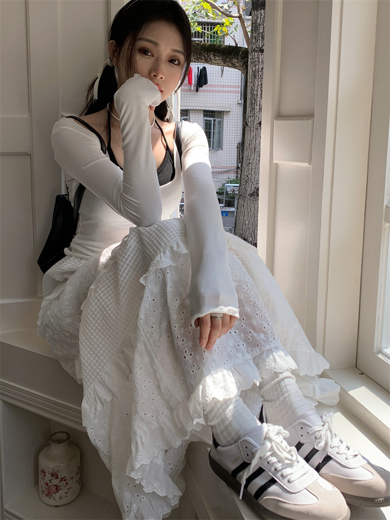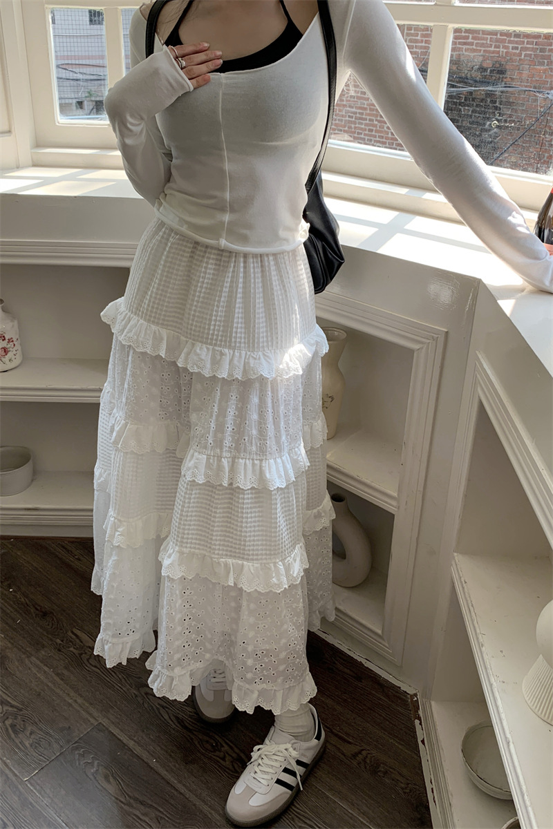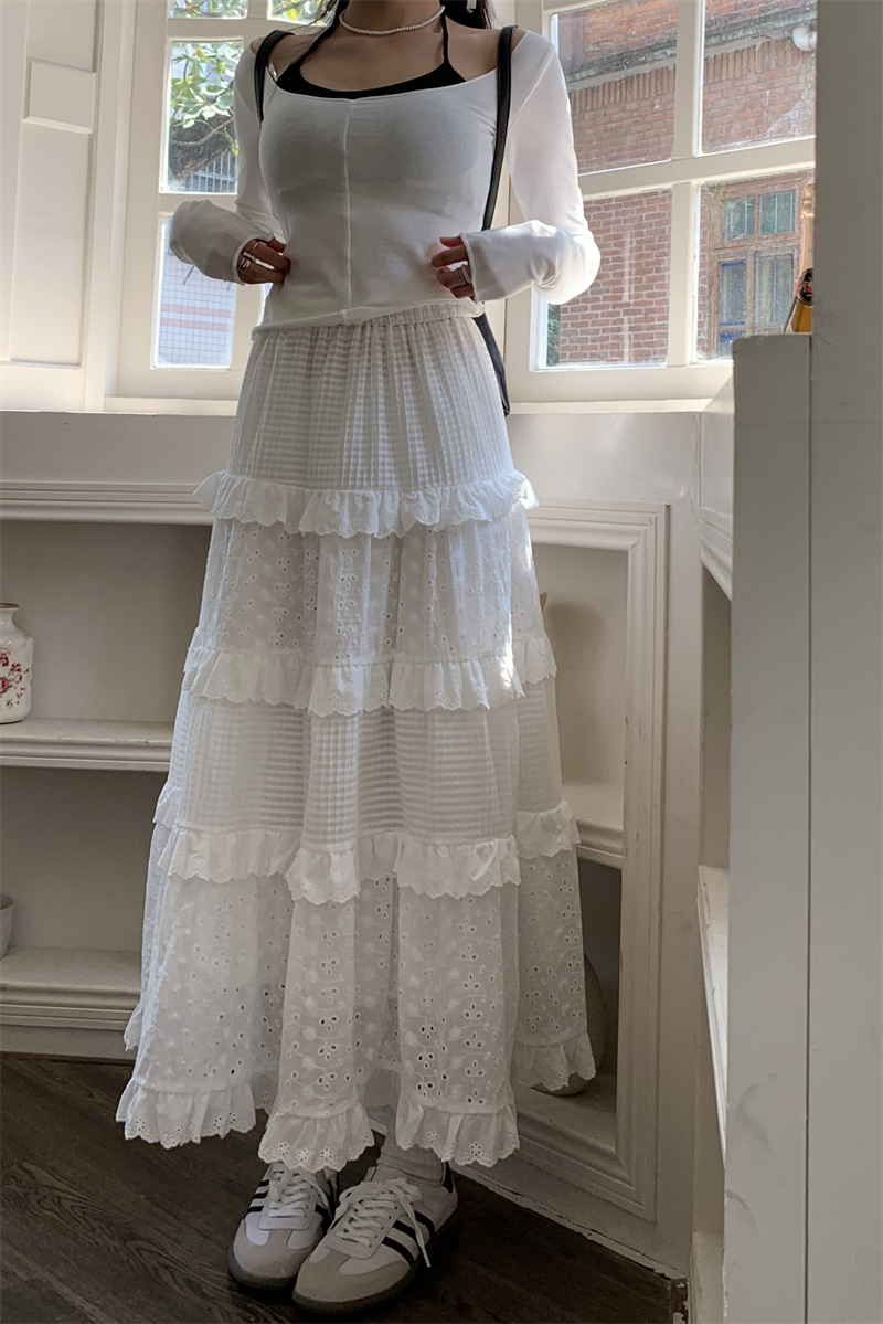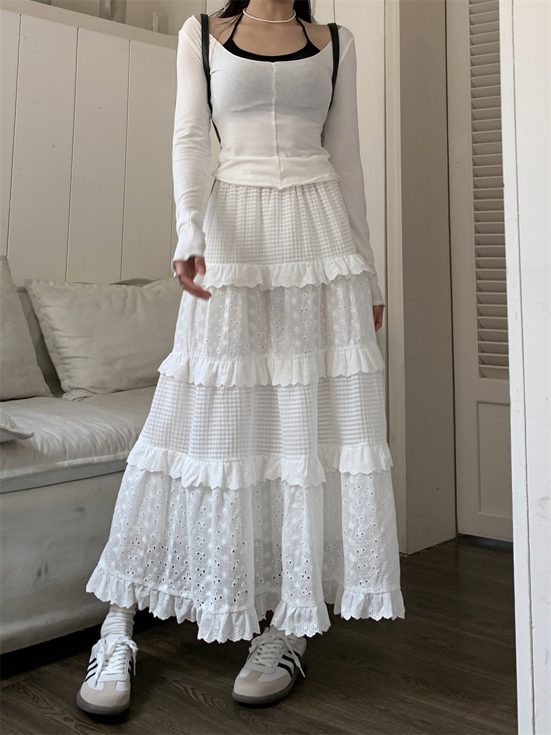JMA-971 实拍 温柔风镂空钩花半身裙女 春季高腰A字蛋糕裙长裙白色裙子