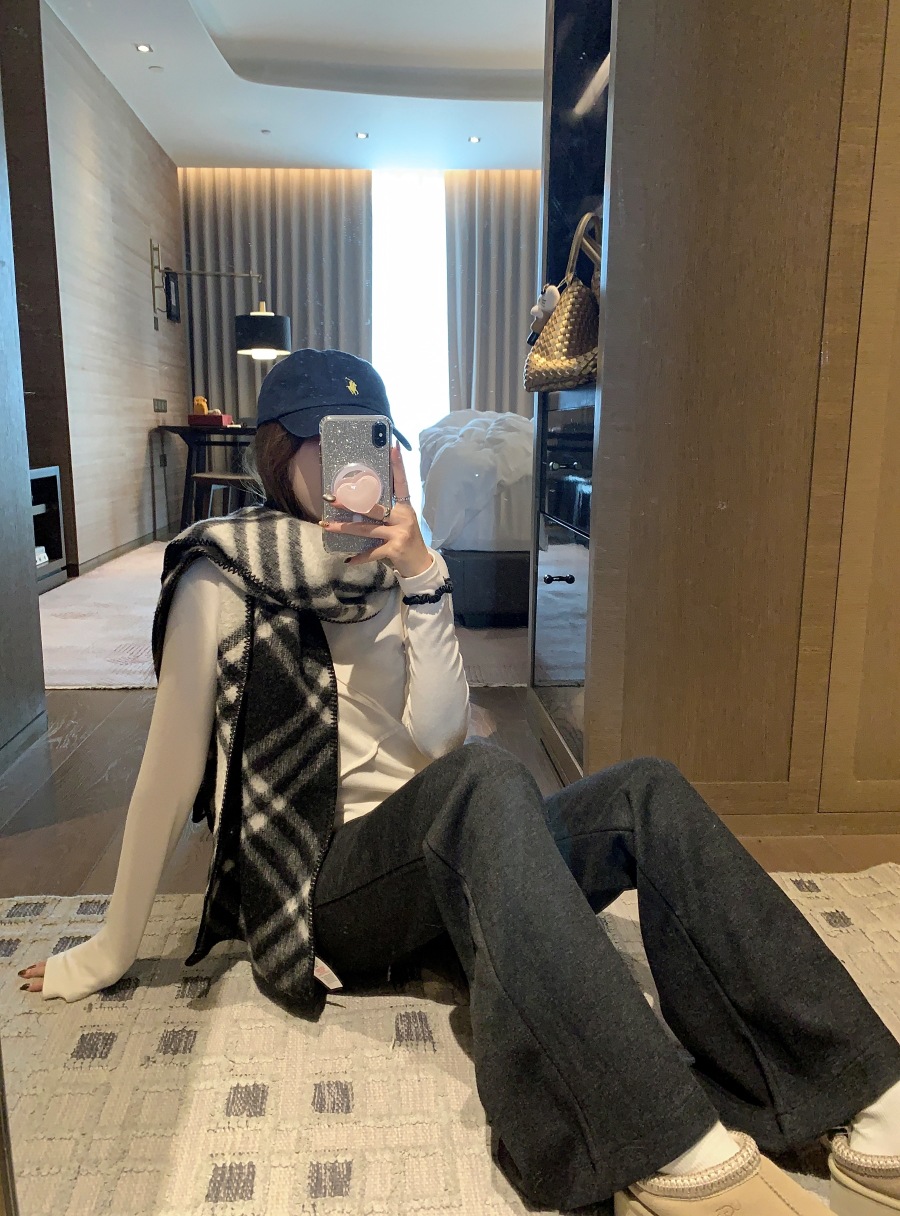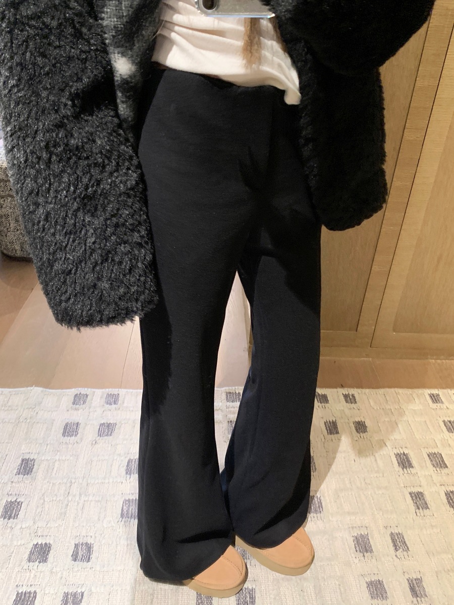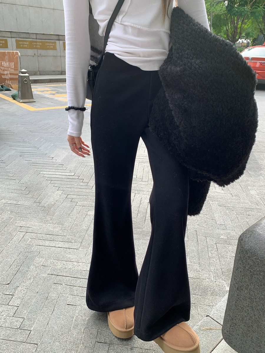 JMA-973 实拍 秋冬新款韩系黑色显瘦喇叭休闲裤女修身软糯加厚长裤子