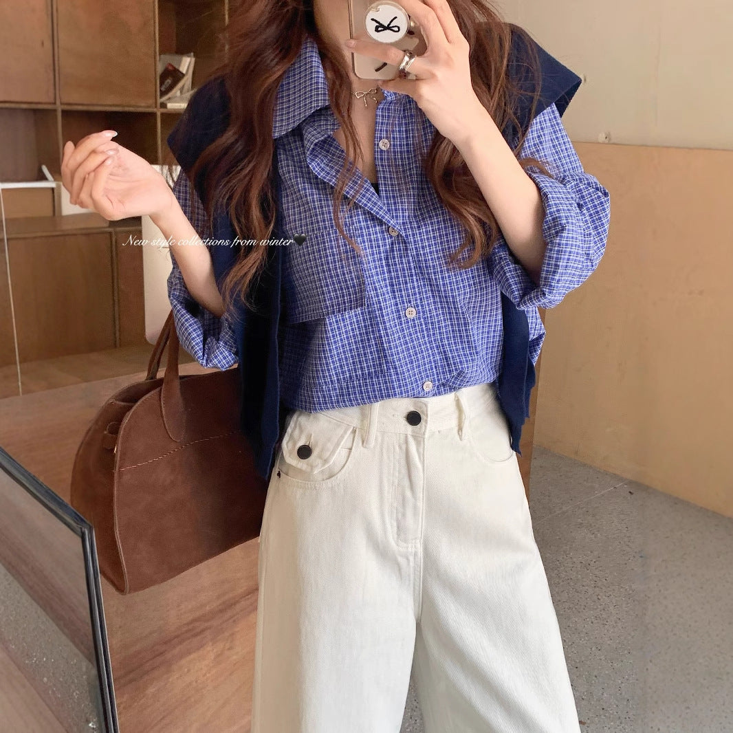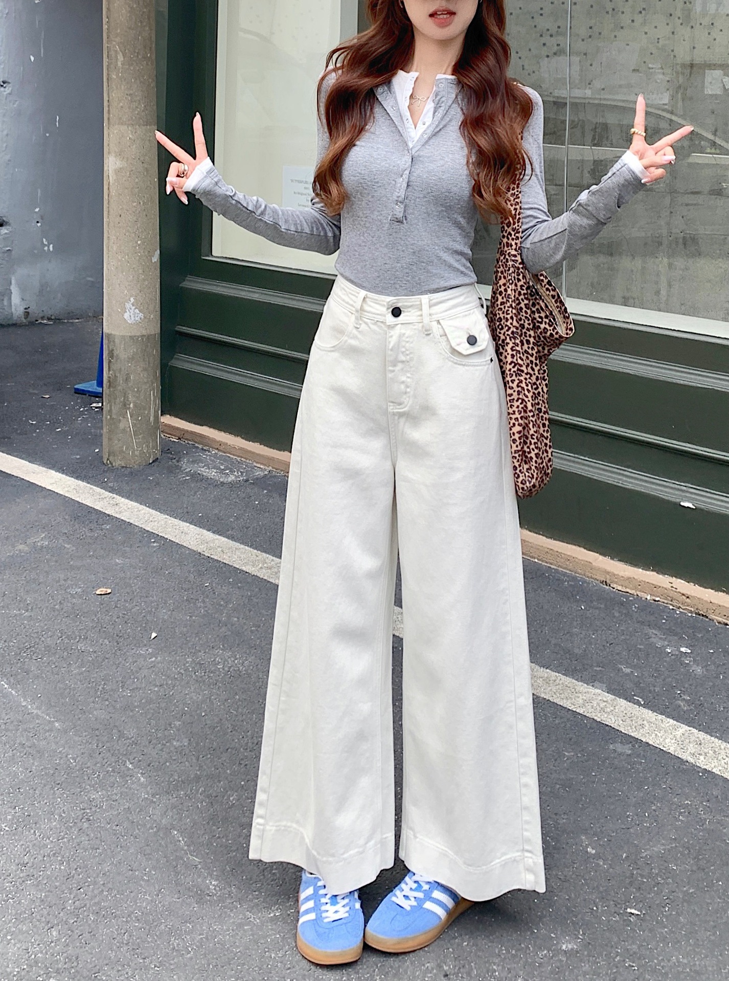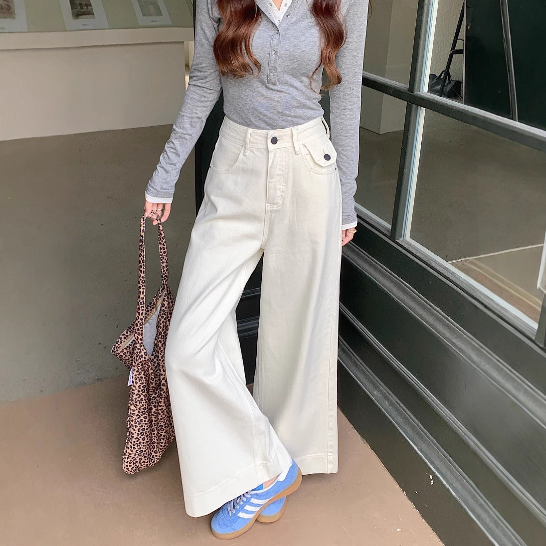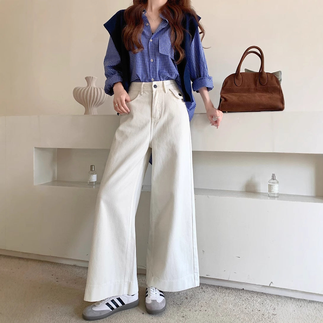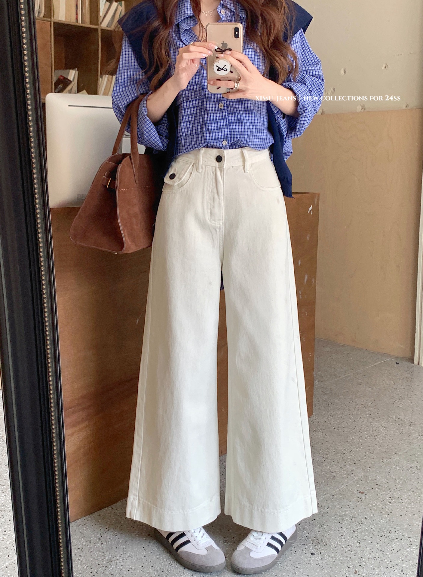 • 將圖片載入圖庫檢視器 JMA-985 实拍 春季新款韩版小个子大阔腿直筒牛仔裤女九分裤子