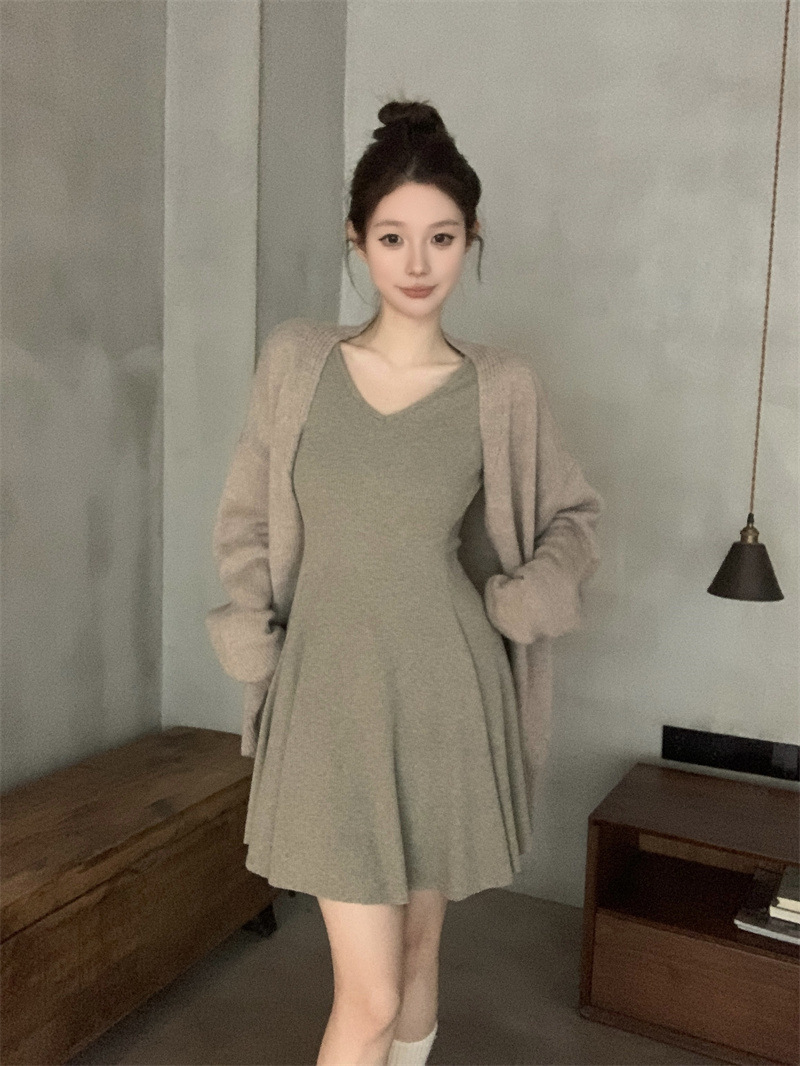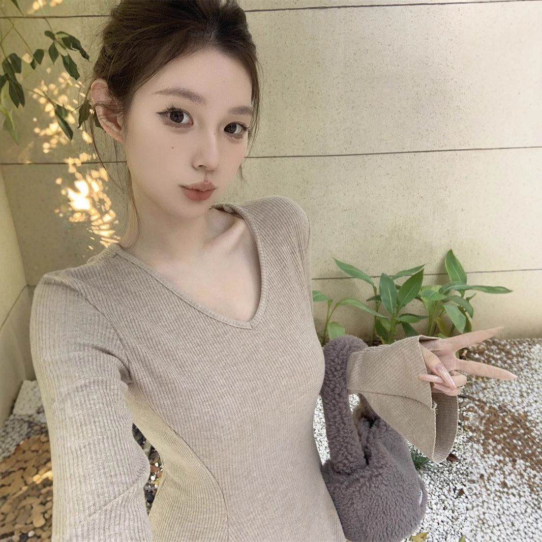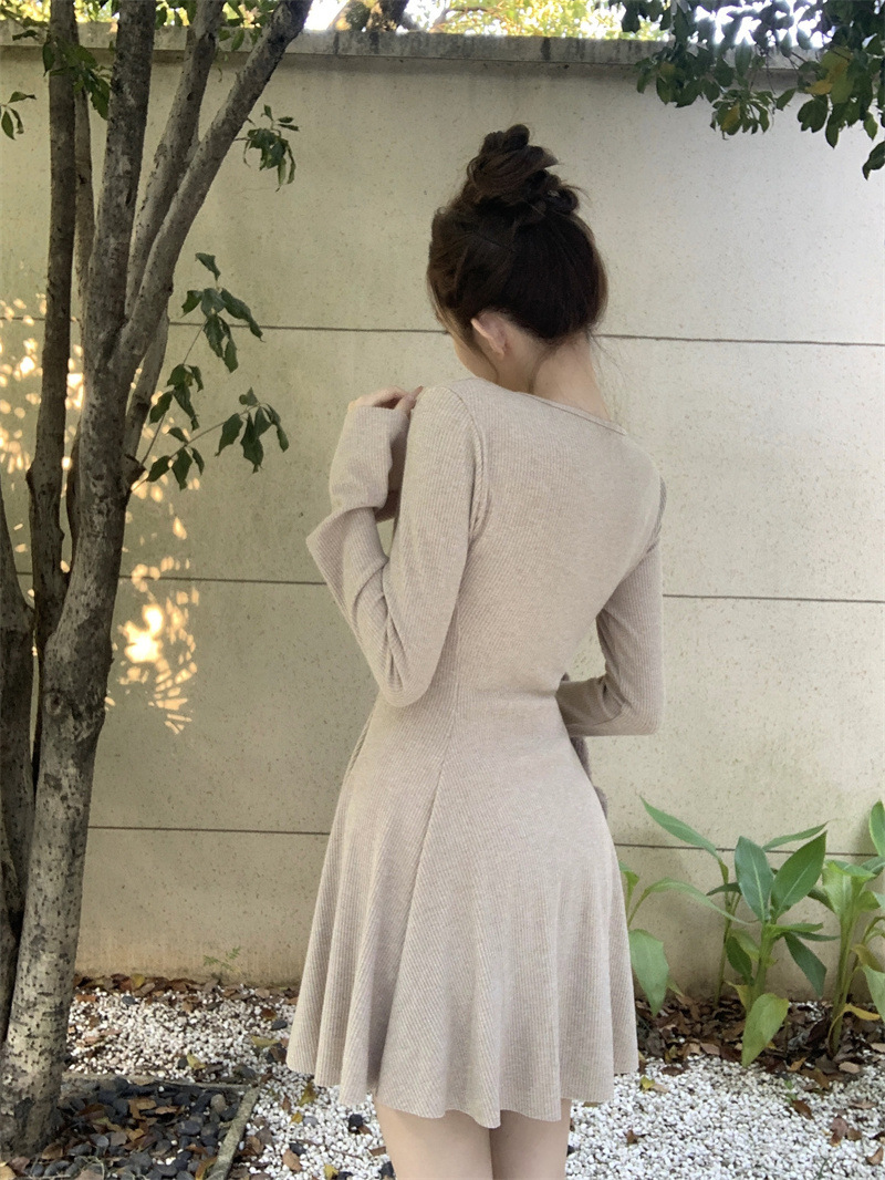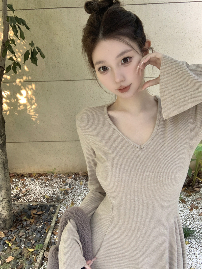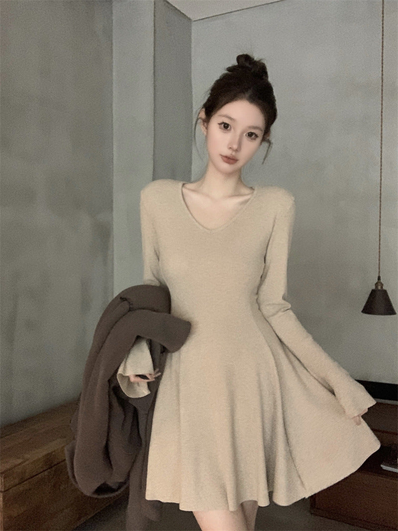 JMA-986 实拍 秋冬纯欲辣妹气质收腰v领性感收腰打底长袖连衣裙短裙子