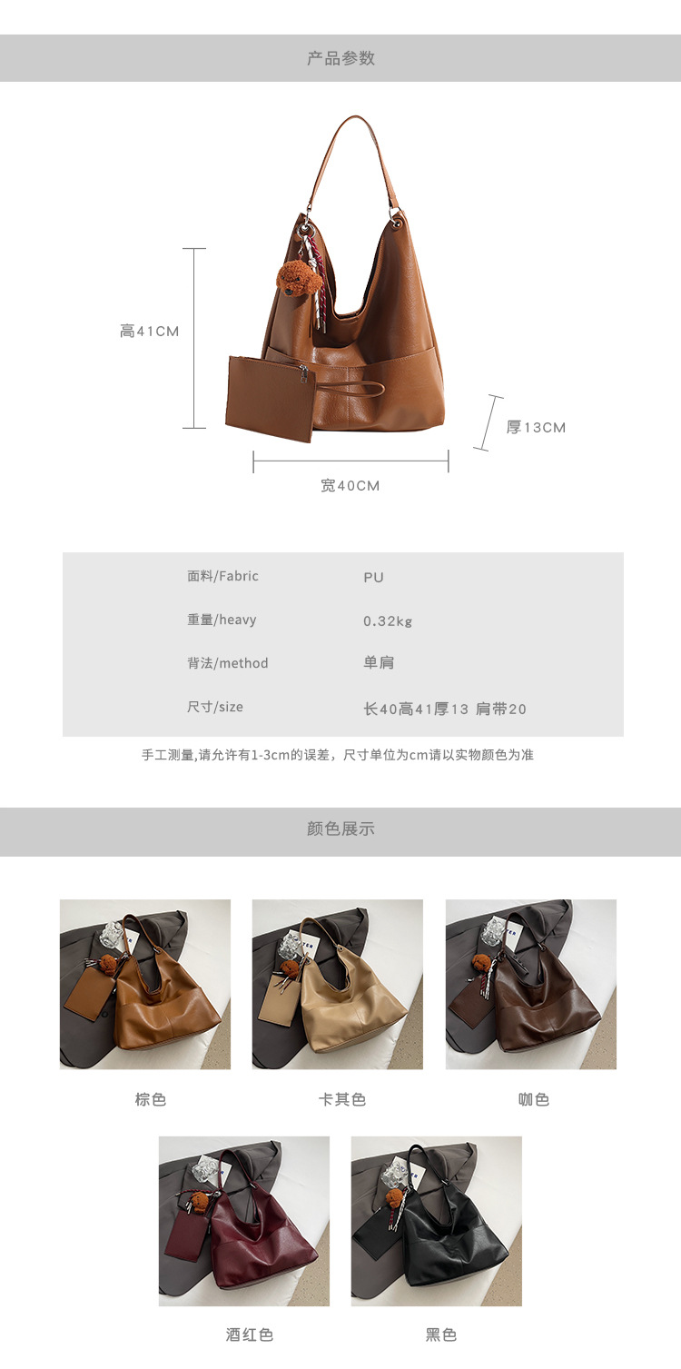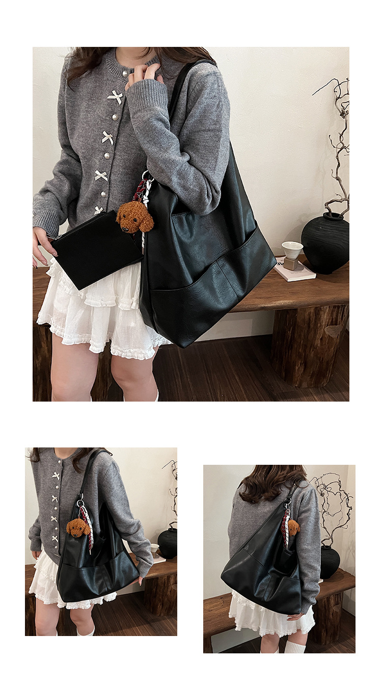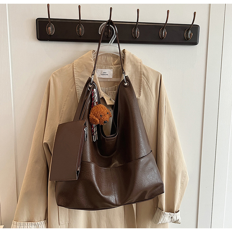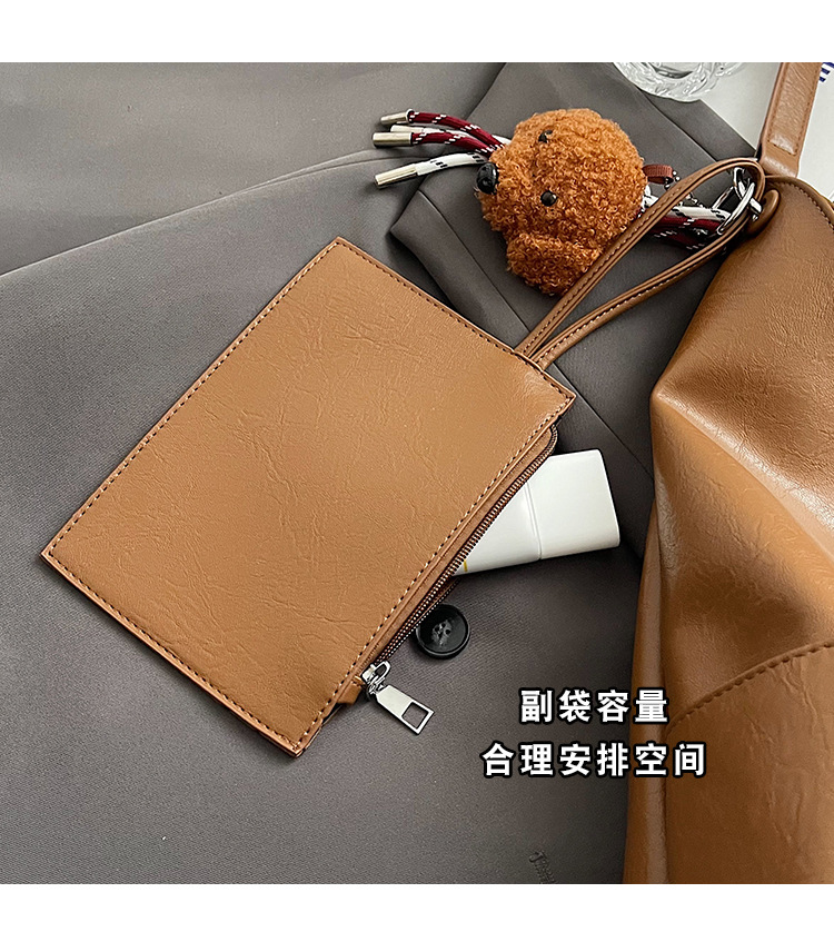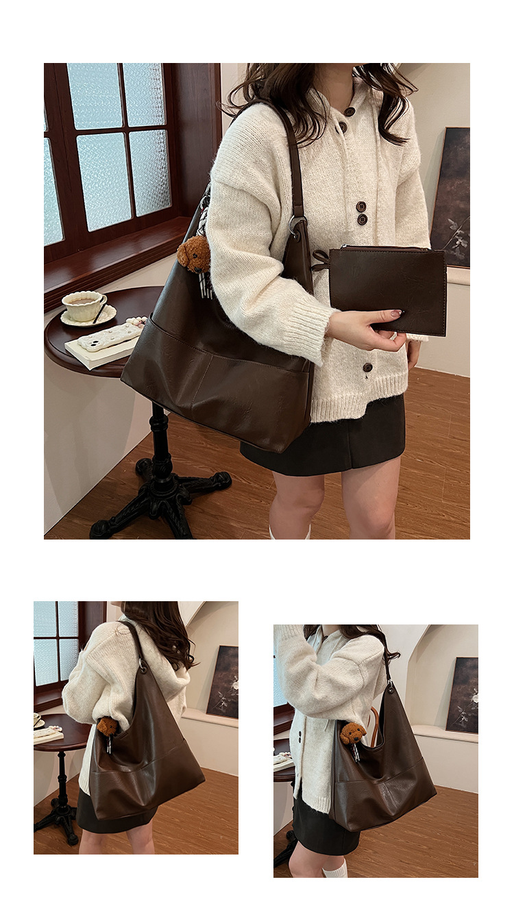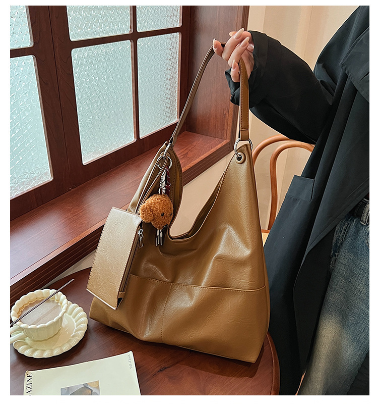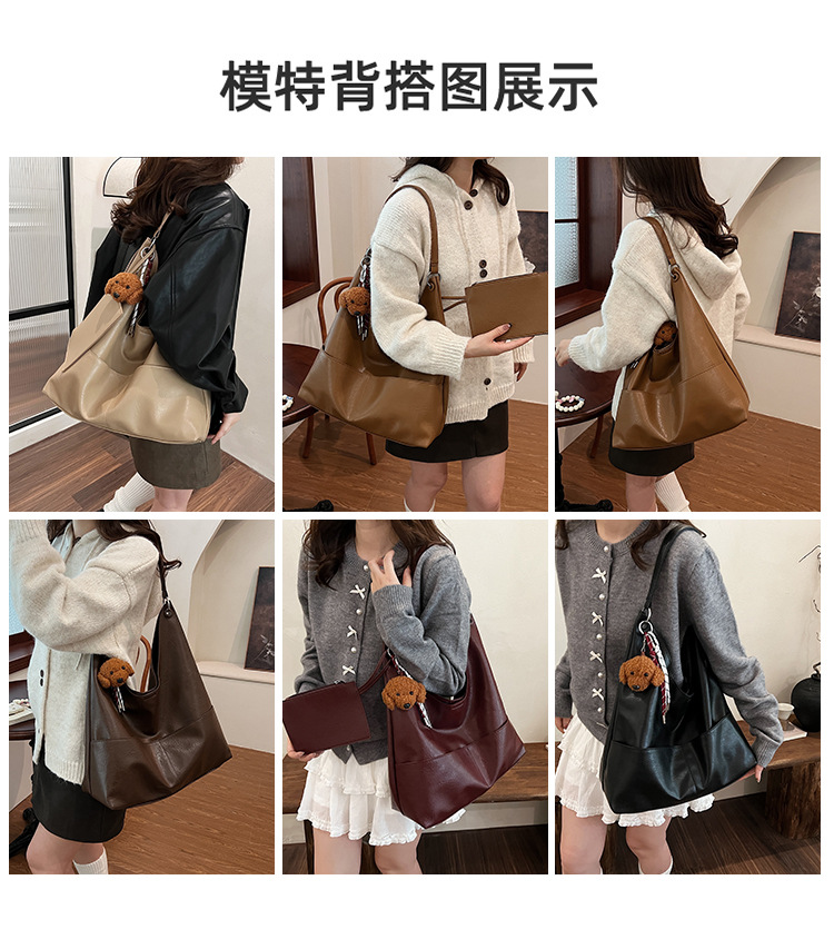 JM-1393 秋冬新款复古软PU时尚托特包女大容量通勤子母包小众感单肩包