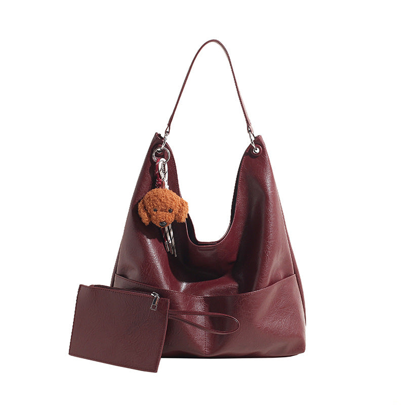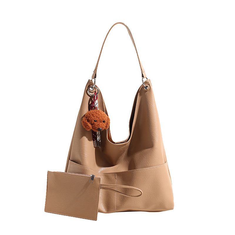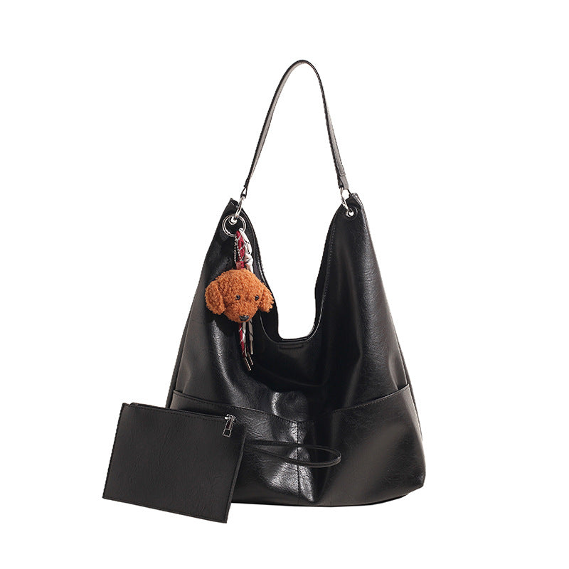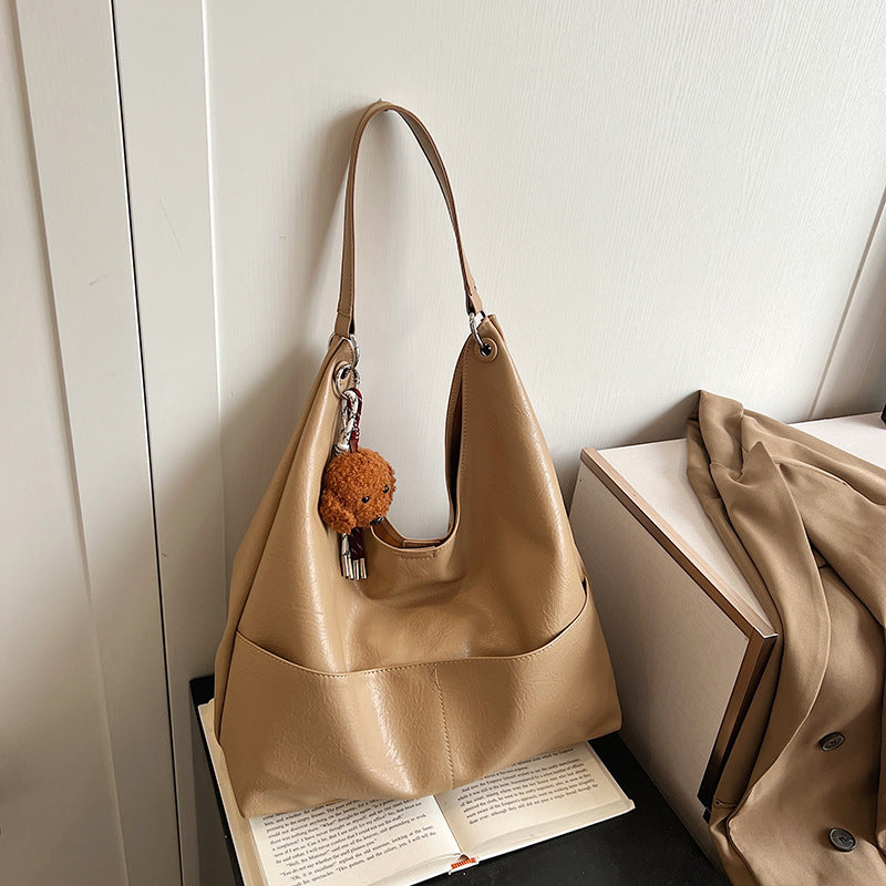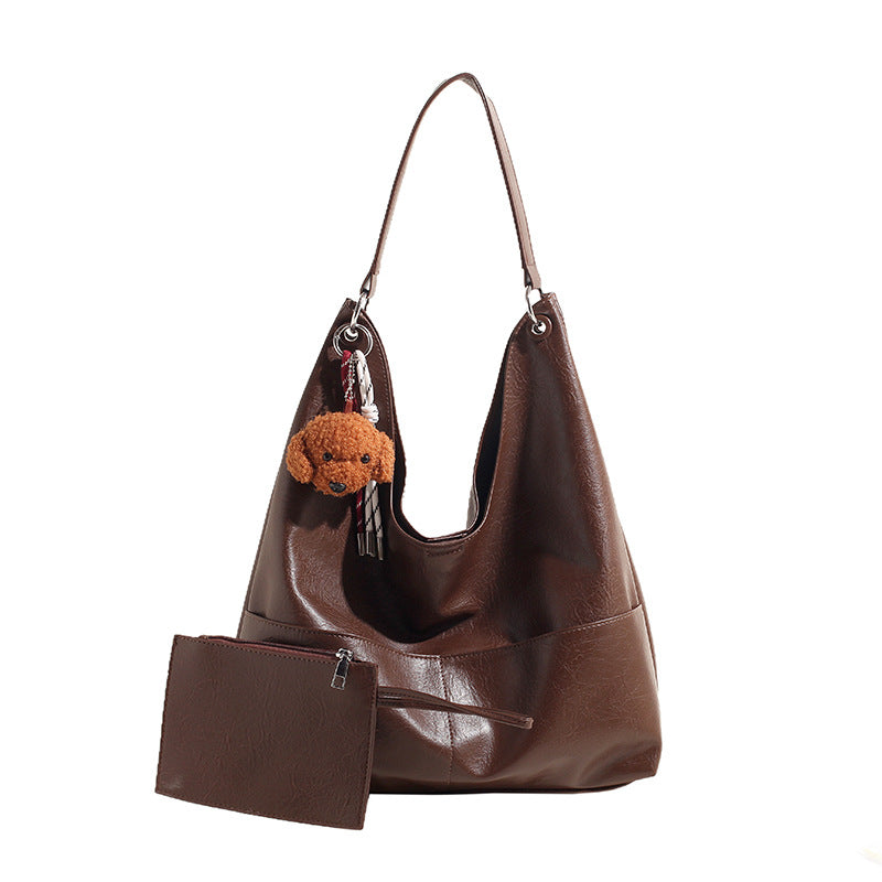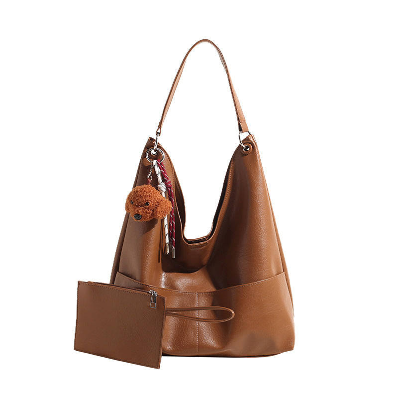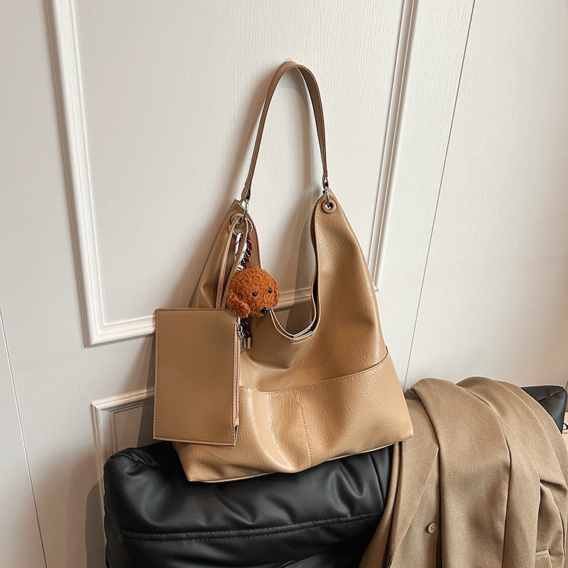 JM-1393 秋冬新款复古软PU时尚托特包女大容量通勤子母包小众感单肩包