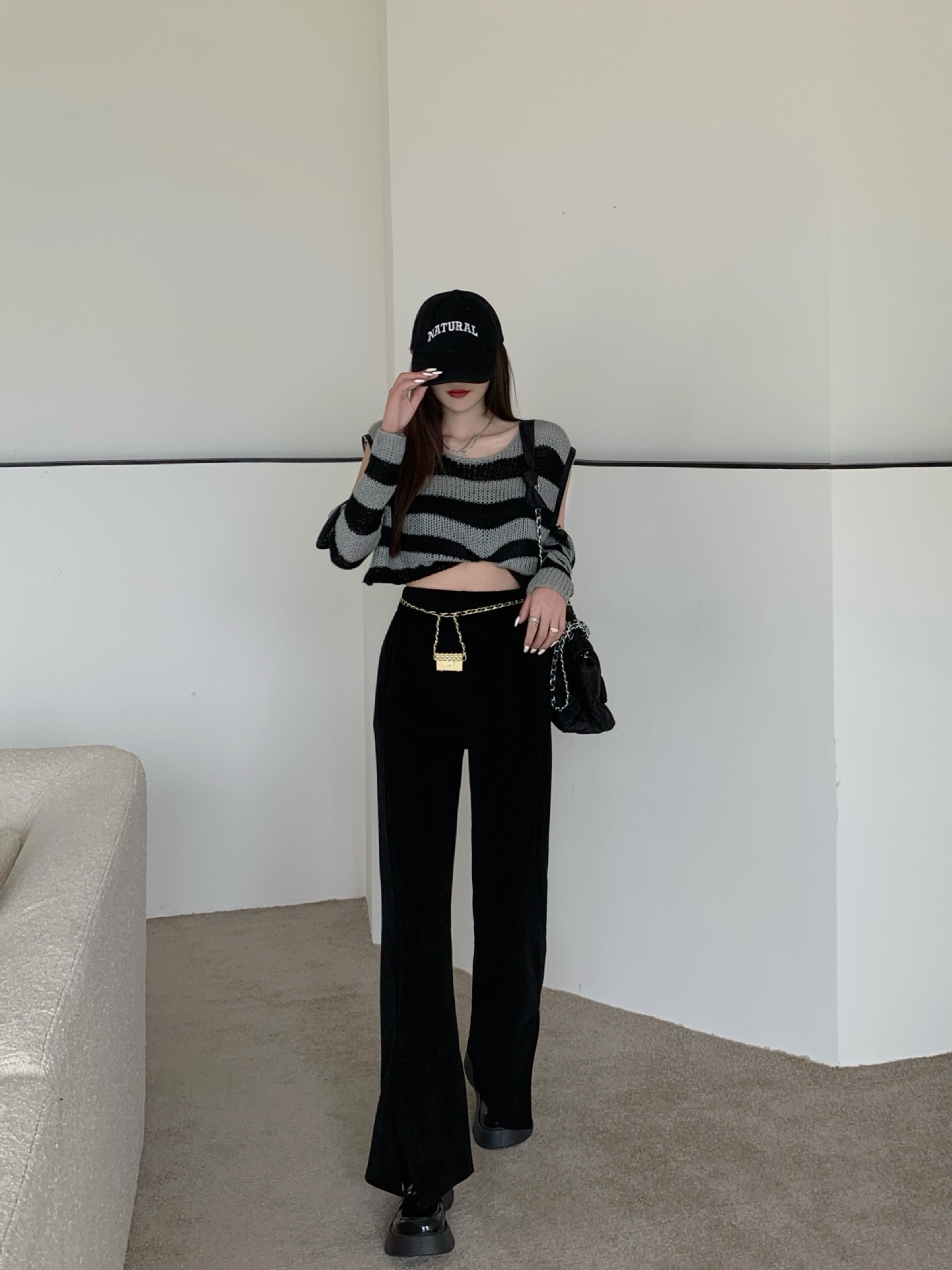 JMA-995 实拍 秋冬季加厚灯芯绒开衩阔腿裤垂感高腰显瘦拖地裤长裤子