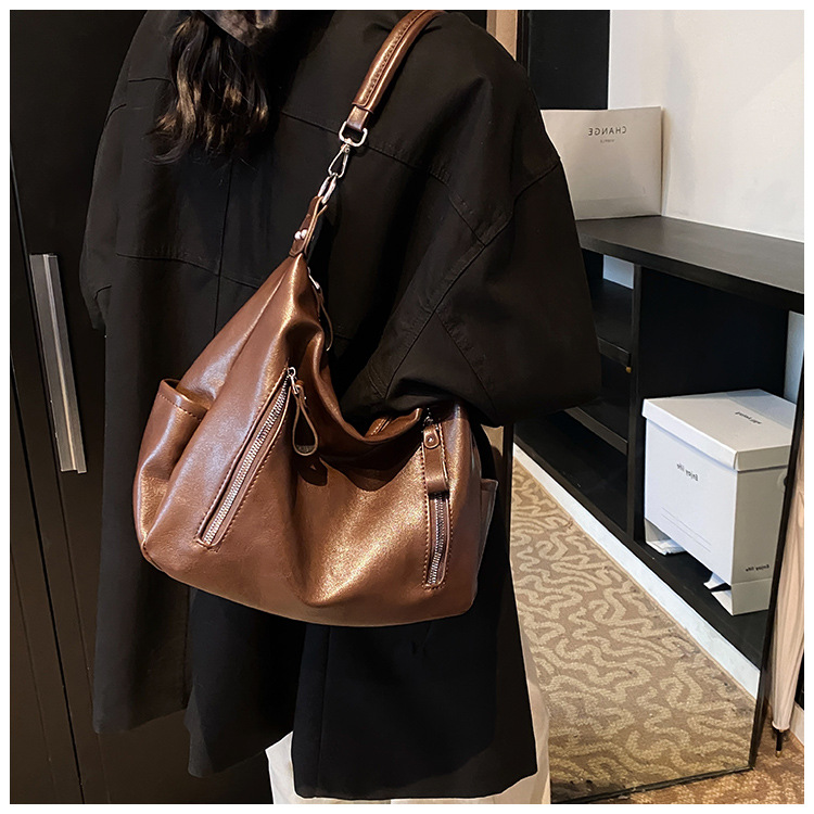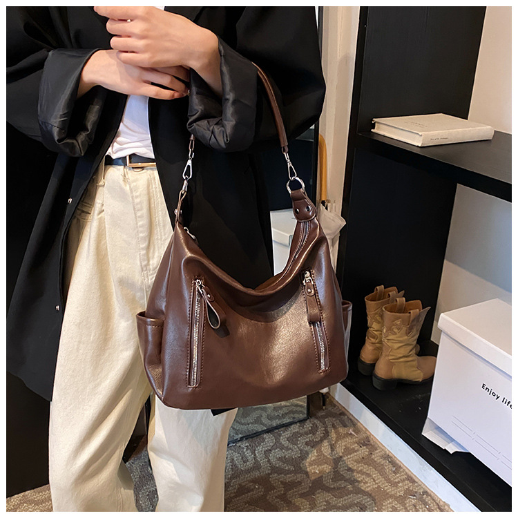 JM-1417 韩版简约链条包大容量流苏腋下托特包女包 新款秋季单肩斜挎包