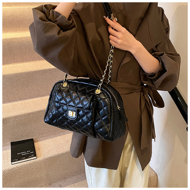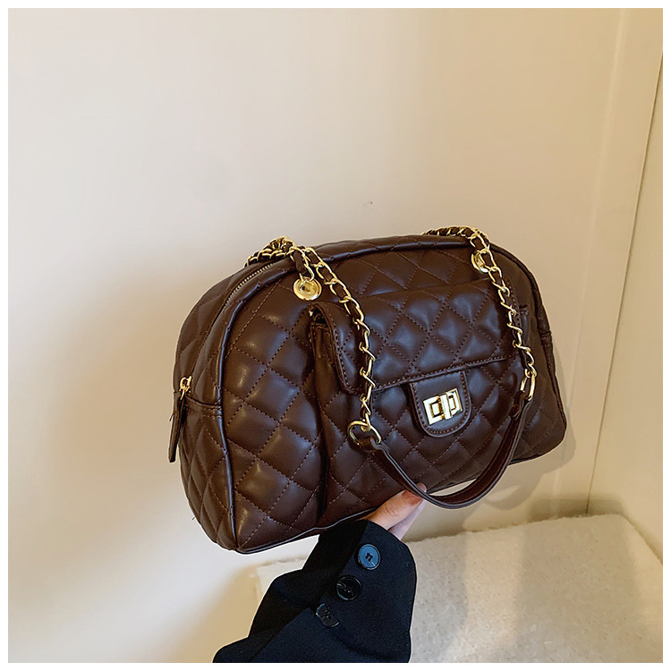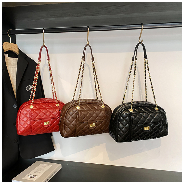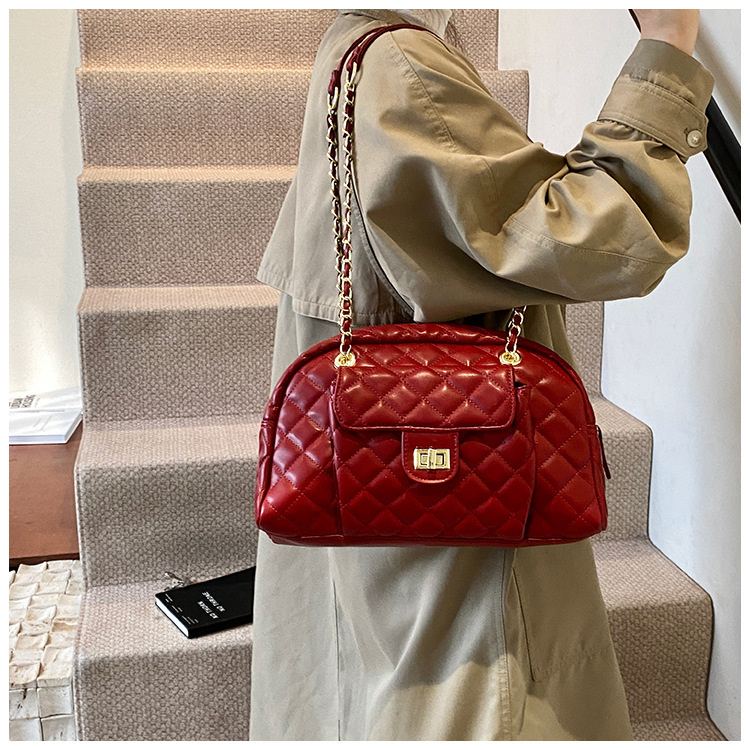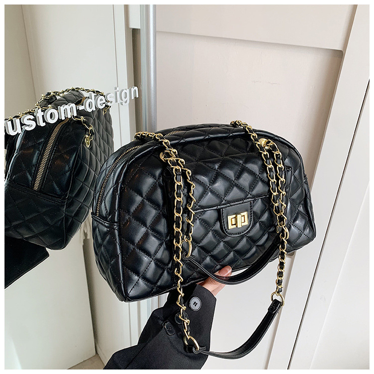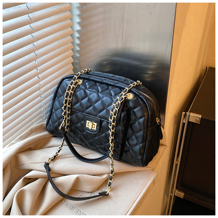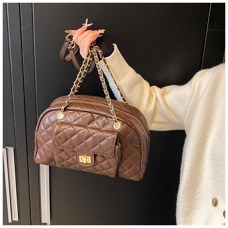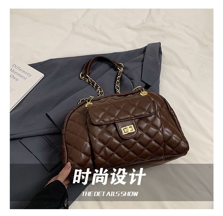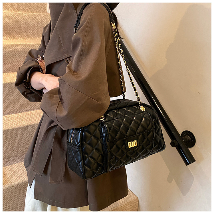 JM-1419 秋冬新款波士顿包 时尚链条菱格包包潮流单肩腋下包