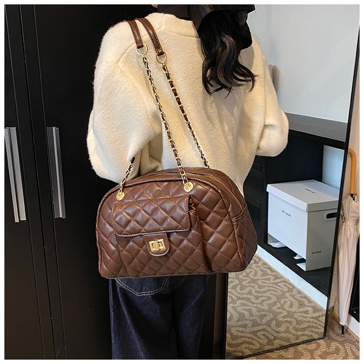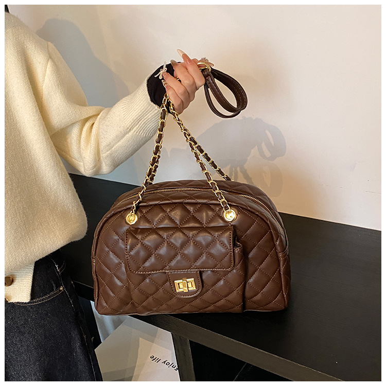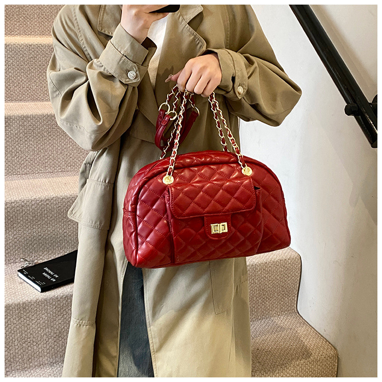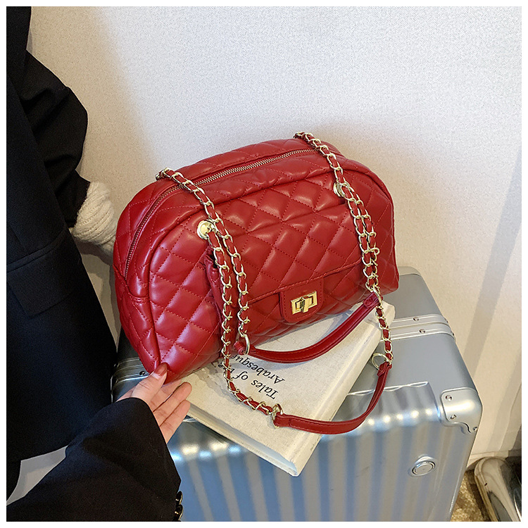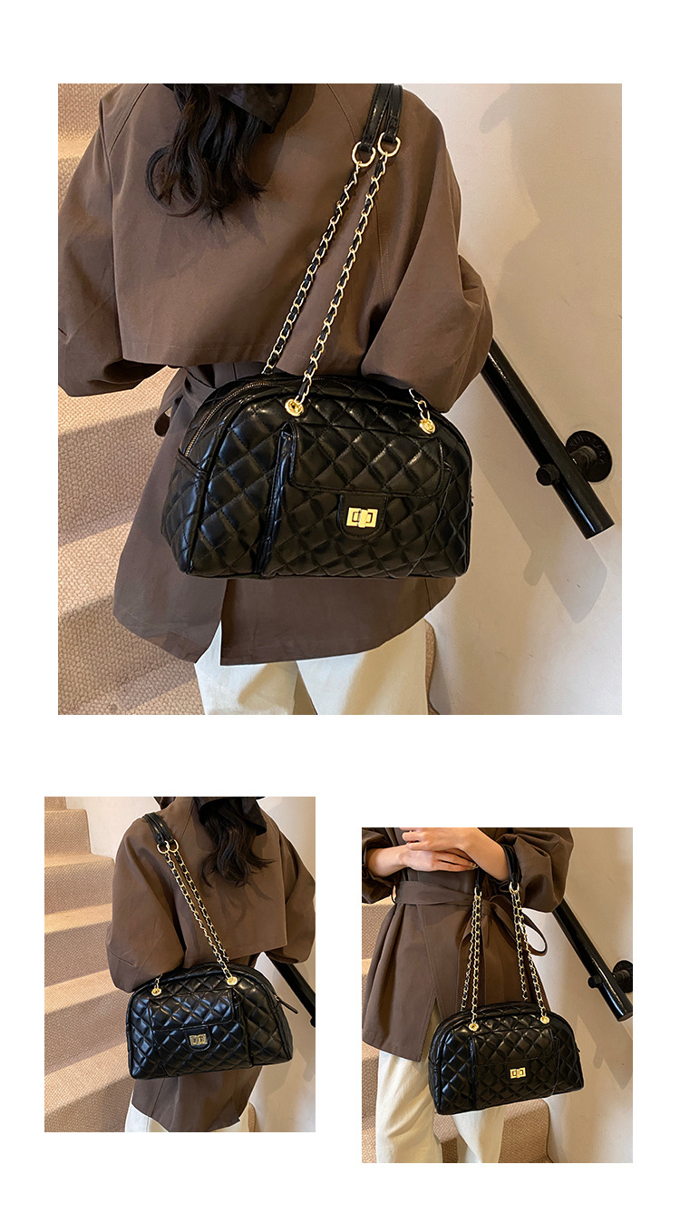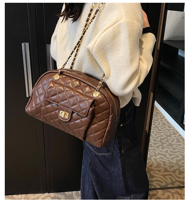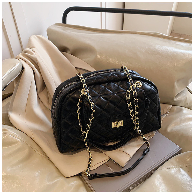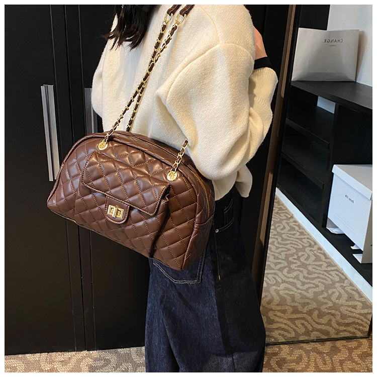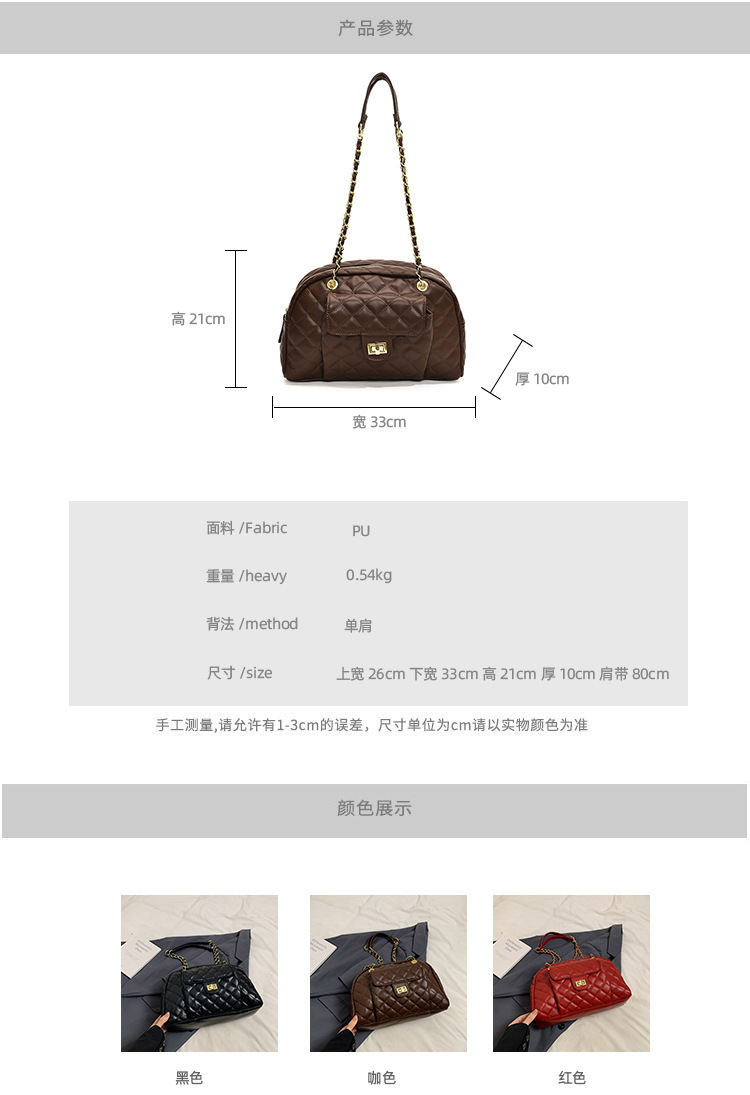 JM-1419 秋冬新款波士顿包 时尚链条菱格包包潮流单肩腋下包