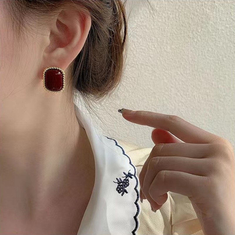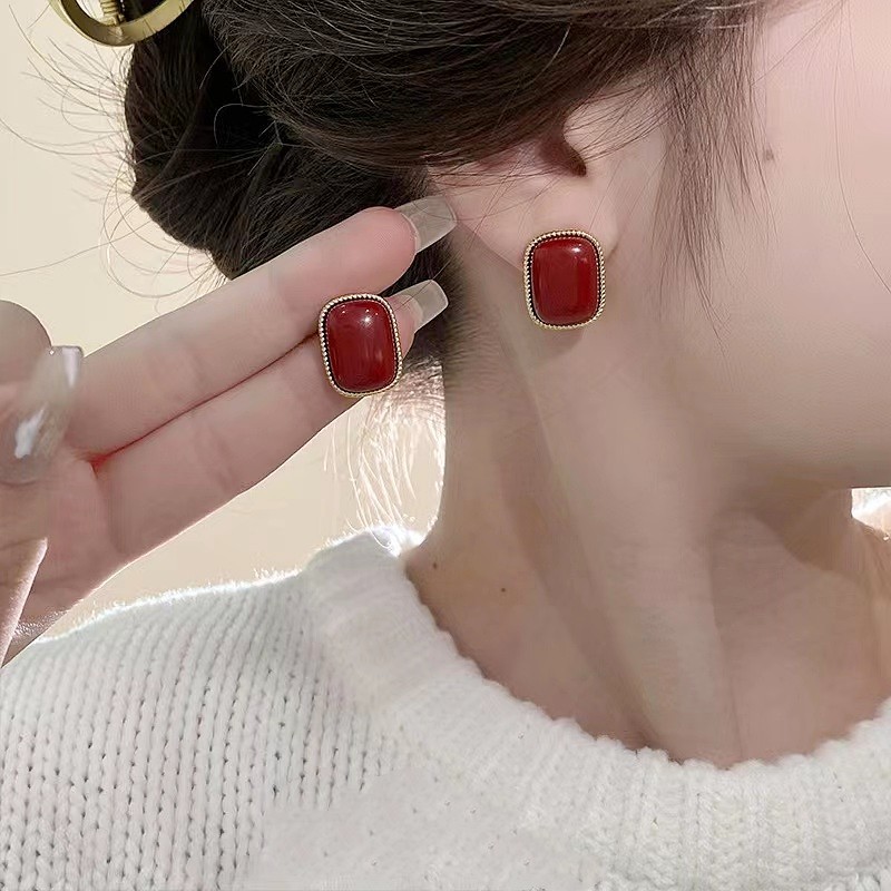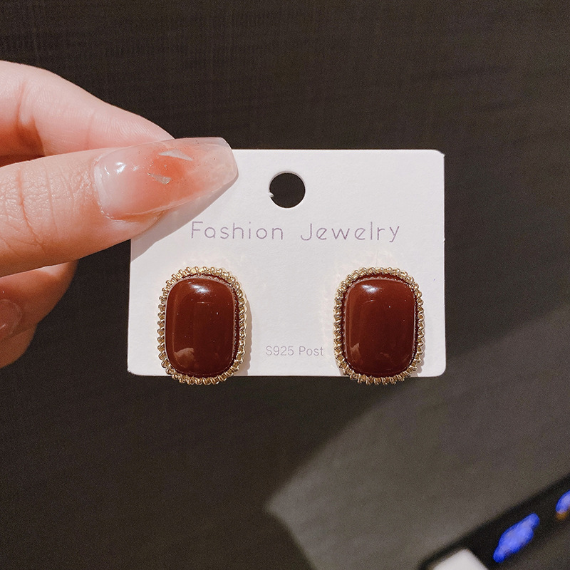 JME-1005 韩国东大门代购同款复古耳环矩形几何树脂金边仿宝石时尚百搭耳饰