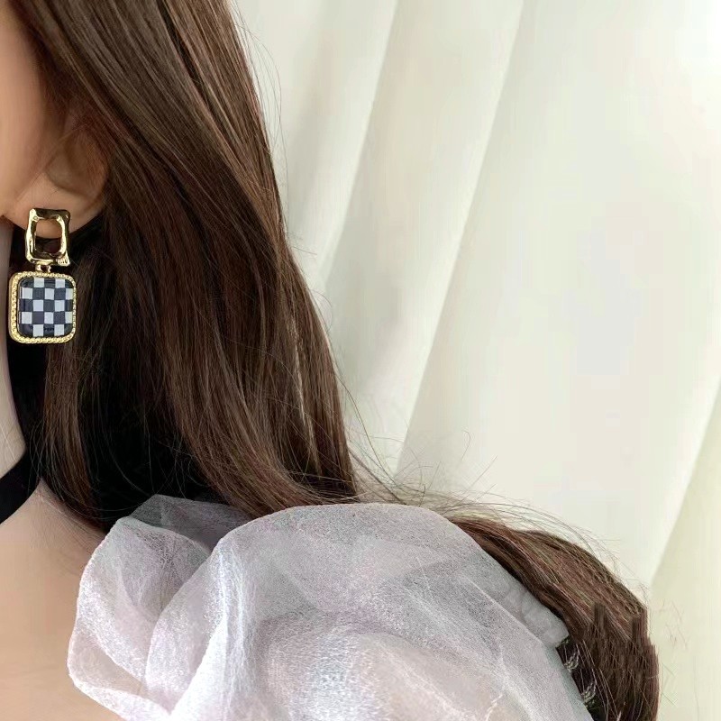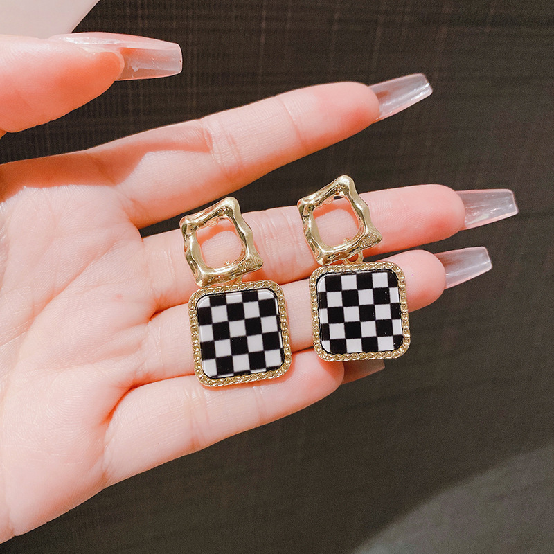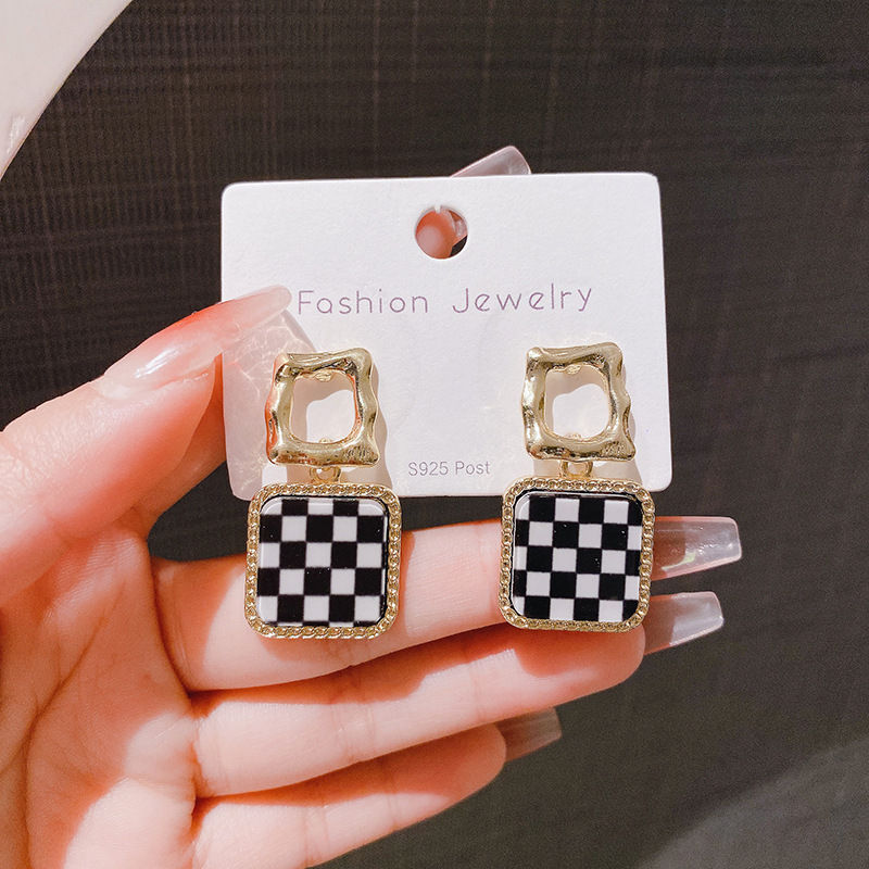 JME-1017 潮时尚感几何方块黑白格子大气优雅耳环气质百搭耳饰批发