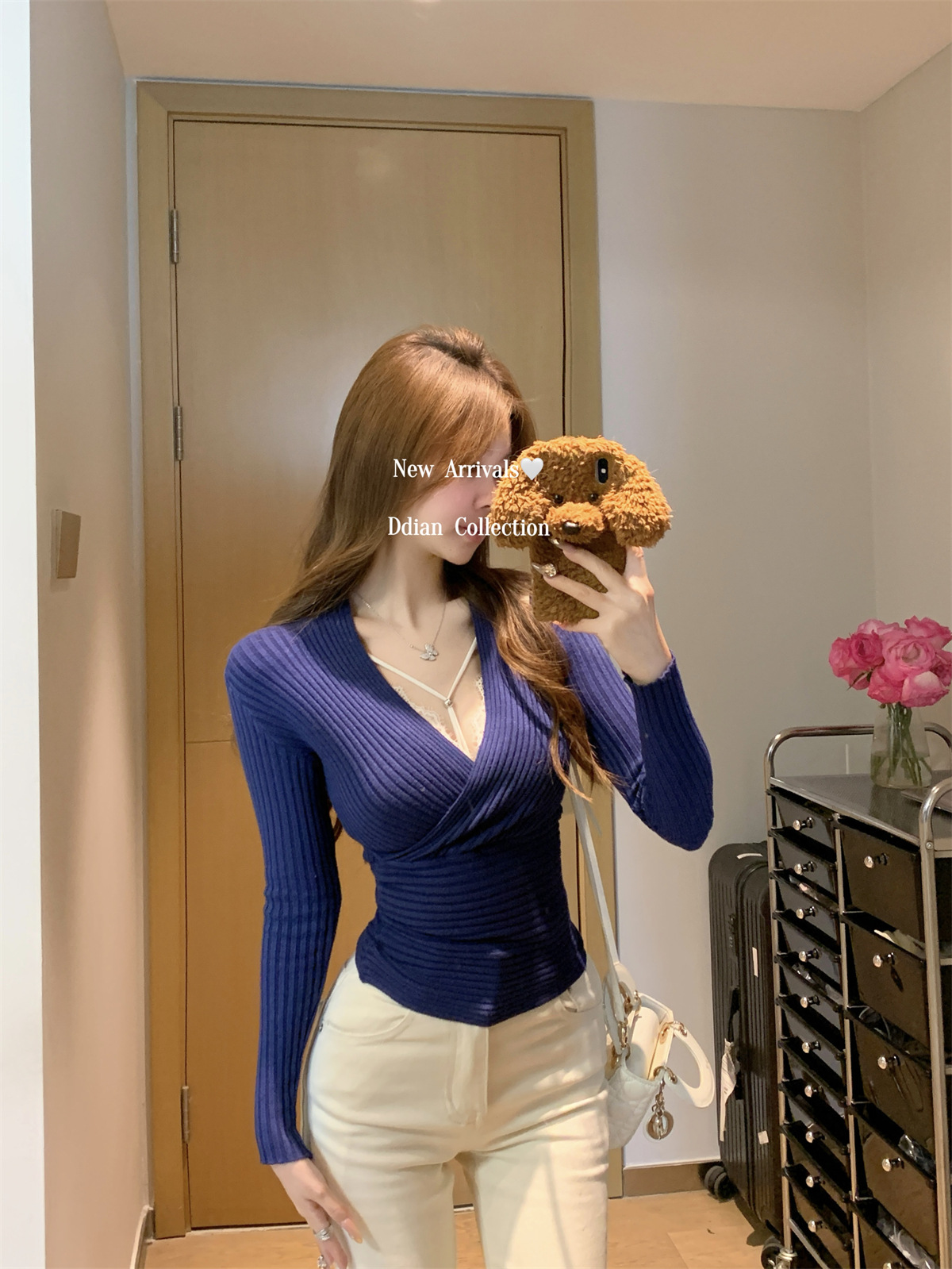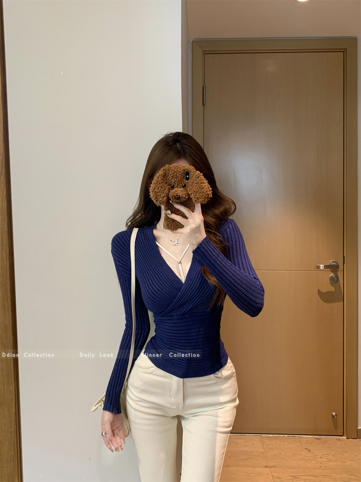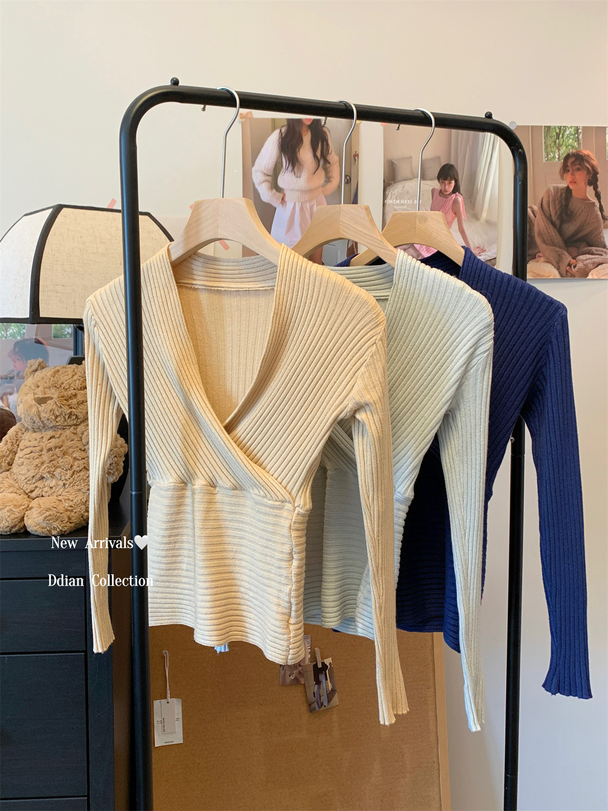JMA-1028实拍 2025早春韩版纯欲交叉气质v领修身安迪绒针织衫打底毛衣上衣JMA-1030