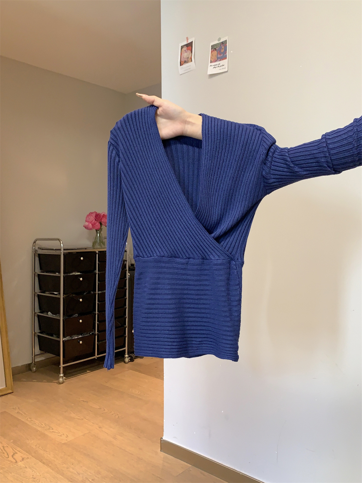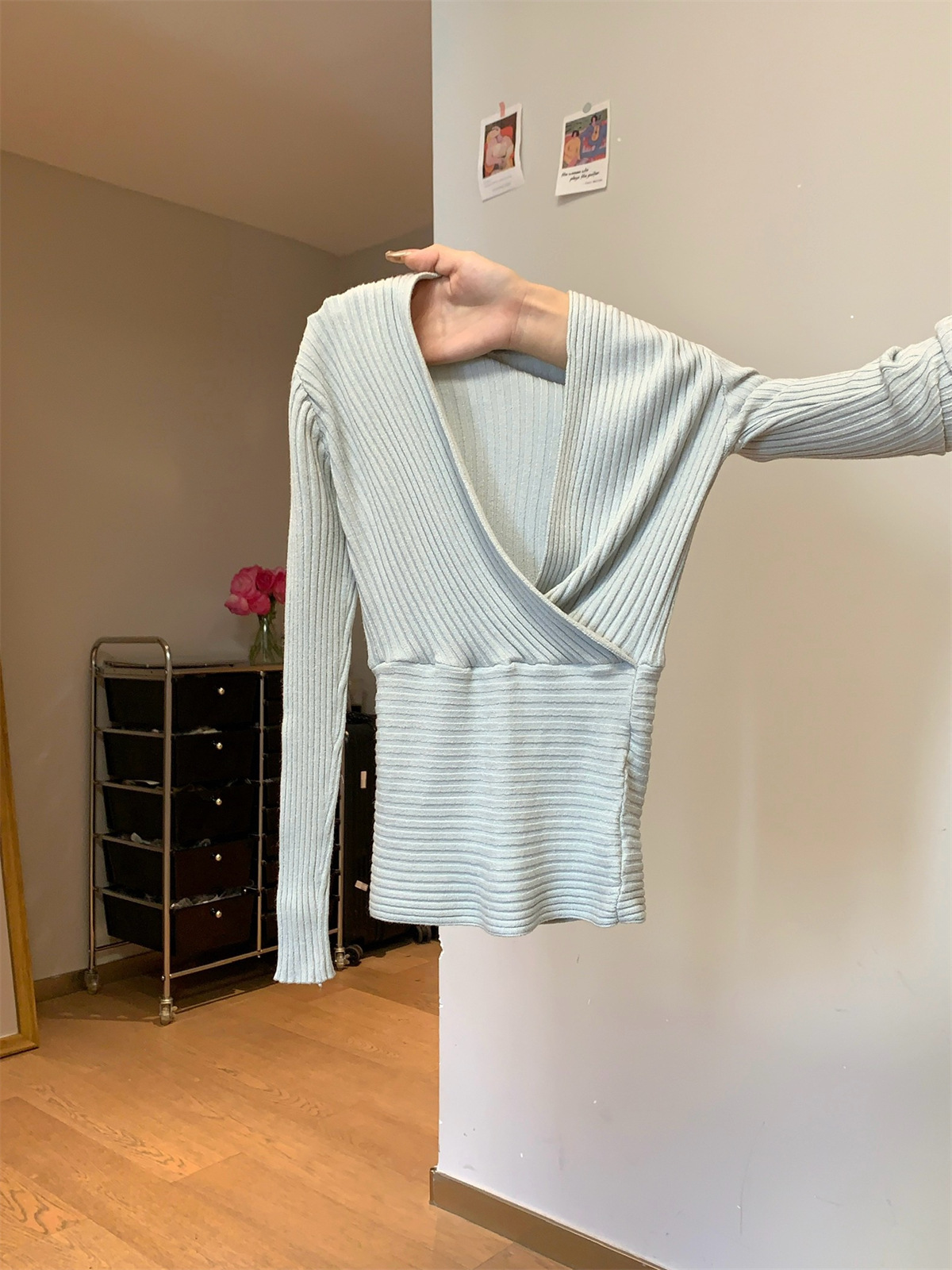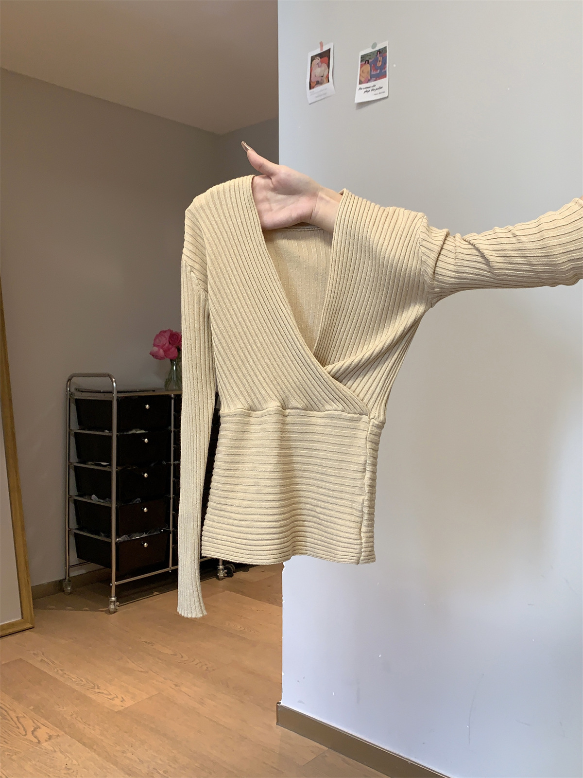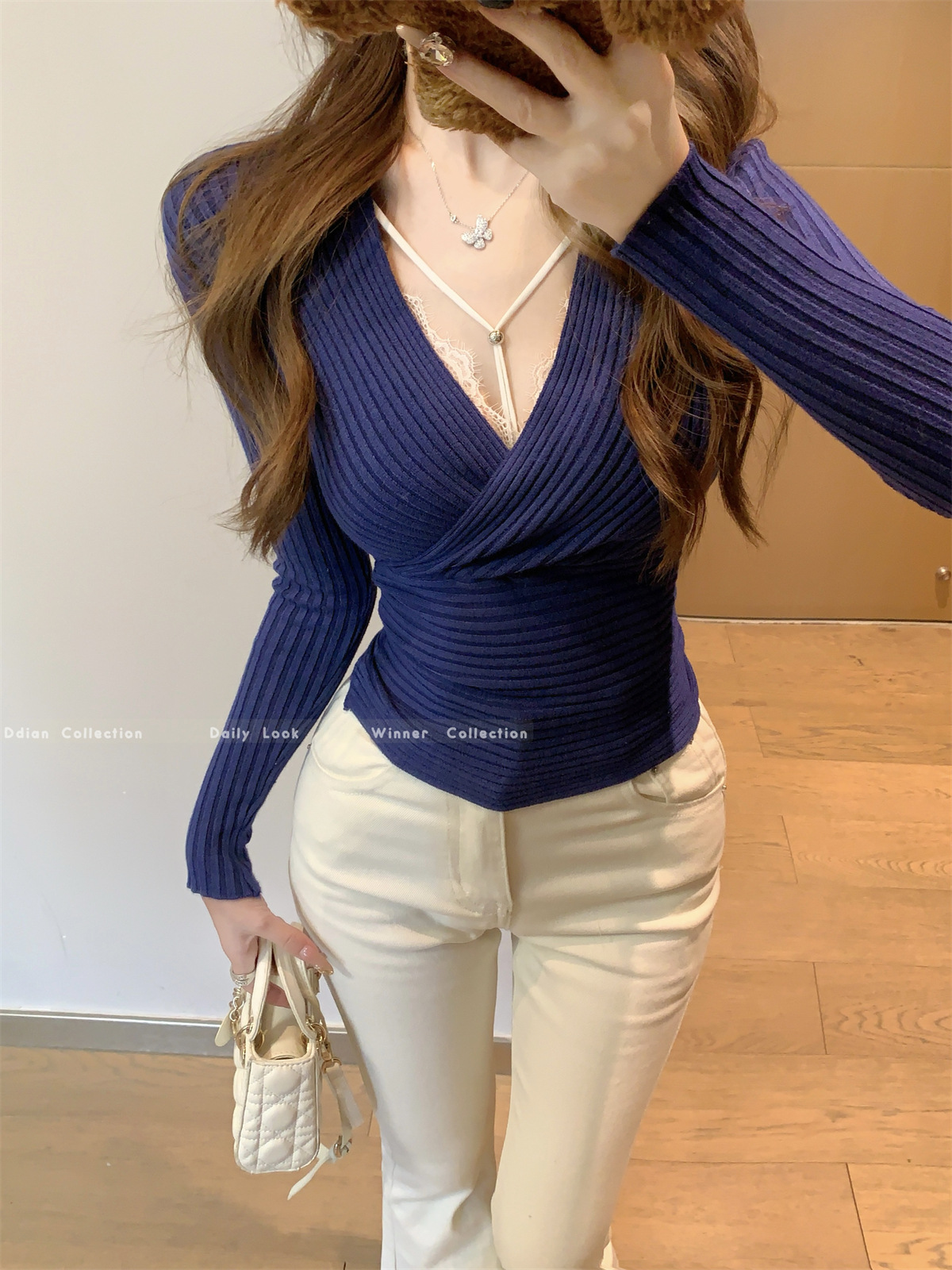 JMA-1028实拍 2025早春韩版纯欲交叉气质v领修身安迪绒针织衫打底毛衣上衣JMA-1030